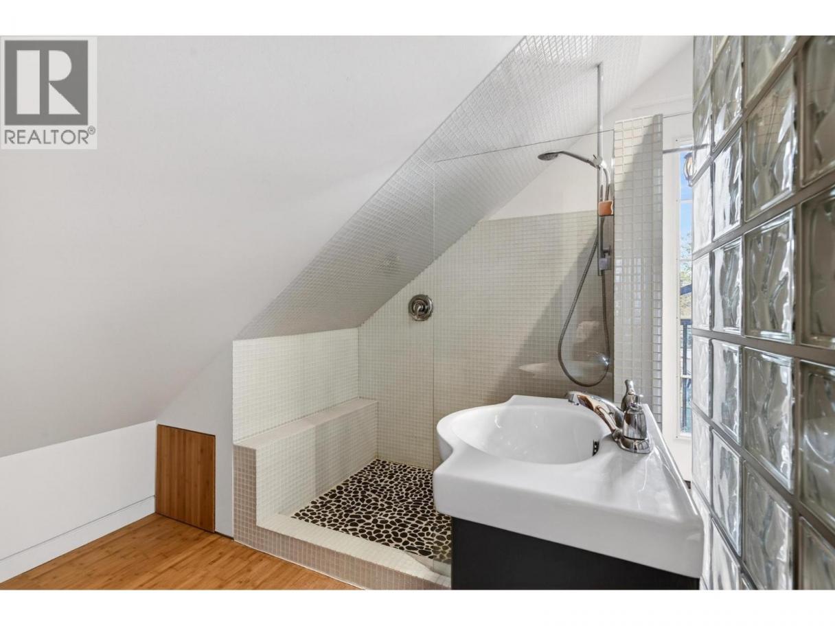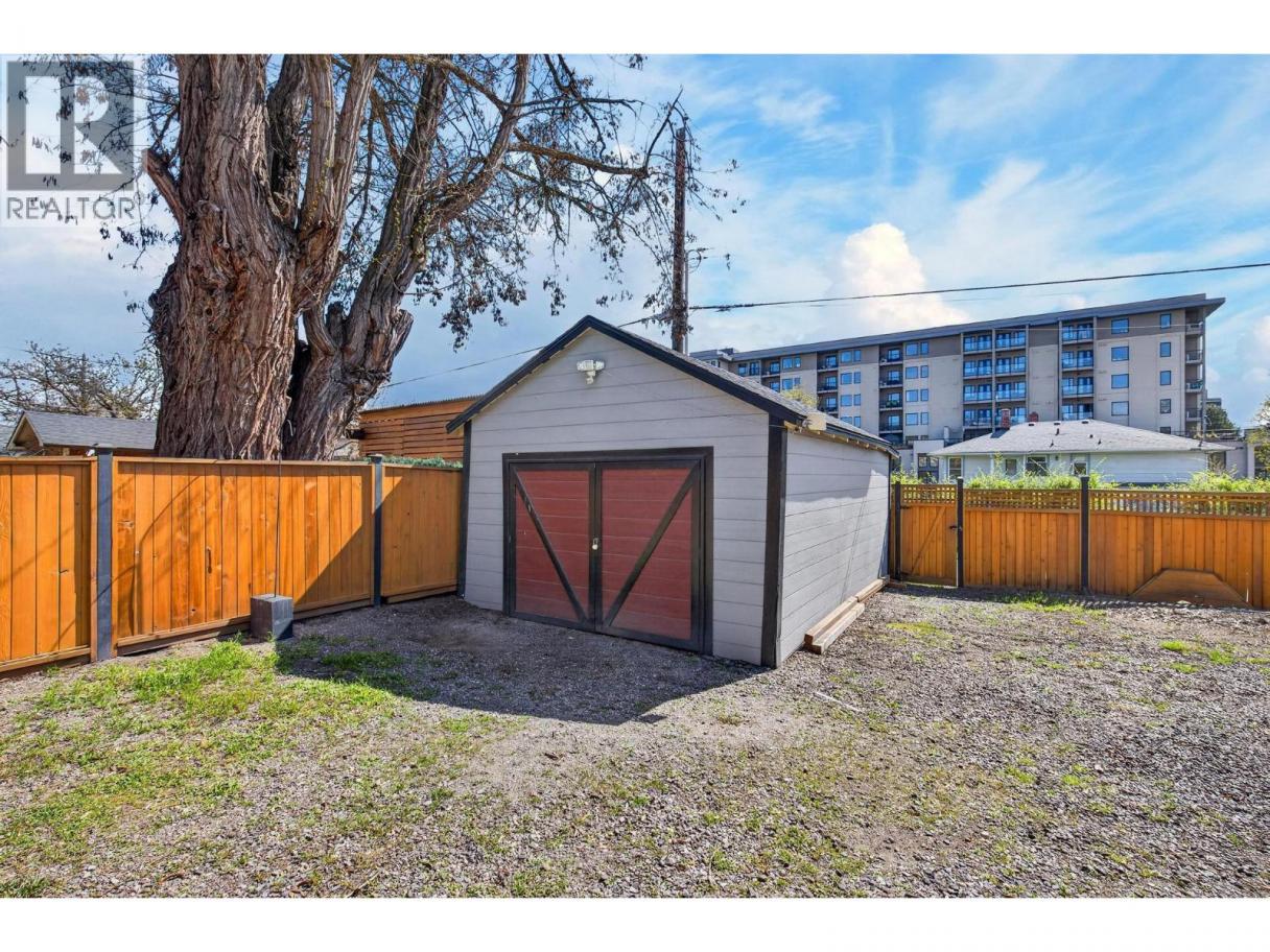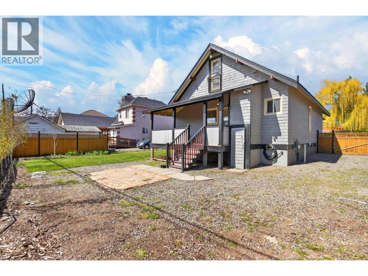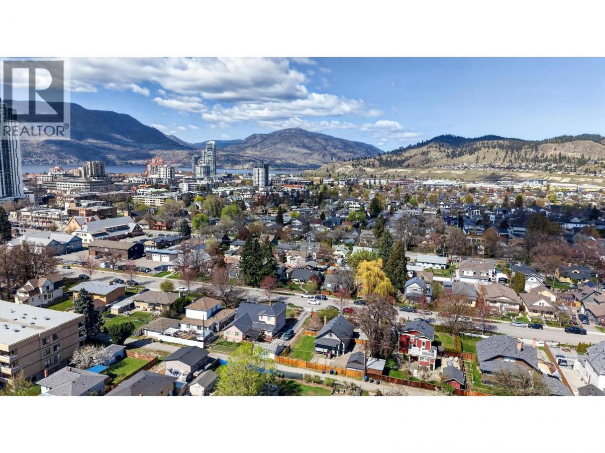 Steps away from downtown and nestled in Kelowna’s historic core, 815 Lawrence Ave seamlessly blends heritage charm with modern comfort. Known as the “Gurr House,” this 1920 Craftsman bungalow holds a special place in the Bernard, Lawrence neighbourhood, valued for its architectural character and connection to one of Kelowna’s early prominent citizens. Set on a generous 75' x 118' (.21 acre) lot with rear lane access, the home with 10' ceilings has been tastefully updated with, double-glazed windows, and major upgrades including electrical, plumbing, furnace, and hot water on demand. The upper level offers a private primary retreat with a Juliet balcony and ensuite, while the main floor features open-concept living and dining with a decorative brick fireplace, a bright kitchen with access to a covered deck, plus two bedrooms, an office, and a full bath. Outside, enjoy a fenced, zero-scape yard with in-ground irrigation, a detached single-car garage, and ample parking. Just steps to downtown amenities, beaches, restaurants, and shopping, this property offers both lifestyle appeal and future development potential. (id:6769)