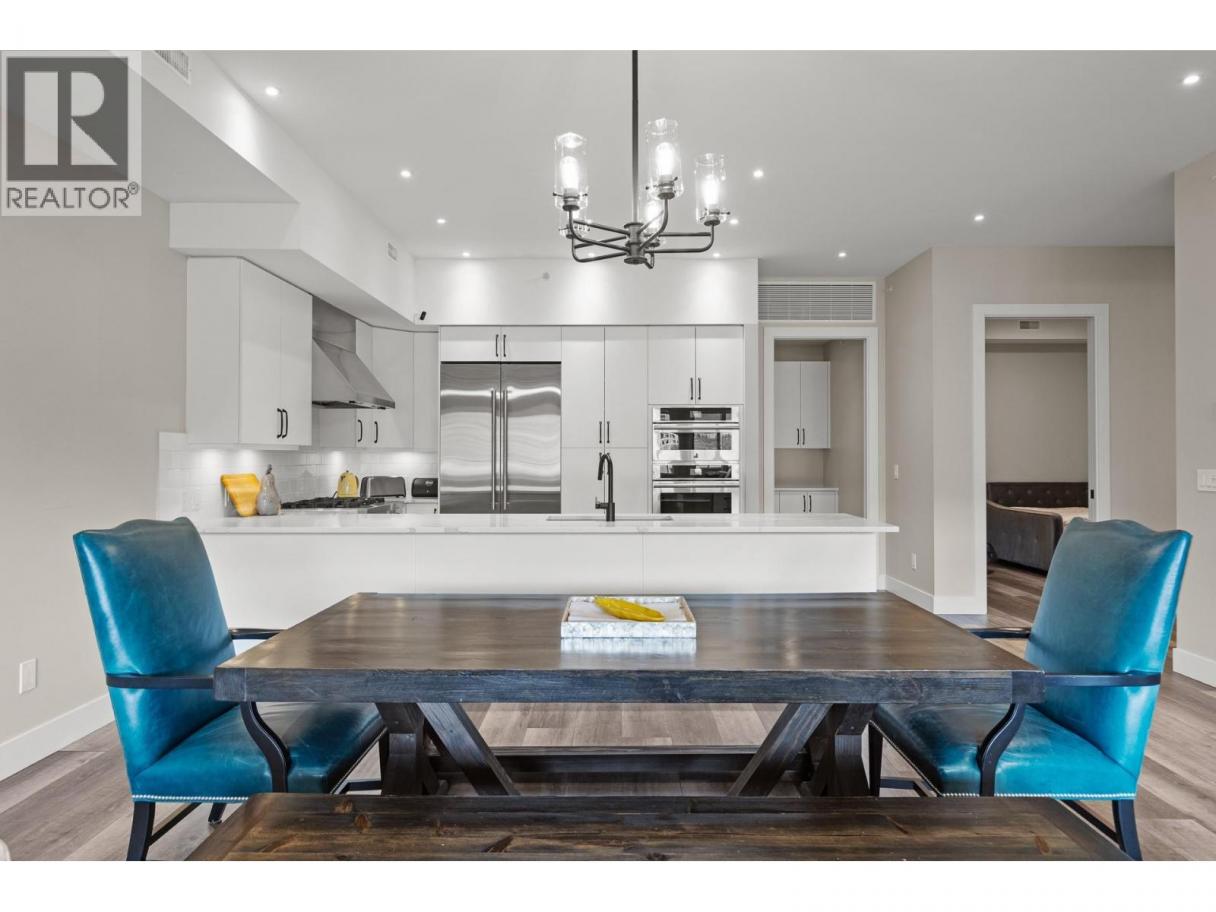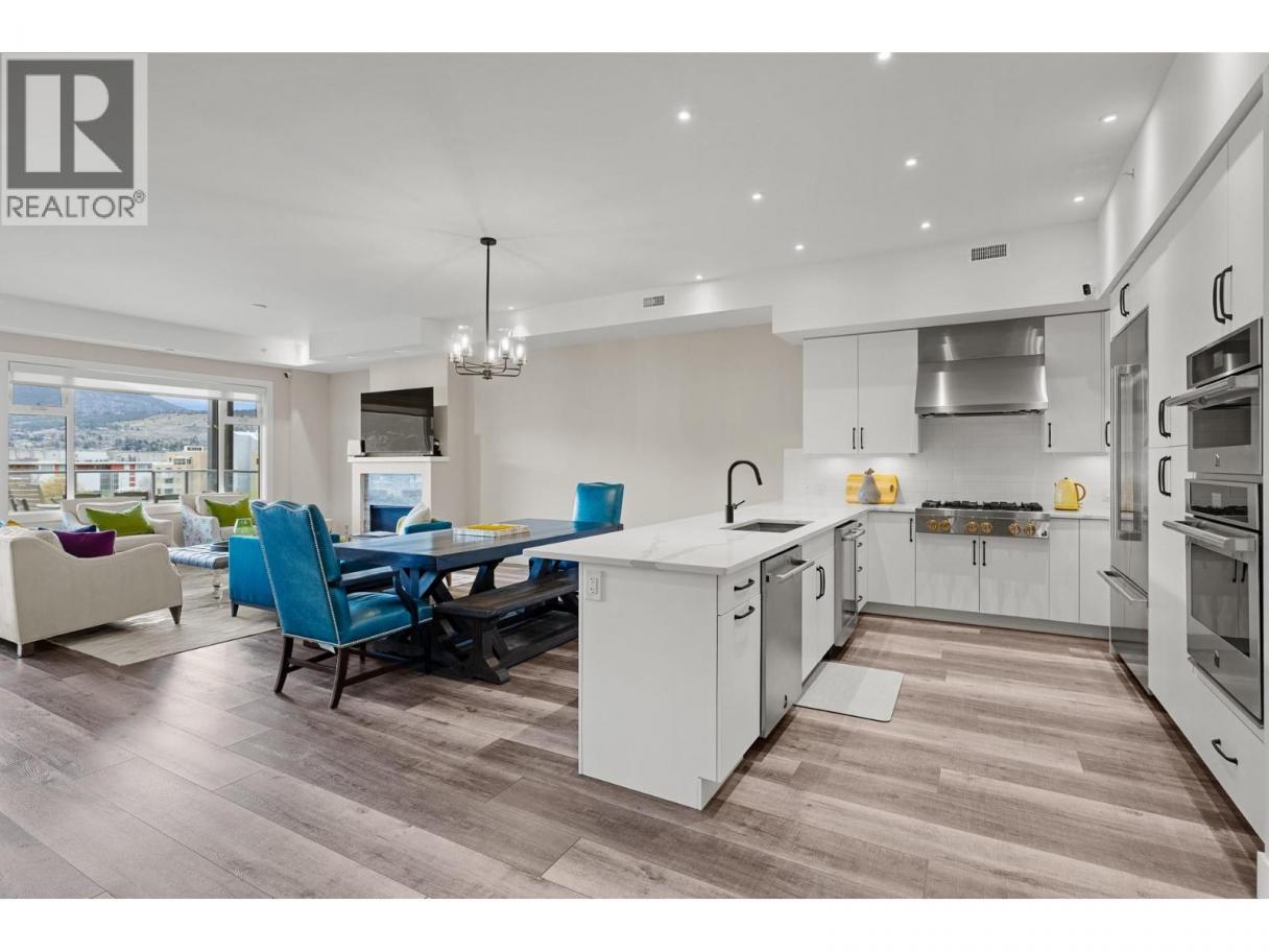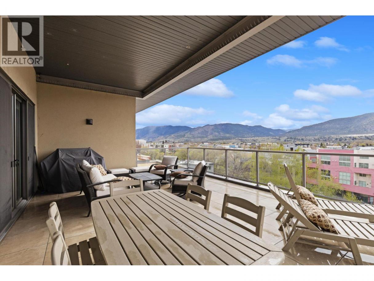 Perched atop the highly sought-after Ellis One in the heart of Penticton’s vibrant downtown, this exceptional top-floor residence delivers an unmatched blend of luxury, space, and lifestyle just steps from acclaimed restaurants,, boutique shopping and the beaches of Okanagan Lake! Offering over 1,900 sq.ft. of refined interior living , this beautifully designed 3 bedroom, 2.5 bathroom home features an expansive open-concept layout anchored by a grand living and dining space that flows seamlessly to an extraordinary ~470 sq.ft. semi-covered terrace—an entertainer’s dream with sweeping lake and city views that truly define Okanagan living! The chef-inspired kitchen is outfitted with premium stainless steel appliances, quartz countertops, double wall ovens, and a commanding 6-burner gas range, striking the perfect balance of function and sophistication. The primary retreat offers a generous footprint, walk-in closet, and a spa-calibre ensuite with soaker tub and glass-enclosed shower, while the second bedroom and third bedroom/den provide ideal flexibility for guests or a dedicated office. Built in 2020 within a modern concrete and steel building, this residence is further enhanced by thoughtful upgrades, two secure underground parking stalls, and a premier central location placing the very best of Penticton at your doorstep—an exceptional opportunity to own a true penthouse-style home where elevated design meets effortless, walkable luxury! (id:6769)