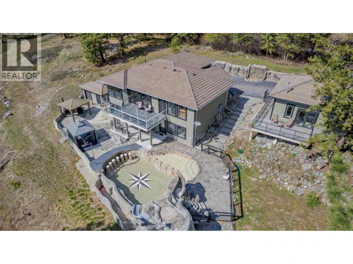 RURAL OSOYOOS RETREAT set on just over 3 ACRES. Enjoy privacy & functionality in this mountain-view property. This stunning property offers a main FAMILY SIZED HOME plus a DETACHED GUEST SUITE and HUGE 6 VEHICLE GARAGE Plus 2 VEHICLE GARAGE. The 550 sq. ft. guest suite is just steps from the main house and attached to the 6 vehicle garage. The SUITE features a spacious deck and a 5-pc bath, making it comfortable for visitors or extended family. For the automotive aficionado, this property is a dream come true, featuring: An attached double garage, a MASSIVE 1,458 SQ FT. DETACHED 6-CAR GARAGE with INFLOOR HEATING, a 2-vehicle CARPORT as well as RV PARKING & electrical hookup. In the main home, you'll find an inviting living space with a cozy fireplace, seamlessly flowing into the kitchen & dining area, positioned to maximize the breathtaking mountain views. The primary suite is a true sanctuary, featuring deck access, a luxurious 5-piece ensuite, rejuvenating jetted tub, and ample closet space. Also on the main is a second bedroom and laundry/mudroom. The lower level is designed for relaxation and entertainment, offering: A spacious family room with patio & pool access, an additional bedroom with outdoor entry. Step outside to enjoy resort-style amenities and enjoy the HEATED POOL, GROTTO and SLIDE, HOT TUB, and an OUTDOOR FIREPLACE. Perfect for alfresco gatherings. This exceptional property delivers the ultimate in privacy, recreation and vehicle storage. (id:6769)