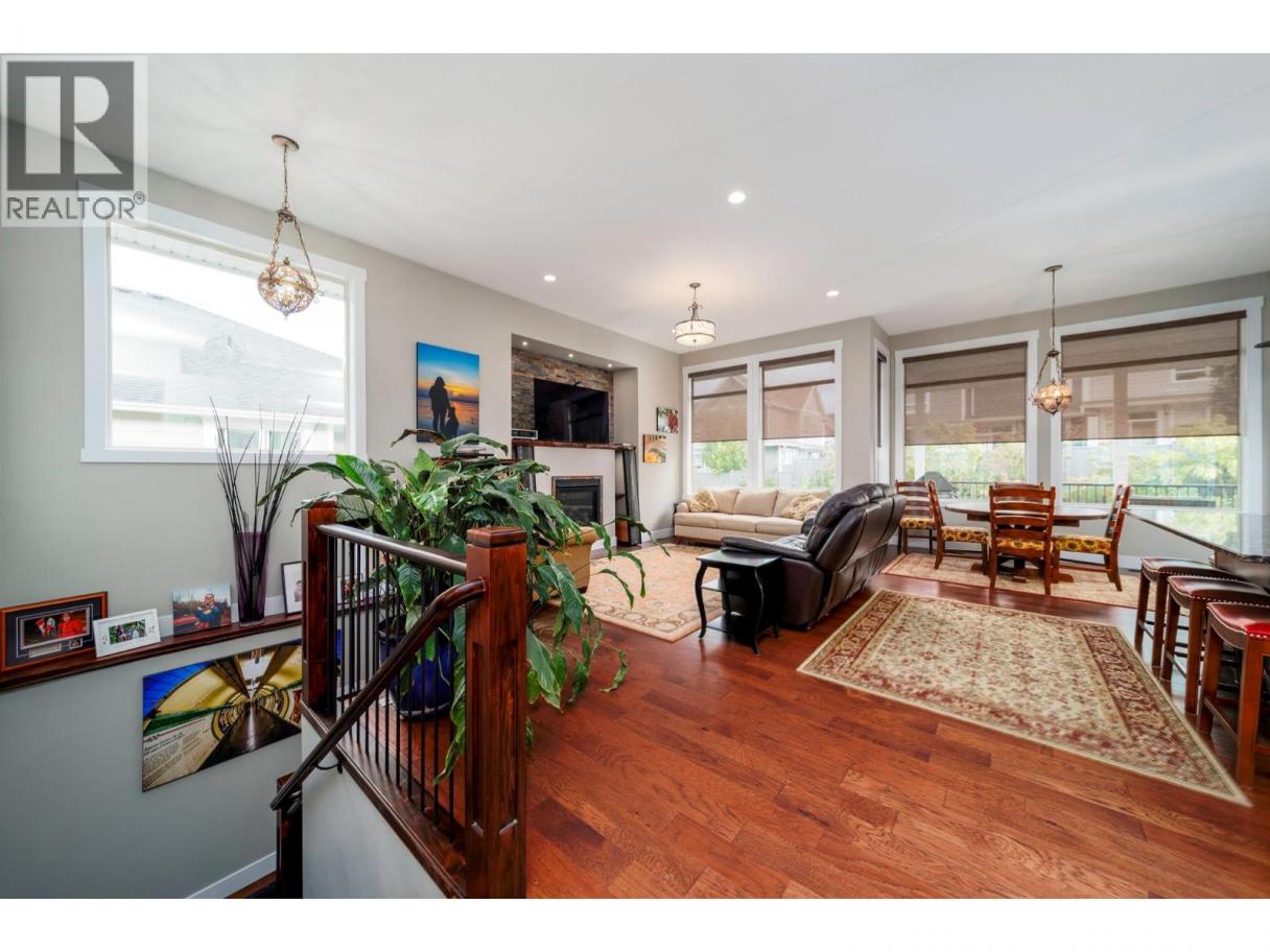 Welcome to an executive retreat in the prestigious Lakes community—where elegance meets everyday comfort! From the moment you step into the soaring 14-foot foyer, this 4-bedroom, 3-bath residence impresses with its space and sophistication. The open-concept design flows seamlessly, highlighted by a custom mantel fireplace and walls of windows that fill the home with natural light. At its heart, the chef’s kitchen is both stylish and functional, featuring a 6-burner gas range, oversized island with breakfast bar, wine fridge, granite countertops, timeless cabinetry, and walk-in pantry. Whether entertaining or enjoying a quiet evening in, the covered patio—complete with gas hookup—offers the perfect setting for outdoor dining or morning coffee. The primary suite is a private sanctuary with deck access, while the spa-inspired ensuite pampers with a soaker tub, rainfall shower, heated floors, dual vanities, and custom walk-in closet. The walk-out basement is designed for relaxation and entertainment, boasting a spacious rec room, two additional bedrooms, full bath, and flexible space for office or storage. Outside, low-maintenance xeriscaping blends beauty with function, featuring drought-tolerant plantings that enhance privacy and appeal. Evenings can be enjoyed fireside with family and friends, while the freshly landscaped front yard ensures lasting curb appeal. Additional features include a double garage with convenient access to the laundry room. (id:6769)
