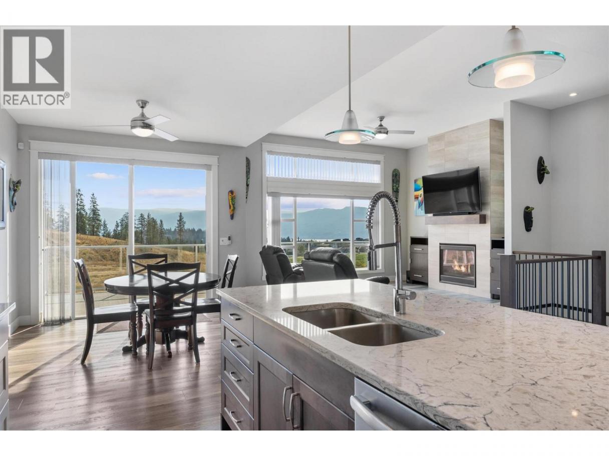 Perched above the vineyards in one of West Kelowna’s most sought-after neighbourhoods, this beautifully designed home showcases sweeping lake and mountain views that truly set it apart. Expansive windows flood the open-concept main level with natural light, while vaulted ceilings and a gas fireplace create a warm, inviting sense of space. The kitchen blends everyday functionality with refined style, featuring quartz countertops, a large island, gas range, stainless steel appliances, and a walk-in pantry—perfectly suited for both casual living and entertaining. The dining area flows seamlessly to a covered patio, pre-wired for a hot tub, where low-maintenance landscaping and astronomical timed lighting extend your enjoyment well into the evening. Positioned to capture the views, the primary suite offers a peaceful retreat complete with a private ensuite. Downstairs, a self-contained one-bedroom suite with its own entrance and laundry provides excellent flexibility for extended family, guests, or valuable mortgage-helper income. The heated garage accommodates a full-size truck and includes a workbench, while dedicated RV parking adds further convenience. Practical upgrades such as built-in vacuum and a BreathRite fresh air exchange system enhance comfort and livability. Located just minutes from renowned wineries, golf courses, hiking trails, and everyday amenities, this meticulously maintained home delivers the perfect balance of tranquility, lifestyle, and convenience. (id:6769)