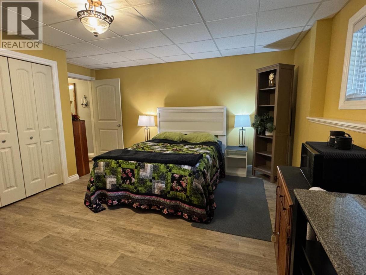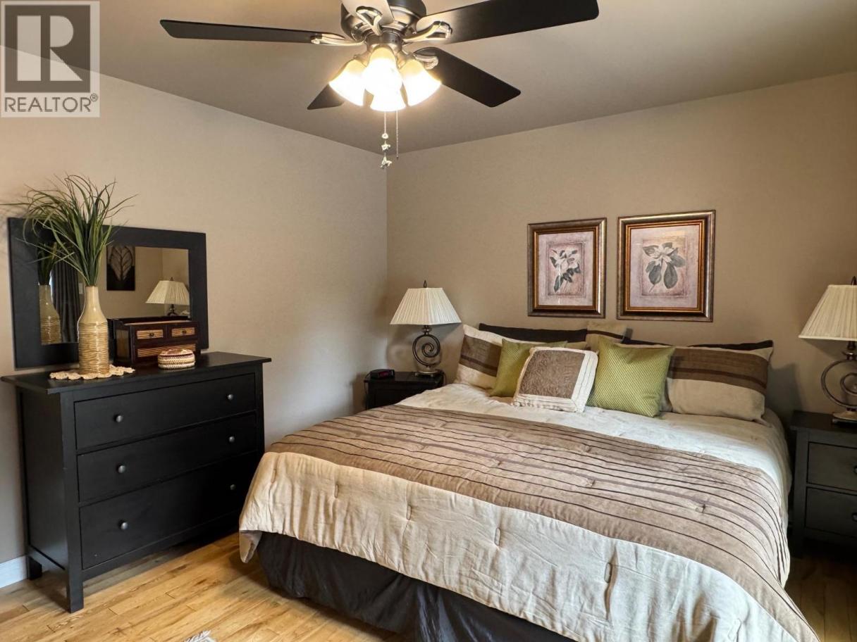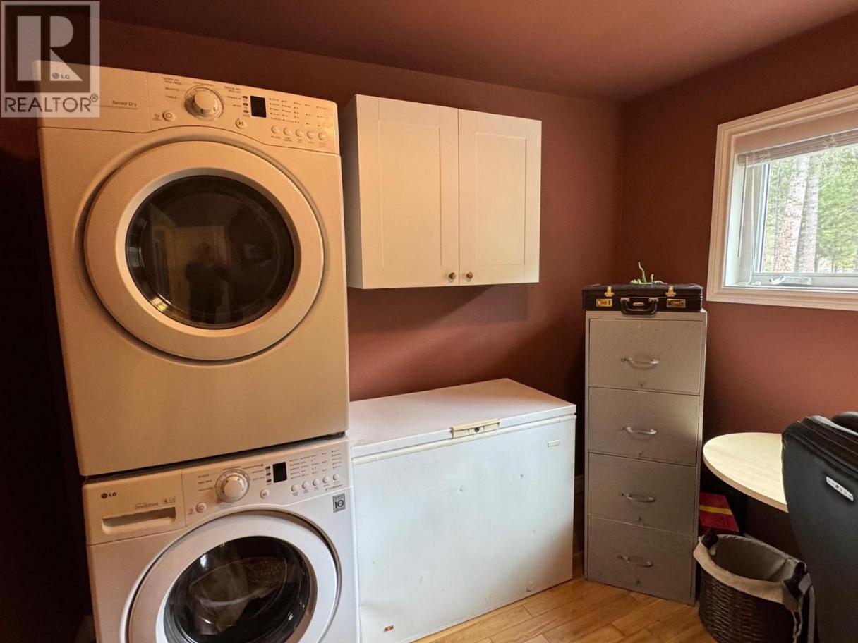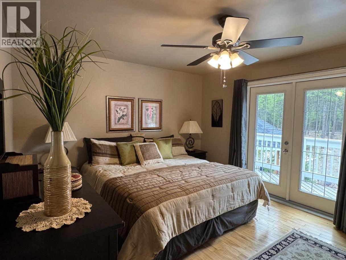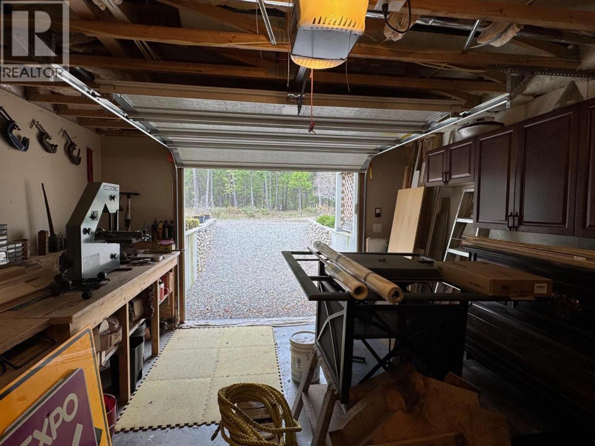 Beautiful flat 4.47-acre treed property. The bright, open-concept upper level offers vaulted ceilings and a seamless flow between the living, dining, and kitchen areas, complete with a breakfast bar, granite countertops, and pantry. Two bedrooms are located on the main floor, with potential for a third (currently used as an office/laundry), along with a spacious primary suite featuring a full ensuite, an additional bathroom, and convenient access to the double car garage. Enjoy indoor-outdoor living with three sliding glass doors leading to a large wraparound deck—perfect for taking in the manicured grounds and stunning sunsets. The lower level includes a bedroom, family room, bathroom, and an impressive workshop with direct outdoor access. A truly unique property offering space, privacy, and versatility. Tremendous value—please book a private viewing at your earliest convenience. (id:6769)
