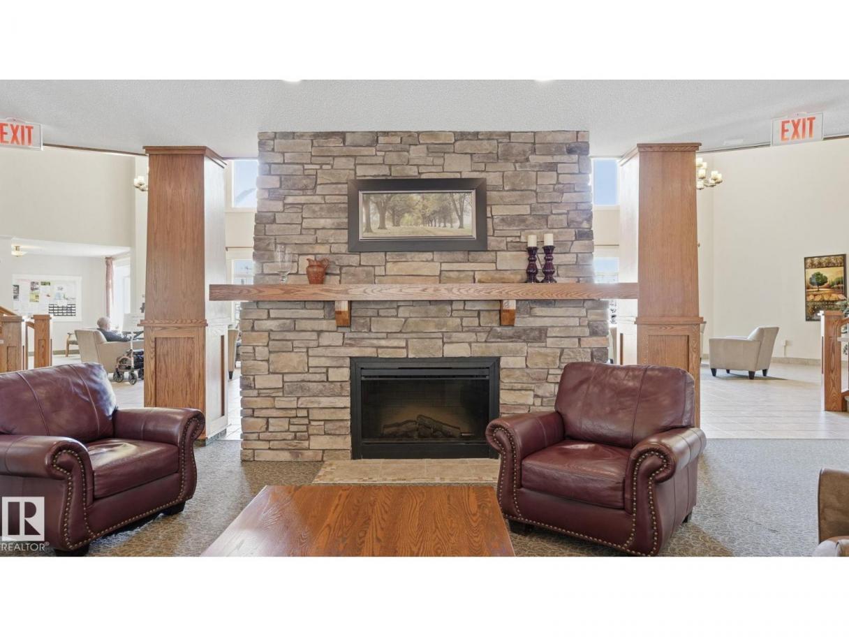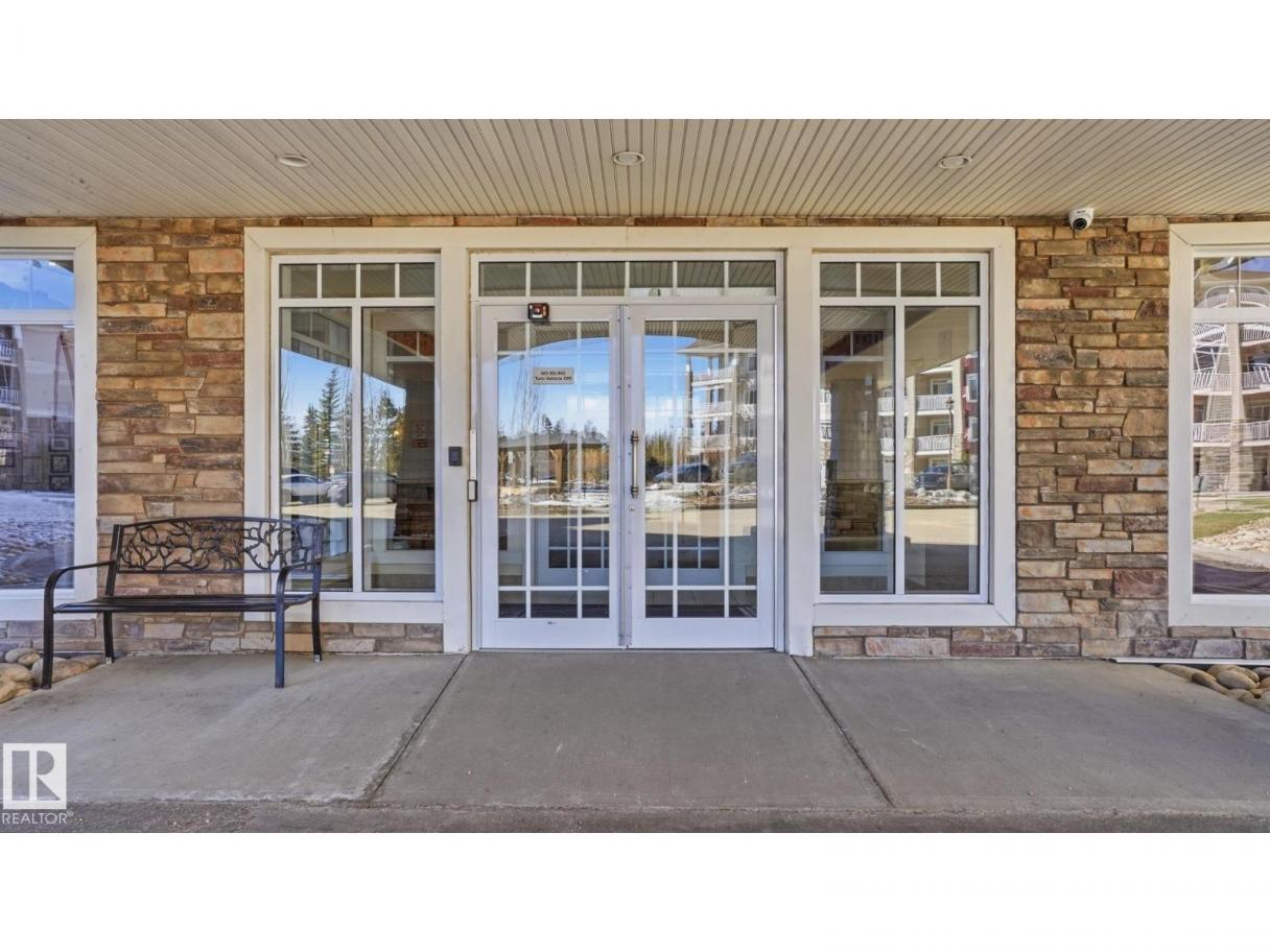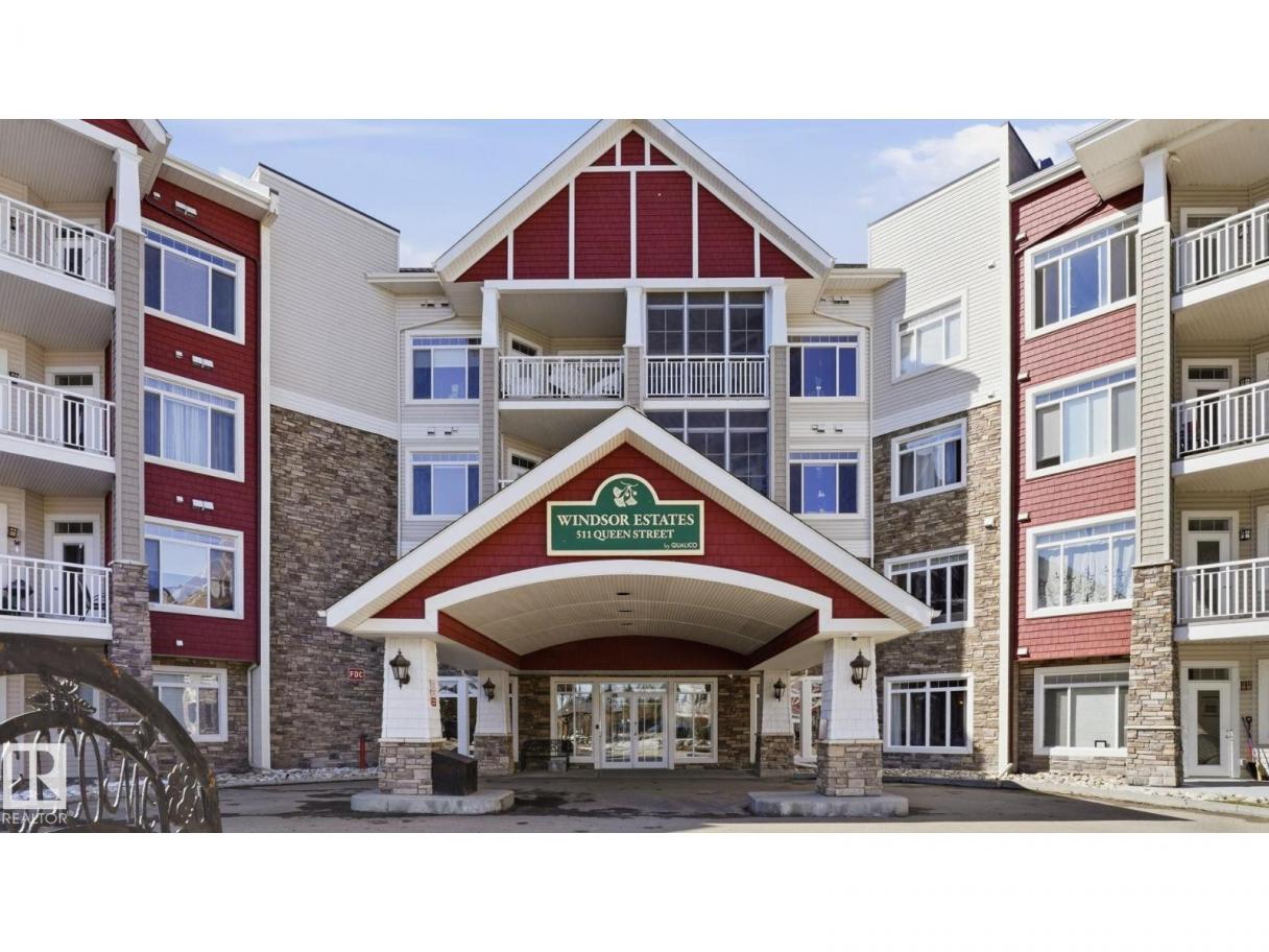 Welcome to WINDSOR ESTATES one of Spruce Grove’s premier 55+ communities. Enjoy top floor living w/this east-facing unit offering peaceful pond views & a bright, inviting atmosphere—perfect for those seeking a relaxed, maintenance-free lifestyle. Ideal for downsizers or those wanting a lock-it & leave-it home base while travelling. Spacious 1-bedroom, 1-bathroom condo w/high coffered ceilings providing a well-designed living space w/functional layout featuring a spacious primary bedroom, full 4-piece bath, & convenient in-suite laundry w/added storage. Enjoy large windows, a covered balcony w/tranquil morning sun, air conditioning, & heated underground TITLED parking stall w/secured storage. This complex exudes class & is a cut above the rest, offering amenities such as a theatre room, exercise room, social spaces, guest suites & car wash. Centrally located next to Queen Street Medical Centre & just steps to cafés, Spruce Grove’s downtown core, and Heritage Park’s scenic walking trails. (id:6769)