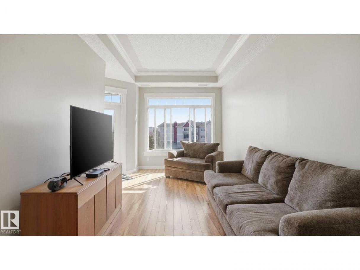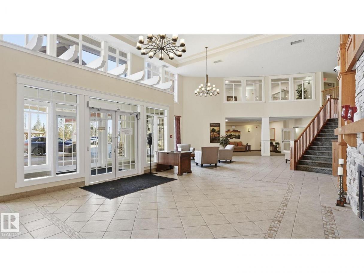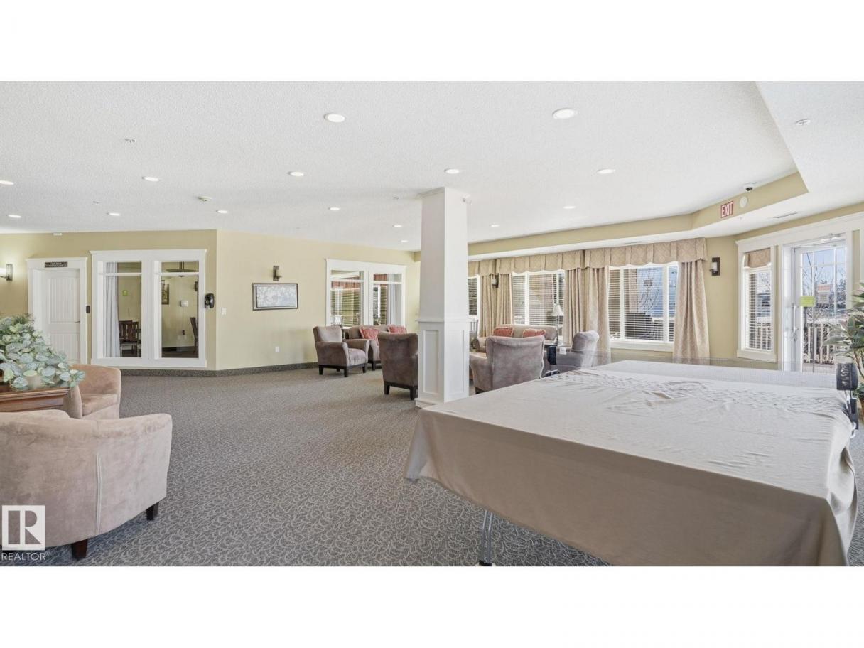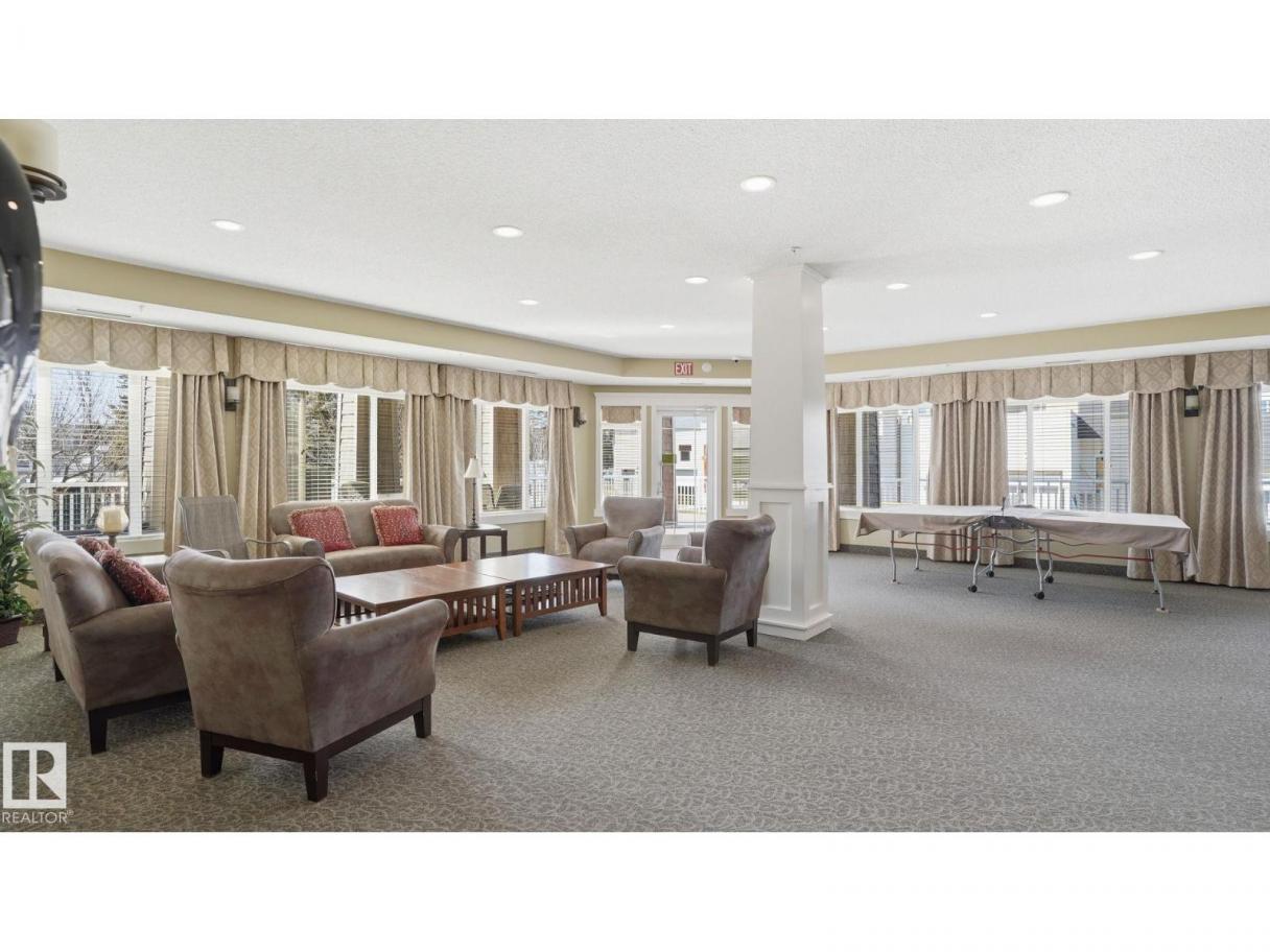 Welcome to WINDSOR ESTATES one of Spruce Grove’s premier 55+ communities. Enjoy top floor living w/this east-facing unit offering peaceful pond views & a bright, inviting atmosphere—perfect for those seeking a relaxed, maintenance-free lifestyle. Ideal for downsizers or those wanting a lock-it & leave-it home base while travelling. Spacious 1-bedroom, 1-bathroom condo w/high coffered ceilings providing a well-designed living space w/functional layout featuring a spacious primary bedroom, full 4-piece bath, & convenient in-suite laundry w/added storage. Enjoy large windows, a covered balcony w/tranquil morning sun, air conditioning, & heated underground TITLED parking stall w/secured storage. This complex exudes class & is a cut above the rest, offering amenities such as a theatre room, exercise room, social spaces, guest suites & car wash. Centrally located next to Queen Street Medical Centre & just steps to cafés, Spruce Grove’s downtown core, and Heritage Park’s scenic walking trails. (id:6769)