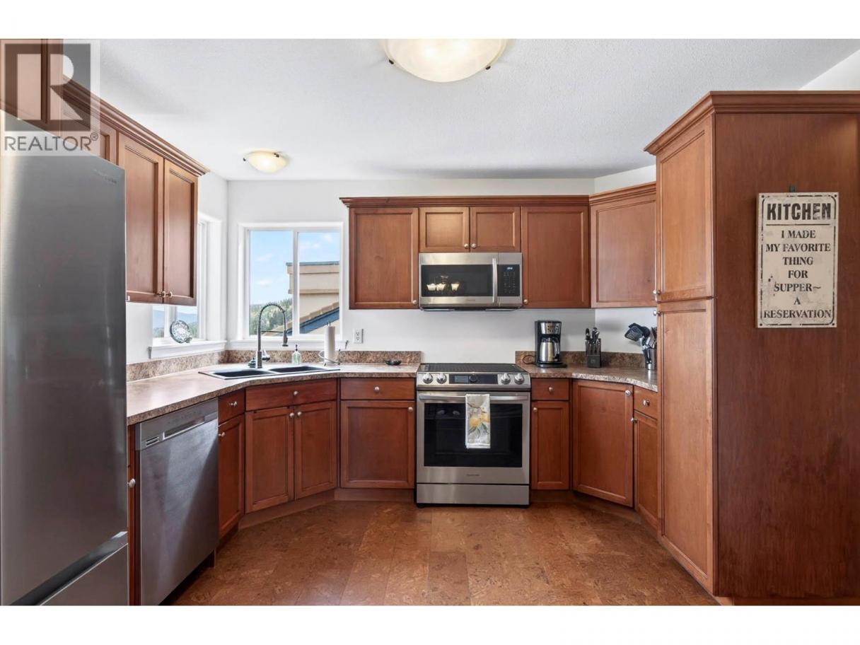 Welcome to this beautifully updated 3-bedroom, 2.5-bath view townhome in a desirable Kamloops Upper Sahali location. Offering a functional layout and modern upgrades, this home is perfect for families, first-time buyers, or investors. Step inside to find fresh paint and updated flooring throughout most of the home, creating a bright and inviting atmosphere. The spacious main floor features an open-concept living and dining area with a gas fireplace and great view, ideal for everyday living and entertaining. The kitchen, recently updated in 2025, and with new appliances in 2024 offers ample storage and workspace, and quiet and comfortable cork floors. One bedroom/office/den, a powder room, and the laundry are also on the main floor. Upstairs, you’ll find two comfortable bedrooms, including a very large primary suite with access to the rear greenspace, its own ensuite bath, and an additional full bath. All the bathrooms are well-appointed with new fixtures in 2024, providing convenience for family and guests. Enjoy year-round comfort with a recently updated (2019) furnace and central A/C. Parking is a breeze with a single garage plus two additional outdoor spaces—rare for this type of property. Located close to schools, parks, shopping, and transit, this home and well-maintained complex combines convenience with comfort. Move-in ready with all the right updates—don’t miss your opportunity to call this one home! (id:6769)