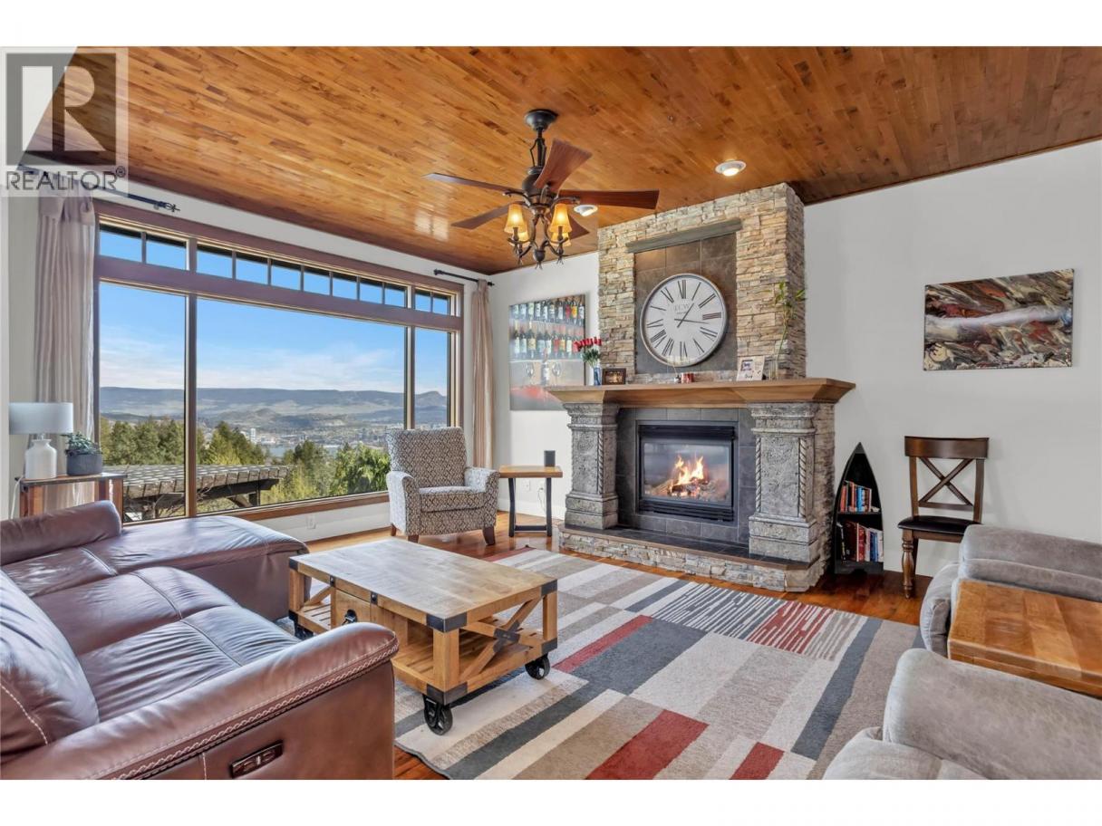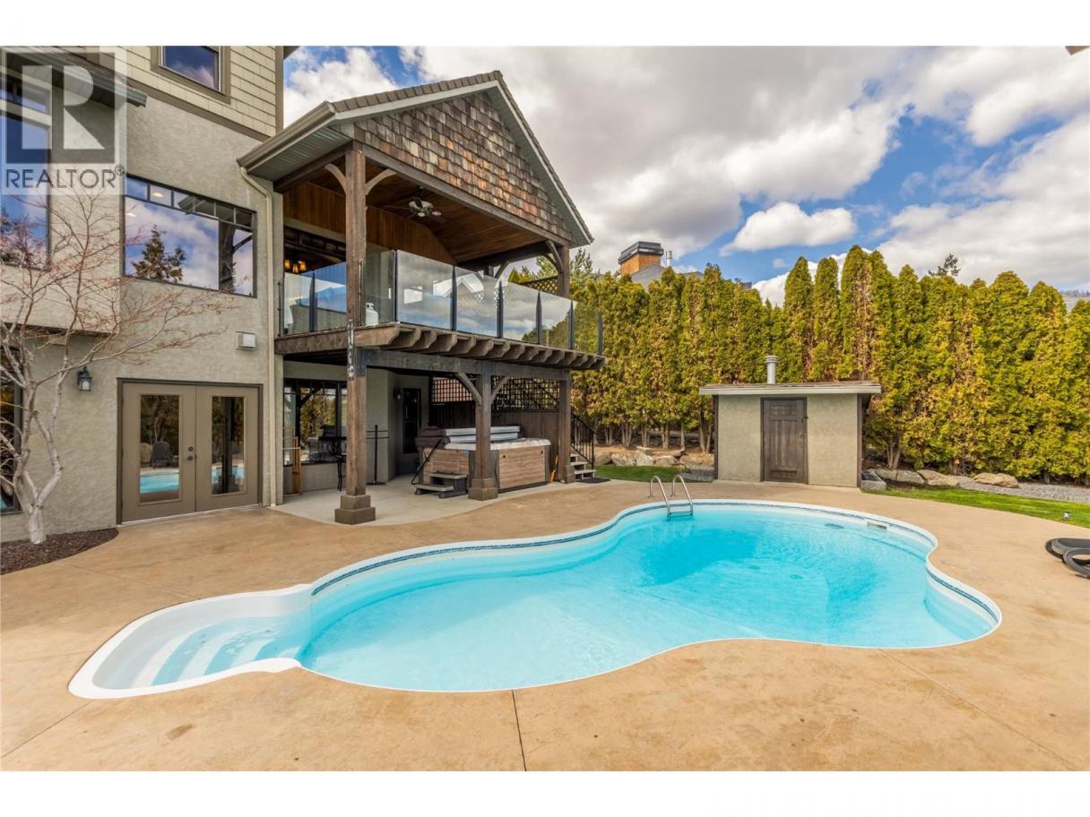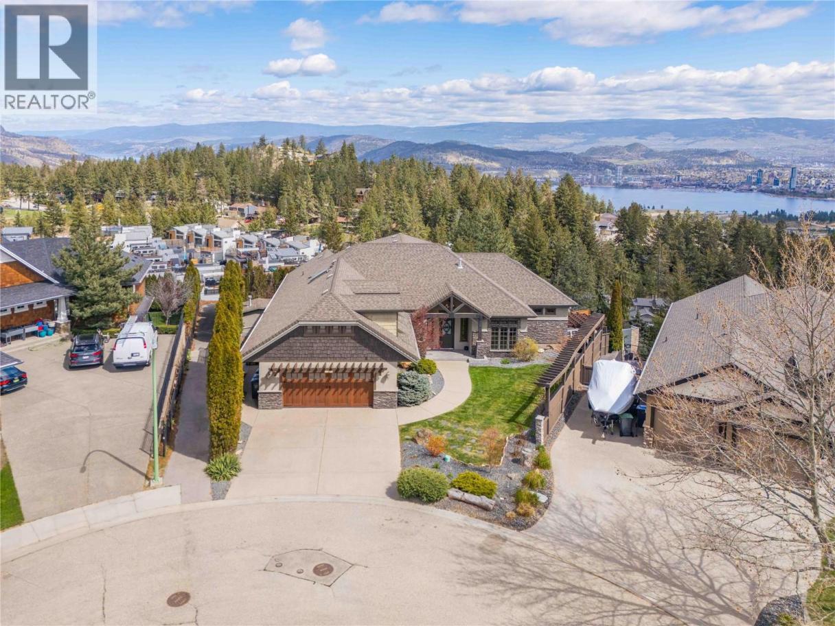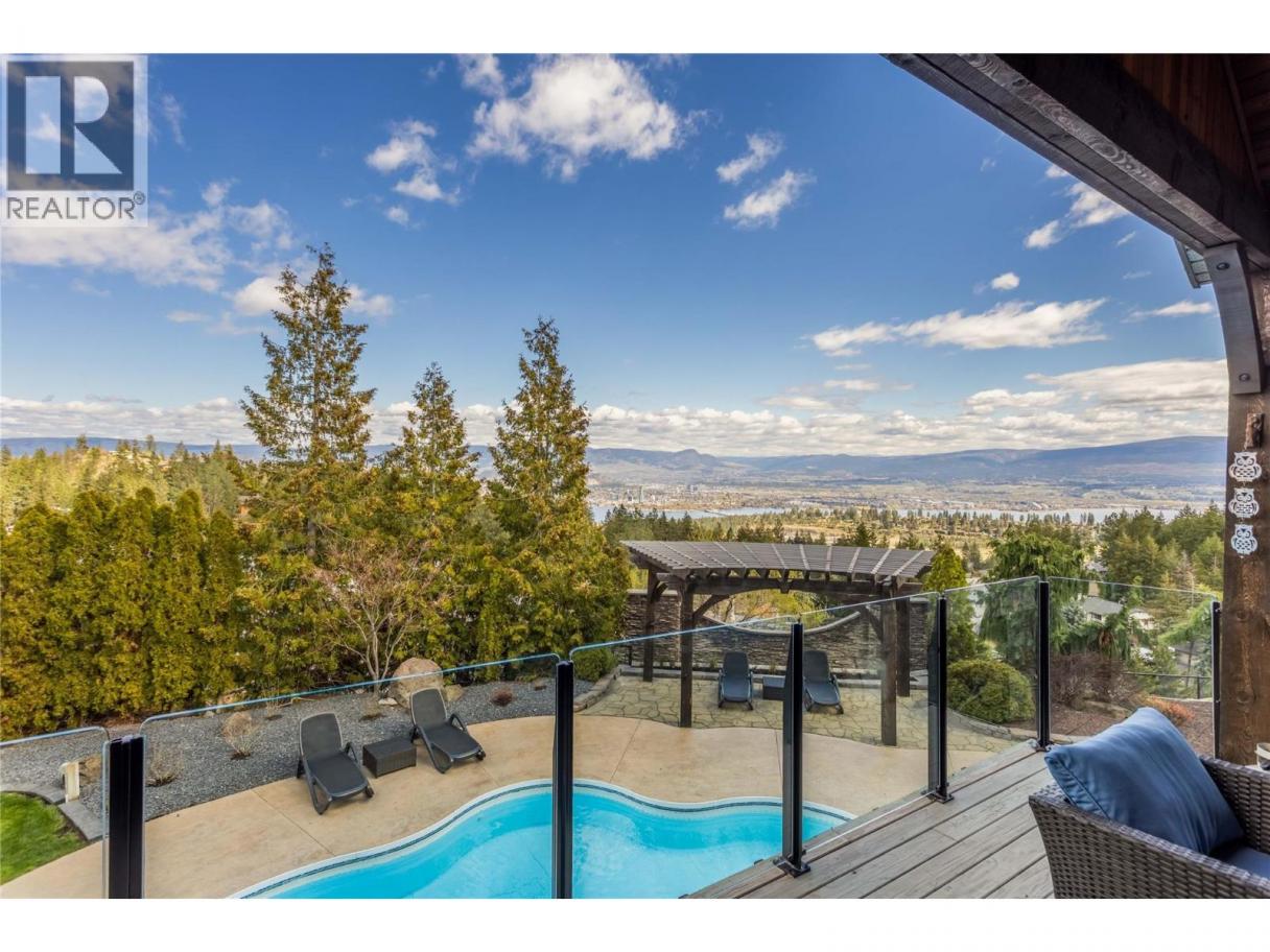* OPEN HOUSE SATURDAY APRIL 25TH 12-3PM * Set on a quiet cul-de-sac in the desirable Rose Valley neighbourhood, this custom built rancher offers stunning views, privacy, and a fully finished walkout basement. Thoughtfully designed with an expansive layout, the home features 5 bedrooms & 7 bathrooms. The bright and inviting main living space is highlighted by vaulted ceilings, a floor to ceiling fireplace, hardwood floors and expansive windows to enjoy the city and mountain views. The chef’s kitchen is designed to impress, complete with custom cabinetry, Fisher Paykel appliances, a large island, pantry & eating area. The living/dining areas flow onto the generous outdoor deck, where you can relax, dine, and take in the incredible views. The main floor primary retreat provides a peaceful escape with its own fireplace, a spa like ensuite with clawfoot tub, and access to your own private deck. Additional living space on the main floor provides options for an office, flex space, or guest rooms. The lower level offers incredible flexibility with a spacious rec room, media room, gym area, and 3 additional bedrooms and bathrooms. Outdoors, the property truly shines with a private, fully landscaped yard with an in ground pool, hot tub, and multiple patio areas for relaxing and hosting. BONUS: A self contained 1 bedroom suite above the garage adds excellent value for rentals or guests. All of this is set against a backdrop of sweeping views of Okanagan Lake and the city of Kelowna. (id:6769)