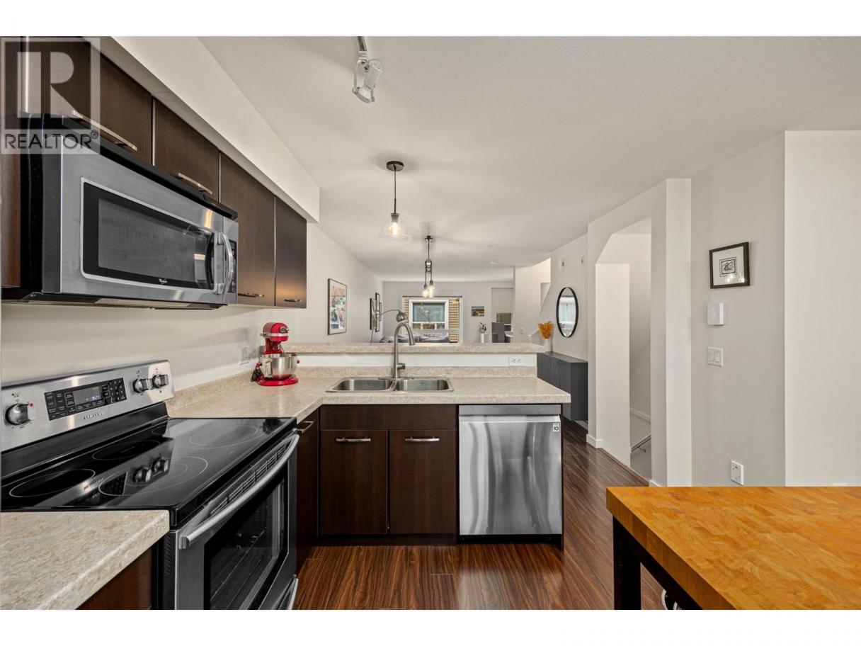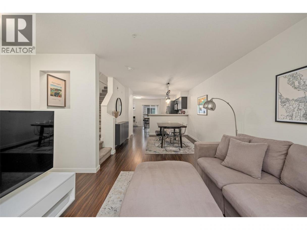 Enjoy the best of central Kelowna living in this stylish urban-inspired townhome at Dwell. Perfectly located near Orchard Park Mall, restaurants, coffee shops, banks, theatres and everyday amenities, this home offers exceptional convenience in one of Kelowna’s most central locations. Leave the car at home and enjoy being within walking distance to shopping, services and entertainment. This bright 2 bedroom + den, 2-bathroom home features a functional open-concept main floor with spacious living, dining and kitchen areas—ideal for both everyday living and entertaining. The kitchen includes four appliances and connects seamlessly to the main living space, creating a comfortable and airy feel. Upstairs you’ll find two well-sized bedrooms along with a versatile den that works perfectly as a home office, reading space or additional lounge area. Above it all is the highlight of the home—an expansive private rooftop sundeck of approximately 410–485 sq ft, providing a fantastic space for relaxing, entertaining friends, or enjoying warm Okanagan evenings. Below the living area is a tandem two-car garage offering secure parking and excellent storage for bikes, seasonal items and outdoor gear. Dwell offers the perfect balance of urban energy and comfortable living, making it an excellent alternative to condo living in the heart of Kelowna. (id:6769)