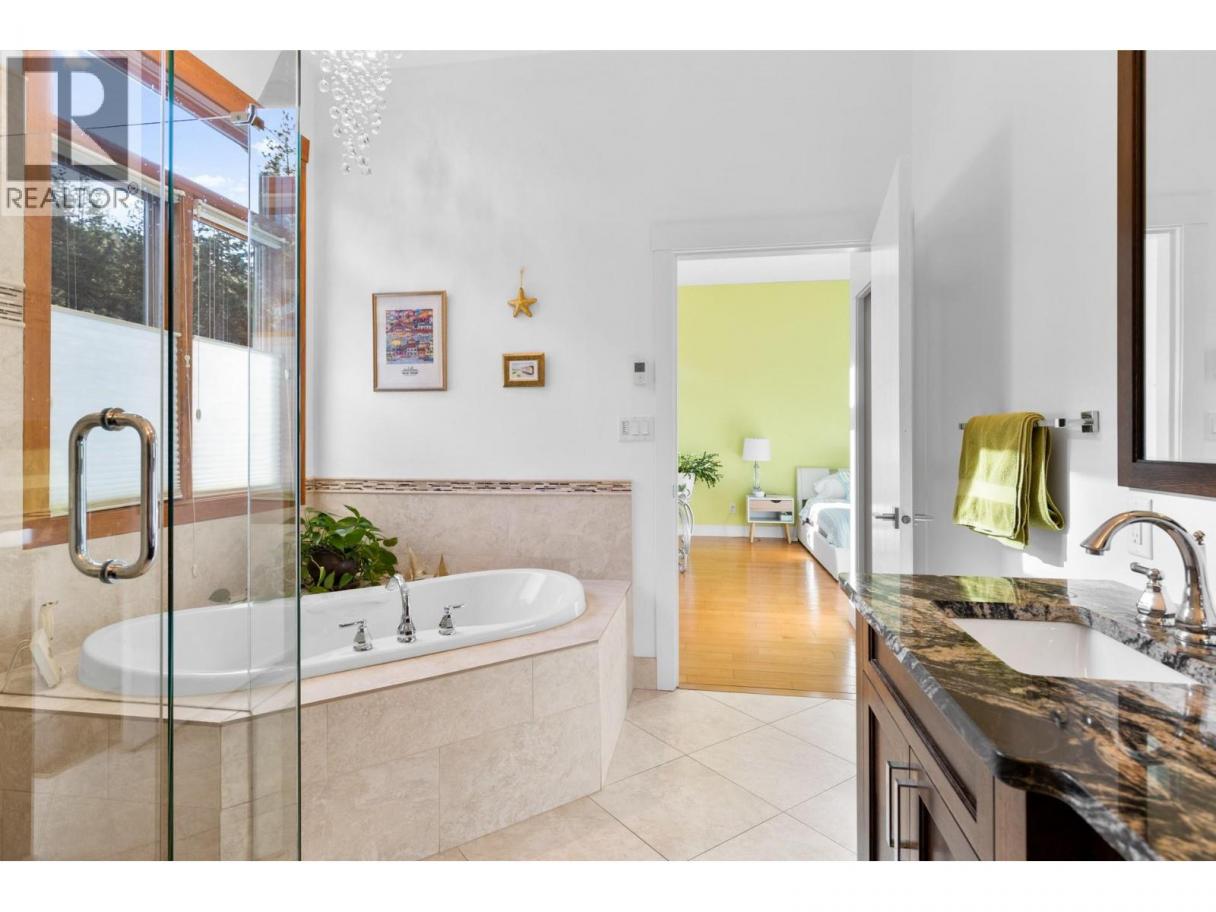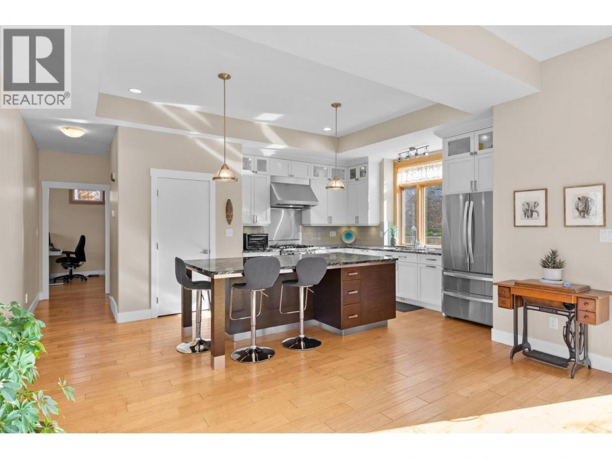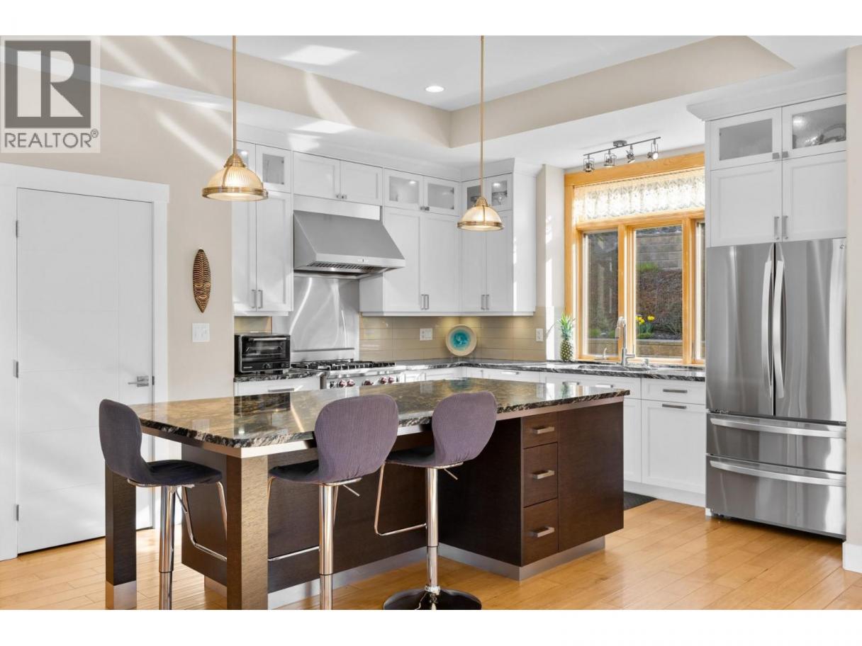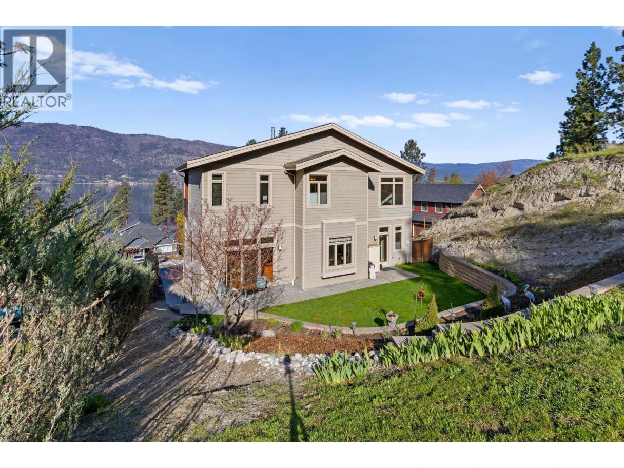 Welcome to lake living at its finest in the heart of Okanagan Centre, just moments from the shoreline of Okanagan Lake, where lifestyle, views, and tranquility define everyday living. Set on a private 1.15-acre property in one of Lake Country’s most desirable lakeside communities, this beautiful residence offers the perfect blend of space, comfort, and connection to the water. Built in 2014 and offering over 3,600 sq. ft. of living space, this home captures the essence of the Okanagan from every angle. Expansive windows throughout frame breathtaking lake views, while 10-foot ceilings and engineered hardwood flooring create a bright, airy atmosphere. The main level is designed for both everyday living and entertaining, featuring a spacious open-concept kitchen, dining, and living area. The kitchen is well-appointed with stainless steel appliances, granite countertops, a large island, and a walk-in pantry. A dedicated office/den provides an inspiring work-from-home space, with seamless access to both front and back outdoor areas. Upstairs, a family-friendly layout offers three bedrooms, including a generous primary retreat with private balcony access, and a five-piece ensuite complete with a soaker tub. Two additional bedrooms are serviced by a four-piece bathroom. The lower level, complete with in-floor heating, adds flexibility with a fourth bedroom, three-piece bathroom, laundry, and a sound-insulated media room, ideal for a home theatre experience. Take in stunning sunsets over Okanagan Lake from the screened front deck, unwind in the privacy of the back patio and garden, or explore the upper yard with its peaceful, natural surroundings. Both decks are engineered for hot tubs, offering even more opportunity to enjoy this exceptional setting. Located just steps from lakeshore access, the boat launch, local cafes, and renowned wineries, this home places you in the center of the Okanagan lifestyle. (id:6769)