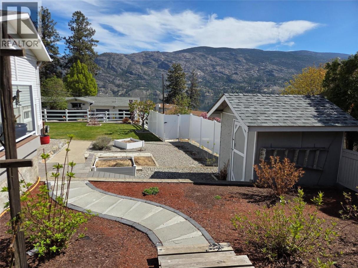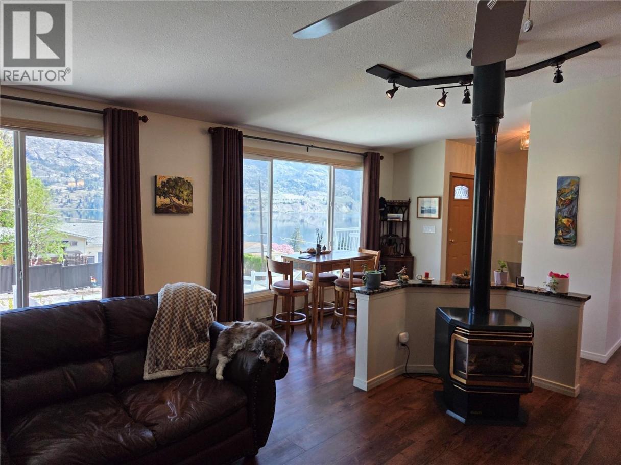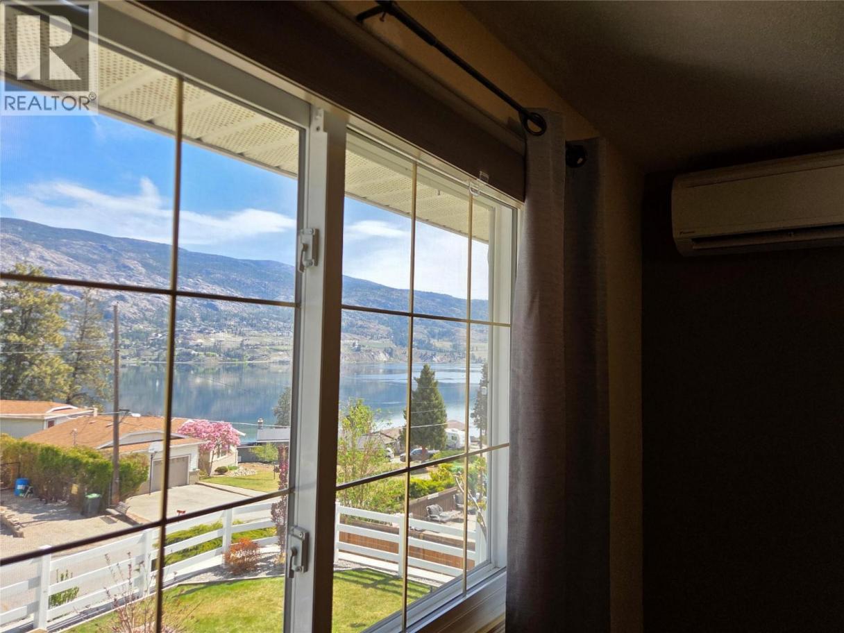 Amazing Lake View, everything you want from Kaleden: Private, quiet, and Lake views! Quarter Acre lot, no maintenance by the road, new retaining wall, landscaping and fencing, low maintenance front lawn with shop under the stairs, and garden areas on the side. The well kept and updated home has 3 bedrooms up, a large kitchen with door out to a back deck, big living and dining area with cozy gas fireplace, and ductless heating and cooling units throughout. Large main suite downstairs with great Lakeview, walk in closet, and lots of room. Large laundry, second living area downstairs, attached garage and a great cold room for storage. This home has it all, new roof (2025), dishwasher (2024), stove (2025), and HWT (2019). (id:6769)