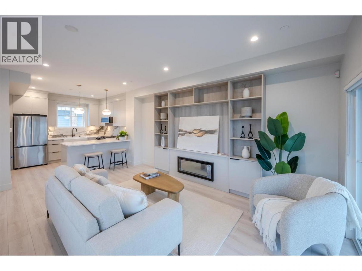 Qualified First-time buyers save thousands — no GST on this home. Introducing Argyle by Basran Properties — where timeless farmhouse-inspired architecture meets fresh, contemporary interiors. This quality-built townhome offers 3 bedrooms, 3 bathrooms, a fenced yard, and ample parking with both a garage and carport. The main level features a bright, open-concept layout with 9' ceilings and a designer kitchen showcasing quartz countertops, a full-height quartz backsplash, a gas range, and premium appliances. The inviting living area includes a feature wall with built-in cabinetry and an electric fireplace, with access to a private deck. Upstairs, the spacious primary suite boasts a walk-in closet with custom millwork and a 3-piece ensuite featuring a herringbone-tiled, custom-glass shower. Three generously sized bedrooms and convenient upper-level laundry complete this floor. Perfectly located near downtown Penticton, the SOEC, restaurants, and schools, Argyle offers a connected, low-maintenance lifestyle. (id:6769)