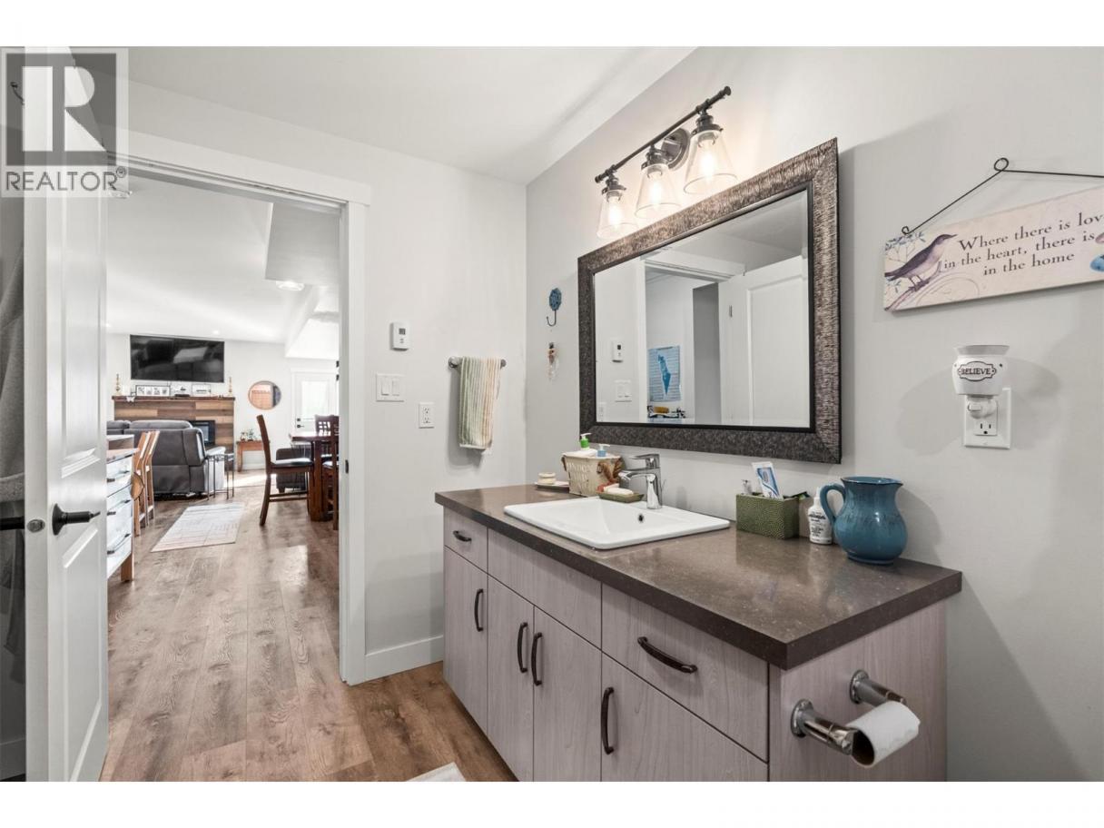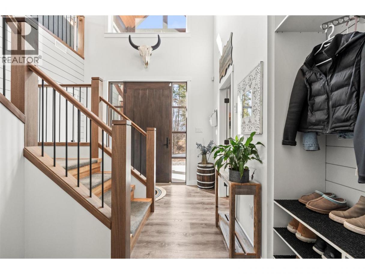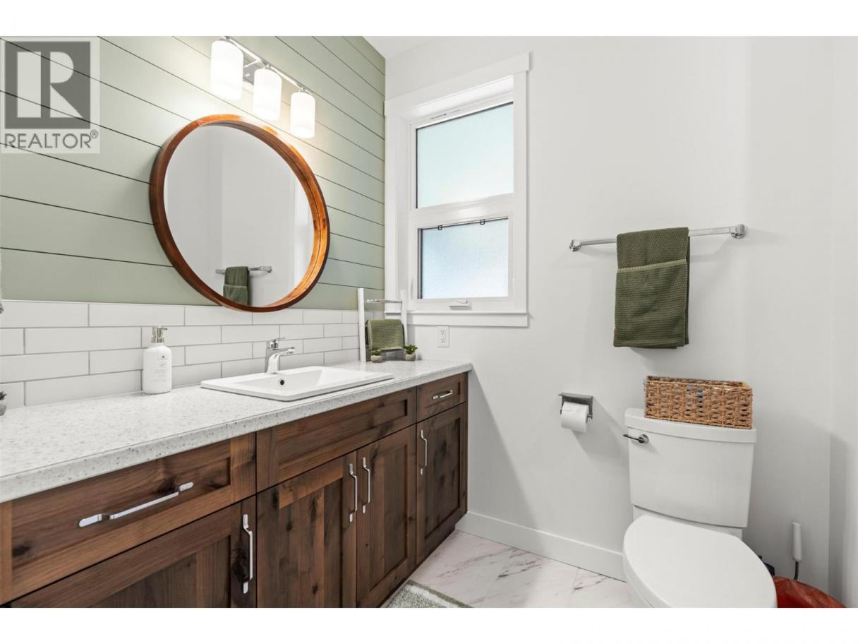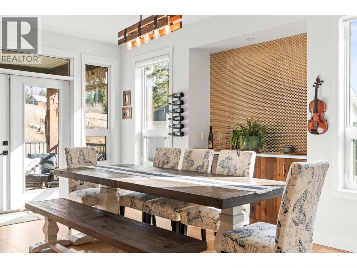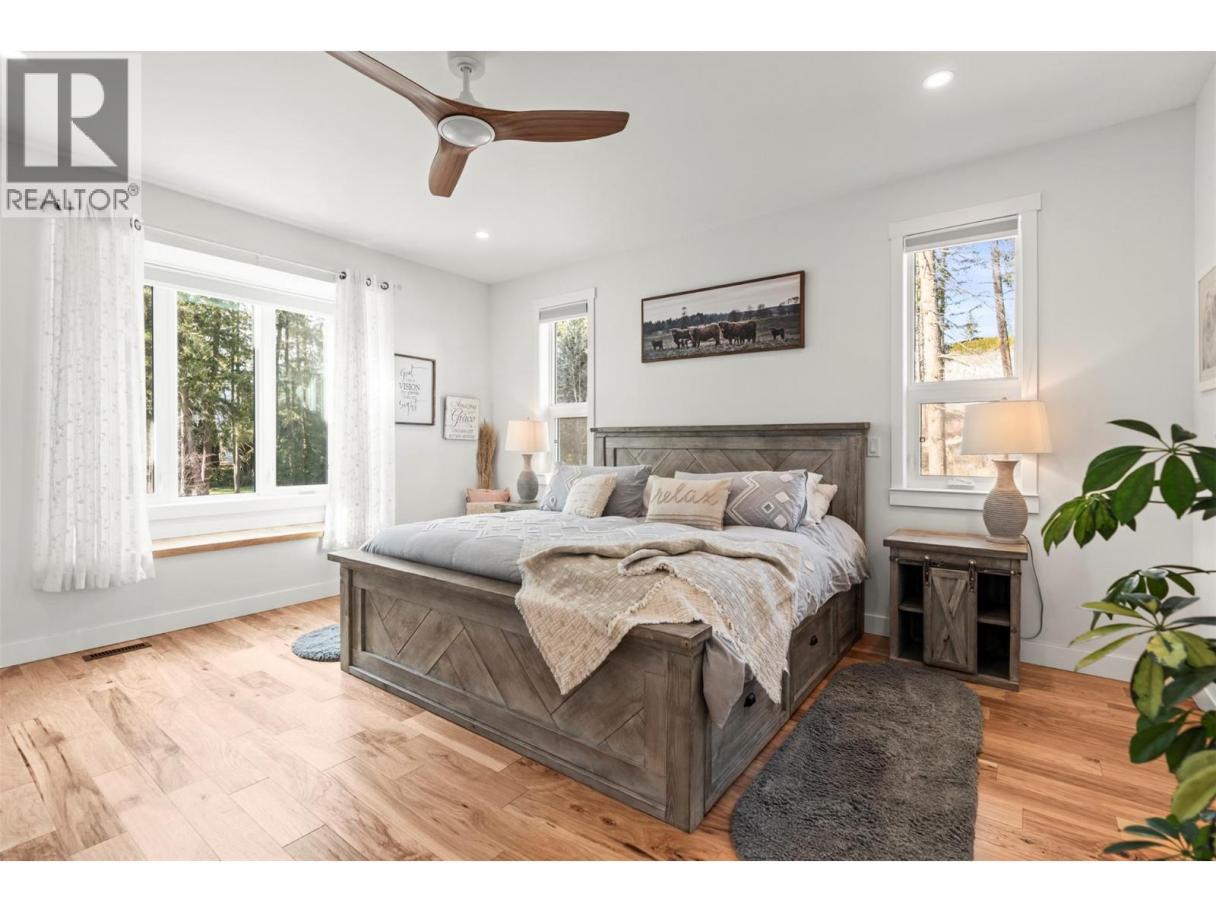 Imagine coming home to space, comfort, and lifestyle in one of Salmon Arm’s most sought-after neighbourhoods. This stunning custom-designed 0.60-acre home sits among elegant estate properties, just minutes from the sparkling waters of Shuswap Lake. Inside, warm Hickory hardwood floors, 9-foot ceilings, and abundant natural light create an open, inviting atmosphere. The kitchen, featuring Alder cabinetry, quartz countertops, and thoughtful design, flows seamlessly into dining and living areas—perfect for entertaining friends, gathering with family, or enjoying a quiet evening. Step outside to the covered upper deck and take in the peaceful surroundings, watch the sunset, or savor your morning coffee. The primary suite is a private retreat with a walk-in closet and luxurious five-piece ensuite, complete with freestanding soaker tub and glass shower. Two additional bedrooms, a full bathroom, and laundry complete the upper level. Downstairs offers flexibility with a fourth bedroom or office with its own bathroom, plus a bright two-bedroom suite with separate laundry and covered patio—ideal for guests, extended family, or rental income. Over $50,000 has been invested in landscaping and fencing, creating a private backyard ready for kids, pets, summer gatherings, or simply relaxing outdoors. With zoning allowing a future carriage home, this property offers not just a home, but a rare opportunity to embrace the lifestyle you’ve been dreaming of—right here in beautiful Salmon Arm. (id:6769)
