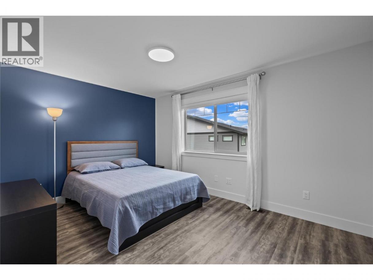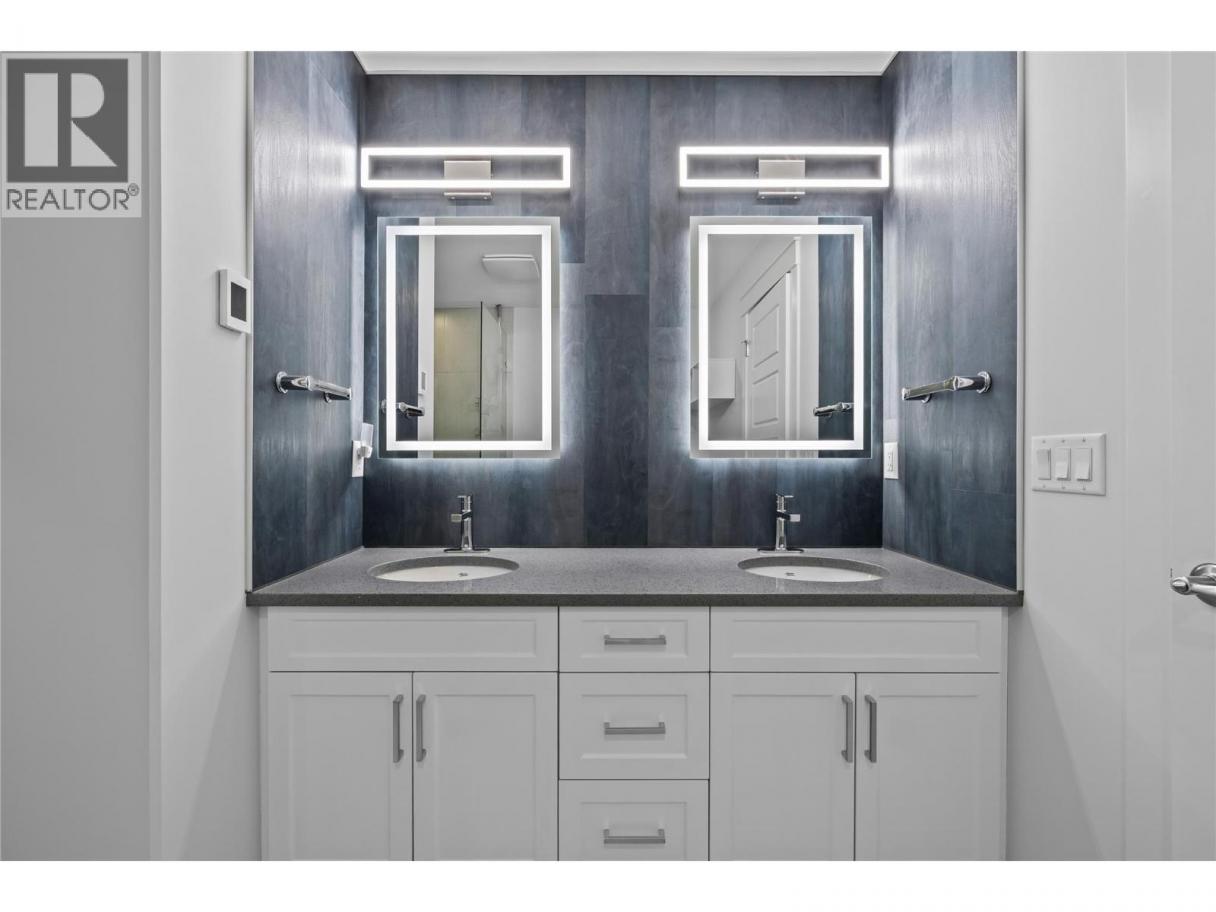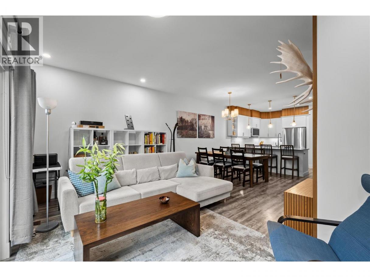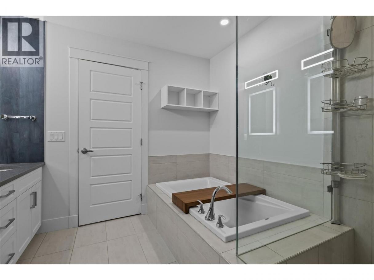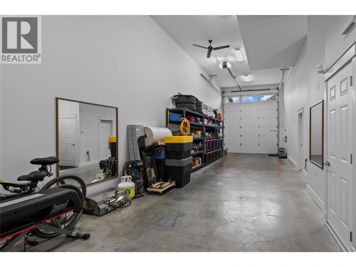 *OPEN HOUSE SUDAY APRIL 26, 11-1* NO PTT OR SPEC TAX-Introducing Townhomes for Toys, a welcoming 3 bed/4 bath home that pairs an expansive RV-SIZED GARAGE with comfortable, everyday living. The lower lever features a 47 ft garage with 14’ ceilings, RV plug and sani dump, thickened slab and wiring ran to be vehicle lift ready, cabinetry & shelving, commercial grade ceiling fans for airflow, glass panel in the garage door for natural light and an additional half bath with s/s wash basin. An ELEVATOR provides direct access to every floor, ideal for loading heavy gear, moving large items and improving accessibility. The main level seamlessly connects the kitchen, living & dining areas for easy entertaining. Quartz counters, a large sink with spray faucet, high-end stainless appliances and a gas range accentuate the kitchen including a newly installed wall of cabinetry with a wine fridge. The dining area flows into a living room warmed by a gas fireplace set in a beautiful surround with built-in floating shelves. Windows flanking the patio door bring abundant natural light and open to an oversized balcony overlooking mature green space. Just off the living room is a convenient bedroom and a four-piece bath. Upstairs the primary suite feels generous and peaceful with a five-piece ensuite that includes a deep soaker tub, frameless glass shower, dual vanities and a large walk-in closet. Another large bedroom is situated on the opposite side of the primary room. Laundry with front-loading machines, a counter and storage adds everyday functionality. There have been many tasteful upgrades throughout the home, and beautiful attention to detail in feature finishings. Ideally located steps from shops, restaurants, Two Eagles Golf Course, wineries and Okanagan Lake, this home balances oversized vehicle capacity with relaxed, well appointed living. (id:6769)