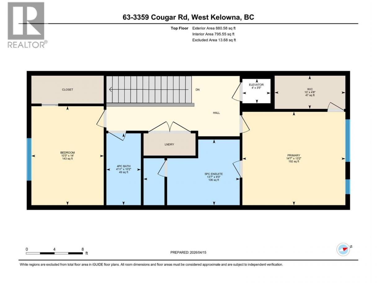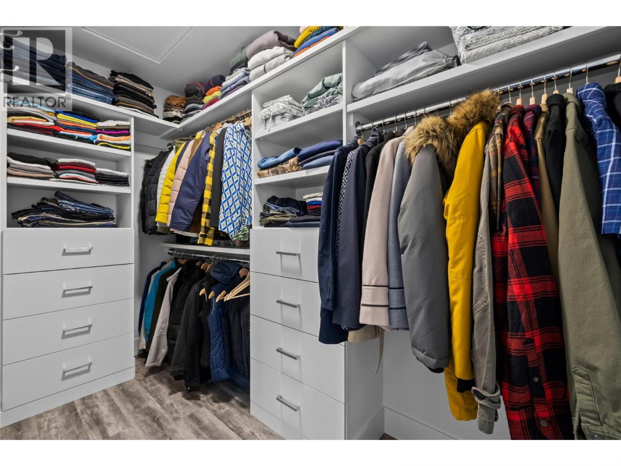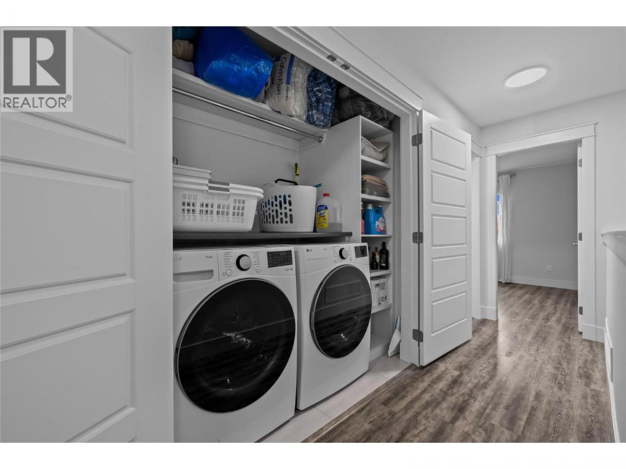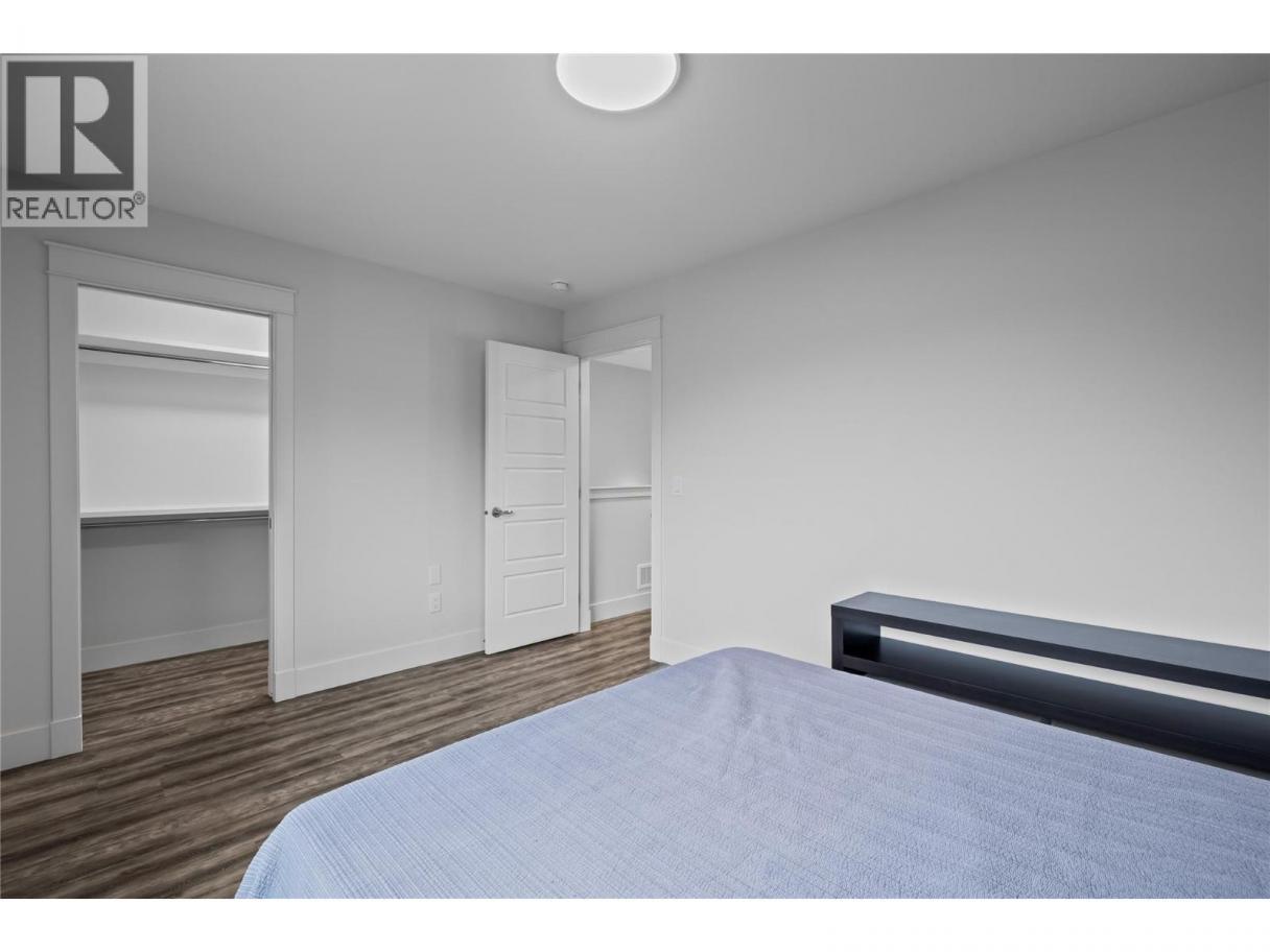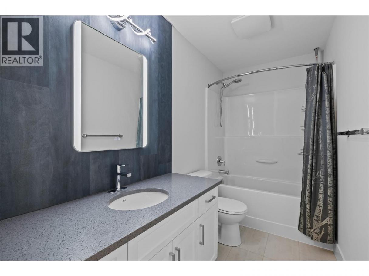 *OPEN HOUSE SUDAY APRIL 26, 11-1* NO PTT OR SPEC TAX-Introducing Townhomes for Toys, a welcoming 3 bed/4 bath home that pairs an expansive RV-SIZED GARAGE with comfortable, everyday living. The lower lever features a 47 ft garage with 14’ ceilings, RV plug and sani dump, thickened slab and wiring ran to be vehicle lift ready, cabinetry & shelving, commercial grade ceiling fans for airflow, glass panel in the garage door for natural light and an additional half bath with s/s wash basin. An ELEVATOR provides direct access to every floor, ideal for loading heavy gear, moving large items and improving accessibility. The main level seamlessly connects the kitchen, living & dining areas for easy entertaining. Quartz counters, a large sink with spray faucet, high-end stainless appliances and a gas range accentuate the kitchen including a newly installed wall of cabinetry with a wine fridge. The dining area flows into a living room warmed by a gas fireplace set in a beautiful surround with built-in floating shelves. Windows flanking the patio door bring abundant natural light and open to an oversized balcony overlooking mature green space. Just off the living room is a convenient bedroom and a four-piece bath. Upstairs the primary suite feels generous and peaceful with a five-piece ensuite that includes a deep soaker tub, frameless glass shower, dual vanities and a large walk-in closet. Another large bedroom is situated on the opposite side of the primary room. Laundry with front-loading machines, a counter and storage adds everyday functionality. There have been many tasteful upgrades throughout the home, and beautiful attention to detail in feature finishings. Ideally located steps from shops, restaurants, Two Eagles Golf Course, wineries and Okanagan Lake, this home balances oversized vehicle capacity with relaxed, well appointed living. (id:6769)