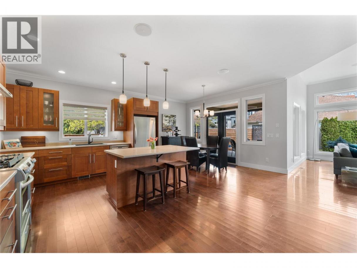 Welcome to 614 Armour Crescent, a meticulously maintained 3 bedroom, 2 bathroom single level rancher nestled in the heart of the highly sought after Lower Mission. This home perfectly captures the Okanagan lifestyle, offering incredible walkability to nearby beaches, schools, parks, and everyday conveniences, making it an ideal fit for families, downsizers, or anyone looking to enjoy a vibrant yet relaxed community. From the moment you arrive, the pride of ownership is evident. Inside, you are welcomed by a bright and thoughtfully designed layout that blends comfort and functionality. The stunning chef’s kitchen is a true highlight, featuring high end wood cabinetry, stainless steel appliances, and a servery that provides additional storage, prep space, and seamless support for entertaining. The open concept design flows effortlessly into the dining and living areas, creating a warm and inviting space perfect for hosting gatherings or enjoying quiet evenings at home. Large windows fill the living spaces with natural light and enhance the connection between indoors and out. Step directly onto your covered patio, an extension of the main living area, perfect for summer barbecues or relaxing with a morning coffee. The backyard is private, fully fenced, and thoughtfully designed for low maintenance, allowing you to spend more time enjoying the Okanagan sunshine and less time on upkeep. The primary bedroom offers a peaceful retreat, with an ensuite and walk in closet, while two additional bedrooms provide flexibility for guests, a home office, or growing families. Both bathrooms offer a functional design that makes daily living easy and comfortable. Located in one of Kelowna’s most desirable neighbourhoods, this property offers not just a home, but a lifestyle. With easy access to daily necessities and some of the city's best beaches, 614 Armour Crescent is truly an Okanagan dream and a rare opportunity you won’t want to miss. (id:6769)
