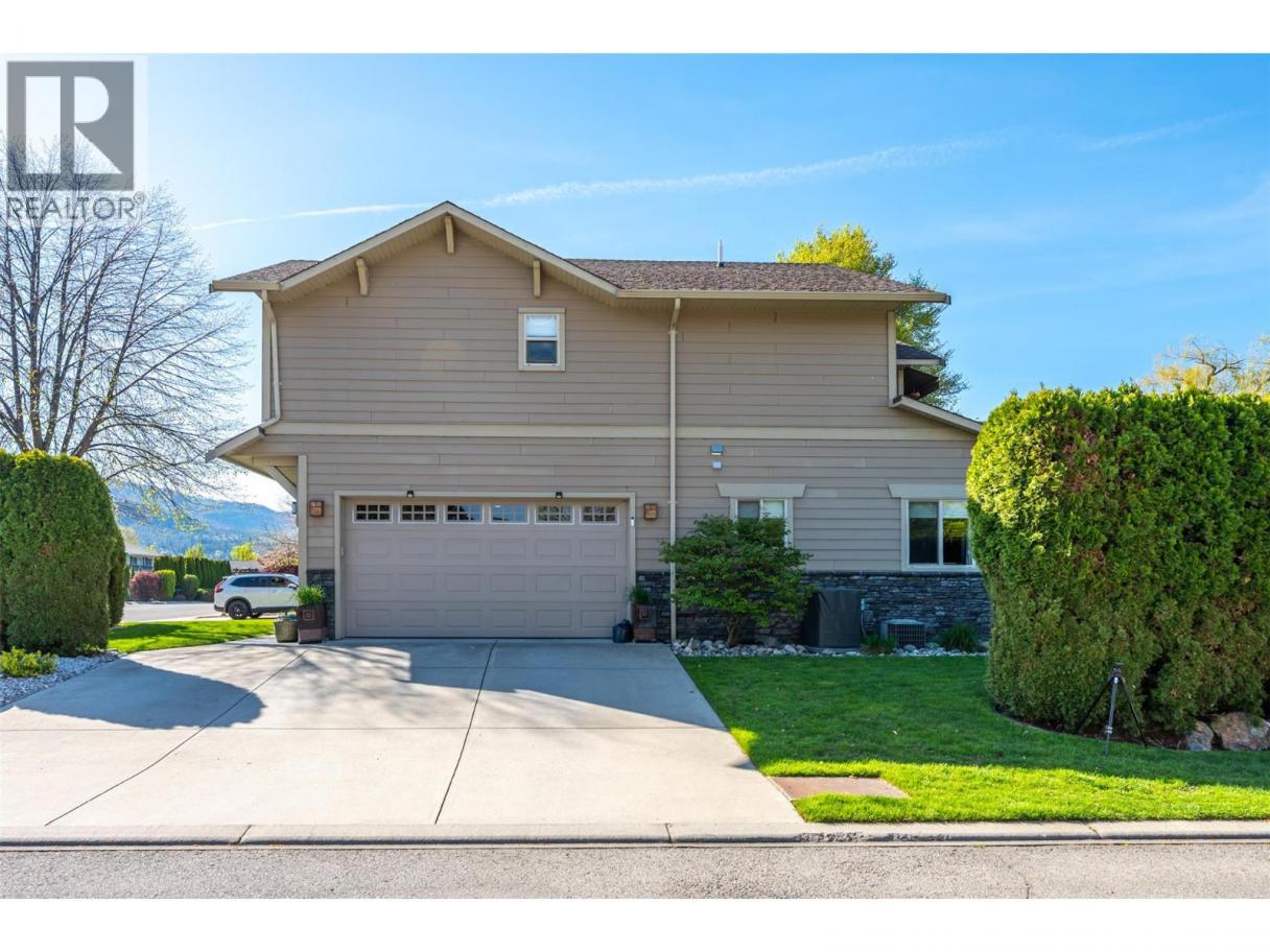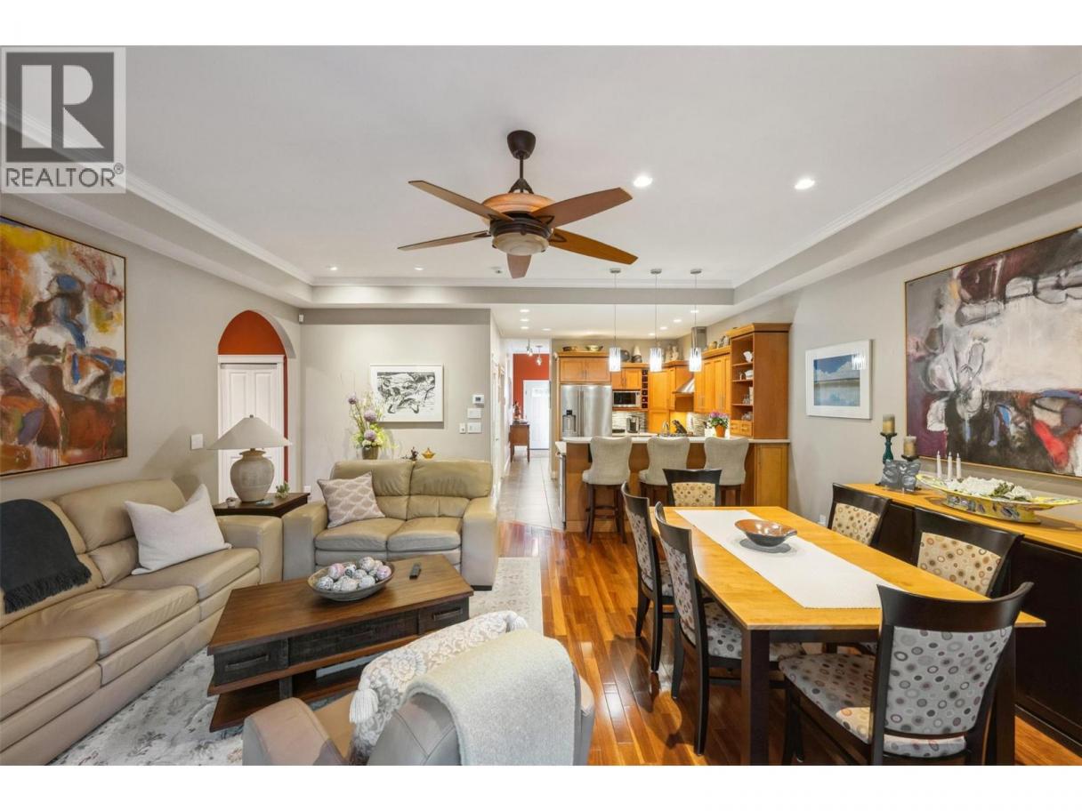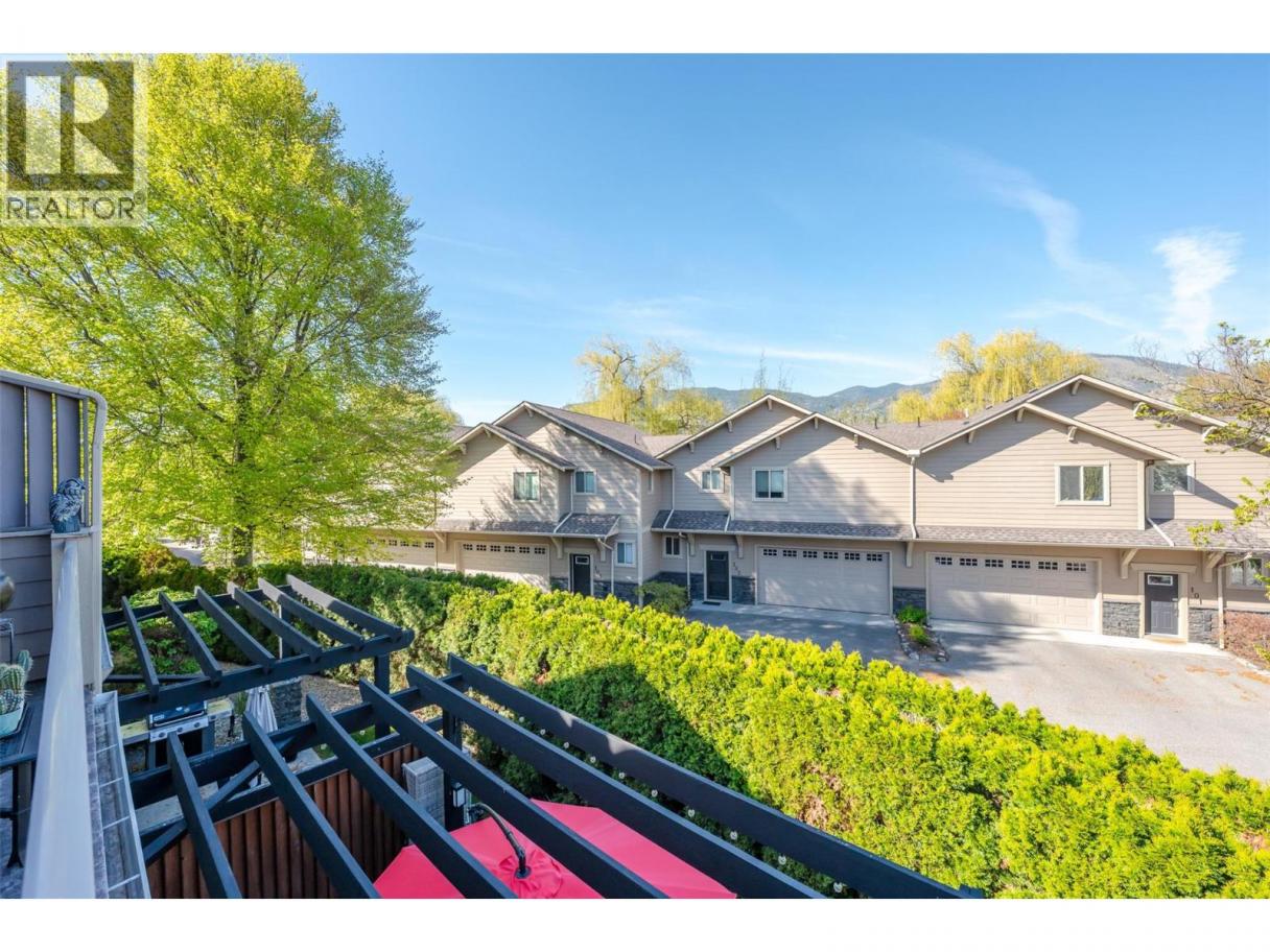 Immaculate 3 bedroom, 3 bath townhouse located in The Oxbow. Great floorplan with open Kitchen to dining room and living room great for entertaining. Large patio doors for extra light going onto a very spacious patio. Many features in this home that include hardwood floors, stainless steel appliances, new gas stove and fridge, large pantry, double garage with custom cabinets with 3 driveway parking stalls, private patio, and 282sqft upper deck with custom automatic awning with wind controls. Some of the many upgrades include new motorized blinds, phantom screens to both the patio and deck, built-in newer wine fridge in the kitchen, quartz counter tops, custom kitchen cabinets and raised bar, custom wet-bar in the family room, surround-sound system, custom Murphy Bed and built-in desk in the second bedroom. This end unit is very private that is surrounded by trees for added privacy when sitting on your large deck. It also offers a large usable outdoor space being on the corner lot. Great location close to shopping, schools, Skaha beach and restaurants. No age restrictions and pets are allowed. (id:6769)