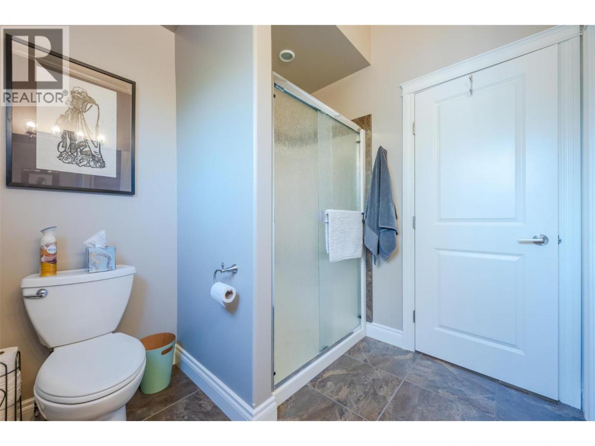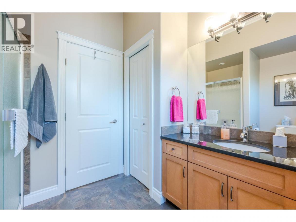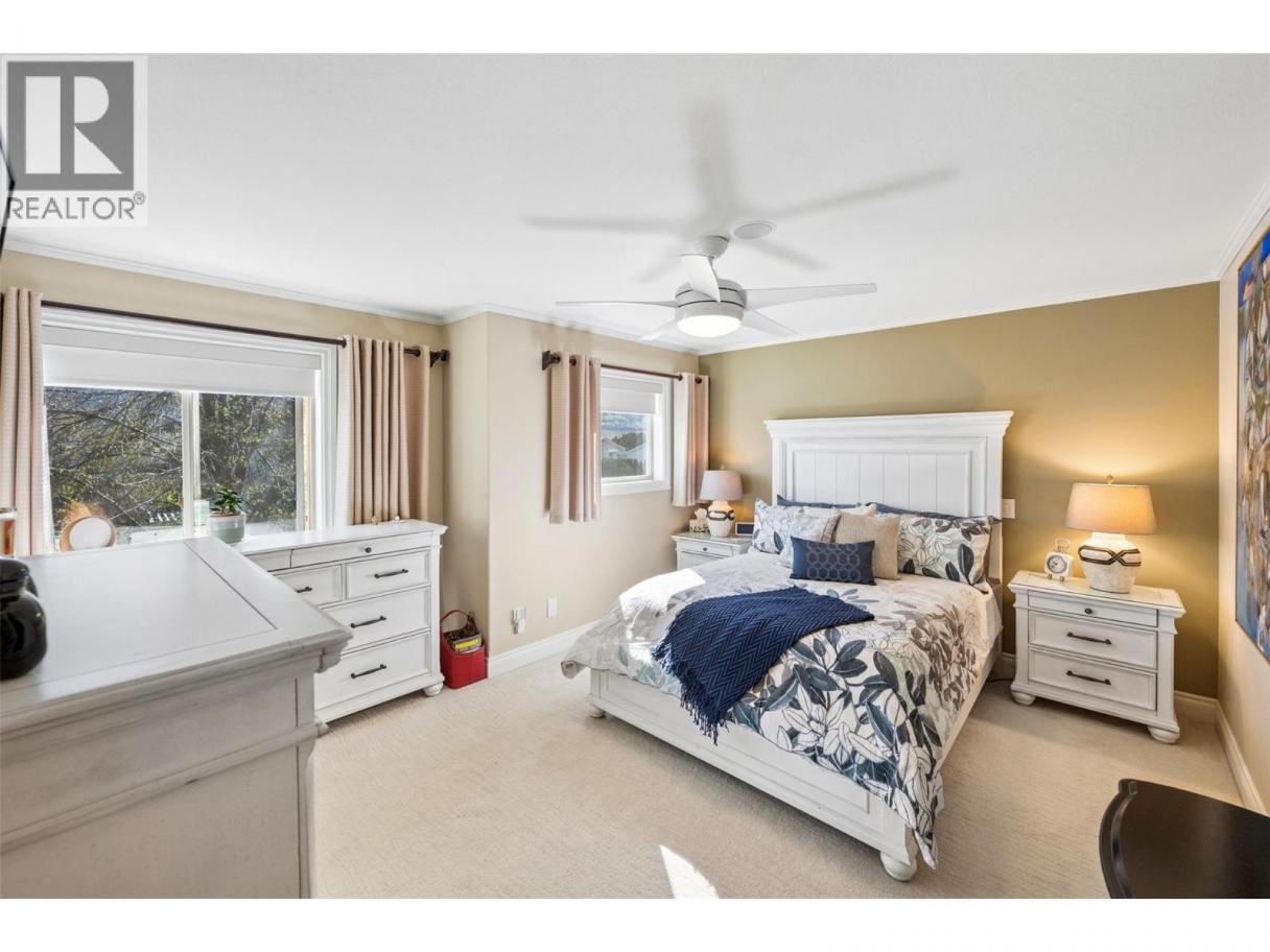 Immaculate 3 bedroom, 3 bath townhouse located in The Oxbow. Great floorplan with open Kitchen to dining room and living room great for entertaining. Large patio doors for extra light going onto a very spacious patio. Many features in this home that include hardwood floors, stainless steel appliances, new gas stove and fridge, large pantry, double garage with custom cabinets with 3 driveway parking stalls, private patio, and 282sqft upper deck with custom automatic awning with wind controls. Some of the many upgrades include new motorized blinds, phantom screens to both the patio and deck, built-in newer wine fridge in the kitchen, quartz counter tops, custom kitchen cabinets and raised bar, custom wet-bar in the family room, surround-sound system, custom Murphy Bed and built-in desk in the second bedroom. This end unit is very private that is surrounded by trees for added privacy when sitting on your large deck. It also offers a large usable outdoor space being on the corner lot. Great location close to shopping, schools, Skaha beach and restaurants. No age restrictions and pets are allowed. (id:6769)
