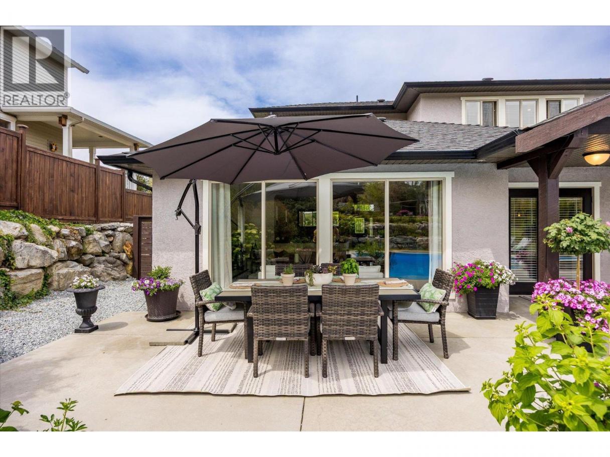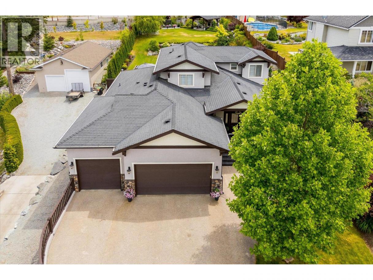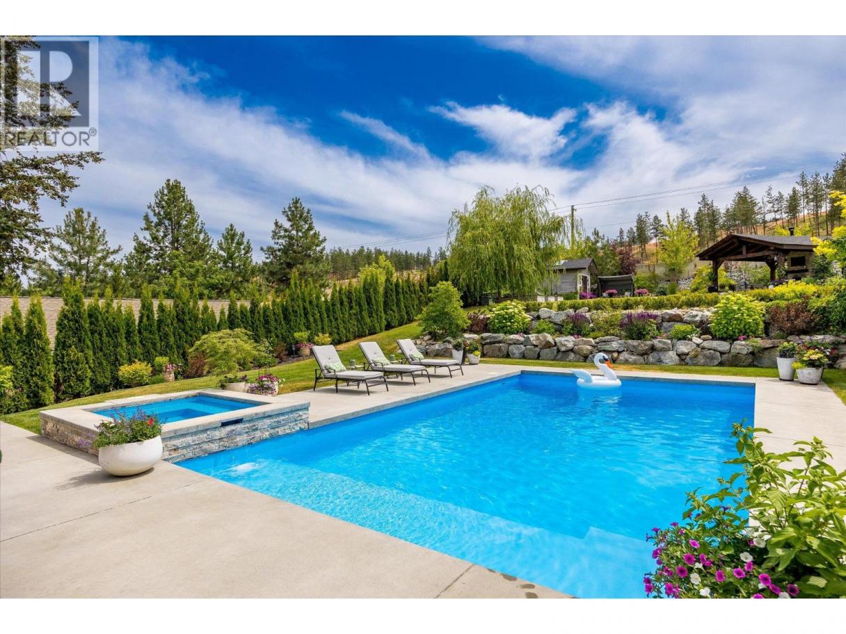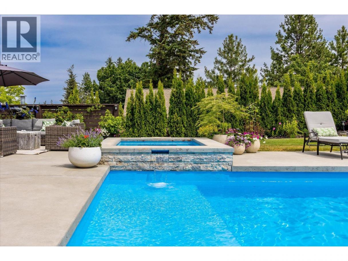 Welcome to your private oasis in coveted Crawford Estates. This stunning custom built executive home sits on a beautifully landscaped 0.49 acre lot and offers the ideal blend of luxury, privacy, and resort style living. Thoughtfully designed and tastefully updated, it features a bright, family-friendly layout with open yet intentional flow between the kitchen, dining, and living areas flooded with natural light and showcasing picturesque views of the glistening pool. The main floor boasts a luxurious primary retreat with travertine ensuite, steam shower, and direct hot tub access for a spa-like experience, plus a dedicated office ideal for remote work or quiet study. Two spacious bedrooms and a shared bath are upstairs, while the fully finished basement, with its own entrance, includes a fourth bedroom and entertainer’s dream: wet bar, wine room, massive family room, and a dedicated media room for movie nights and hosting. Step outside to an outdoor paradise with an oversized pool, hot tub, pergola with firepit and TV, gardens, shed, and multiple lounge areas. A 3 car garage, RV/boat parking, and backyard access from the driveway provide room for all your toys. Located near hiking trails, vineyards, orchards, golf, top-rated schools (Canyon Falls & OKM), and the new Ponds Shopping Plaza. Priced well below replacement cost, this luxurious, move-in-ready home is the one for unforgettable indoor-outdoor living and entertaining! (id:6769)