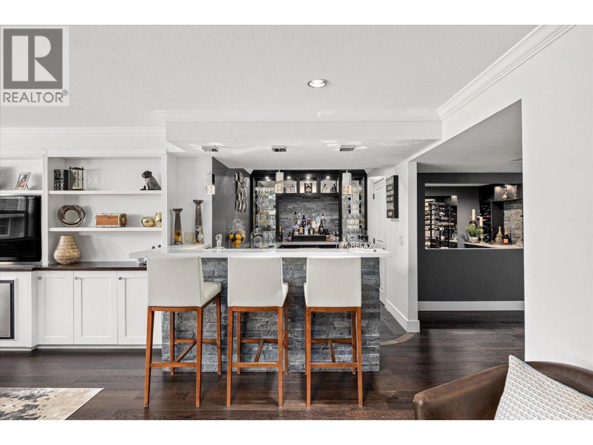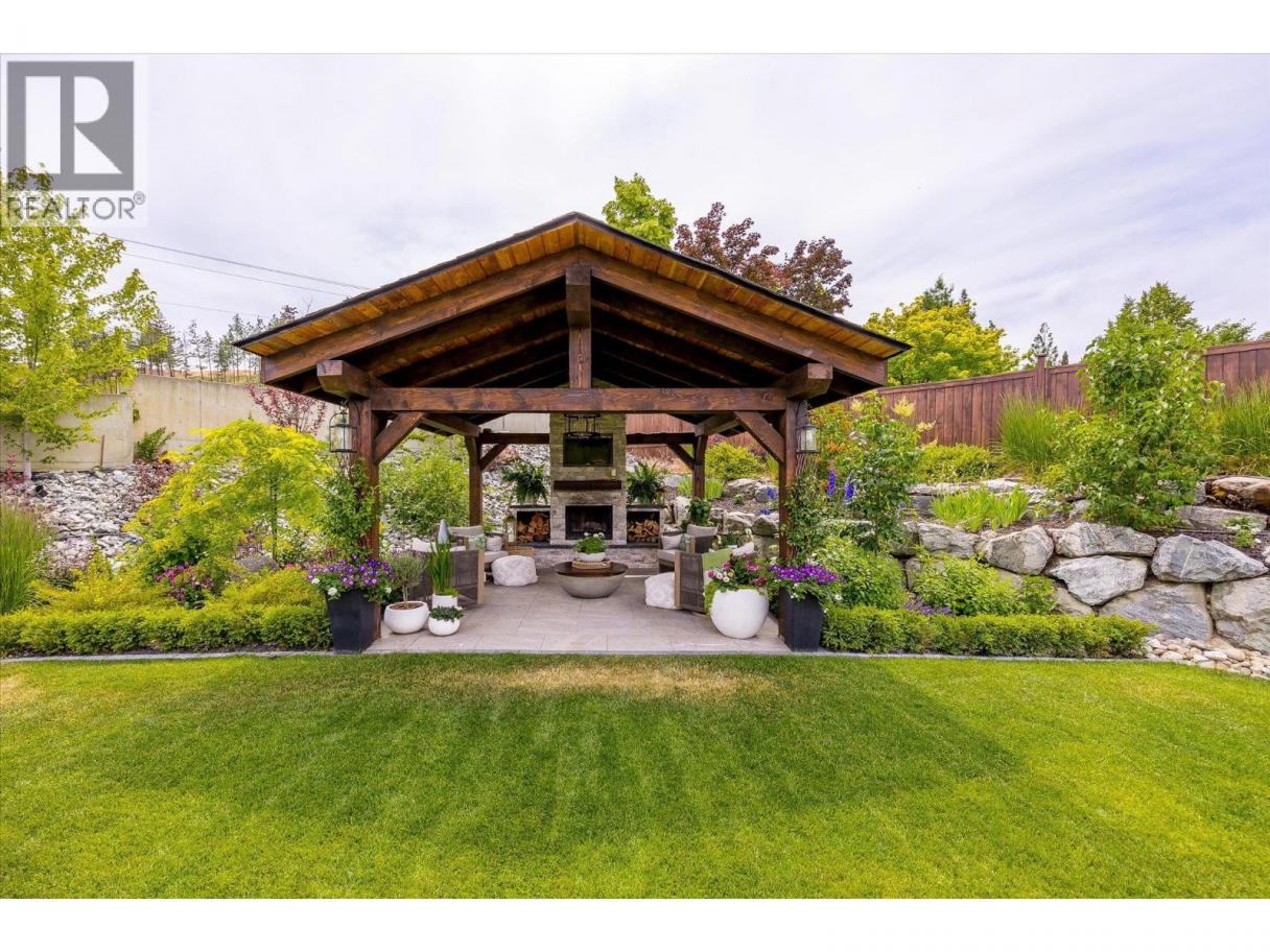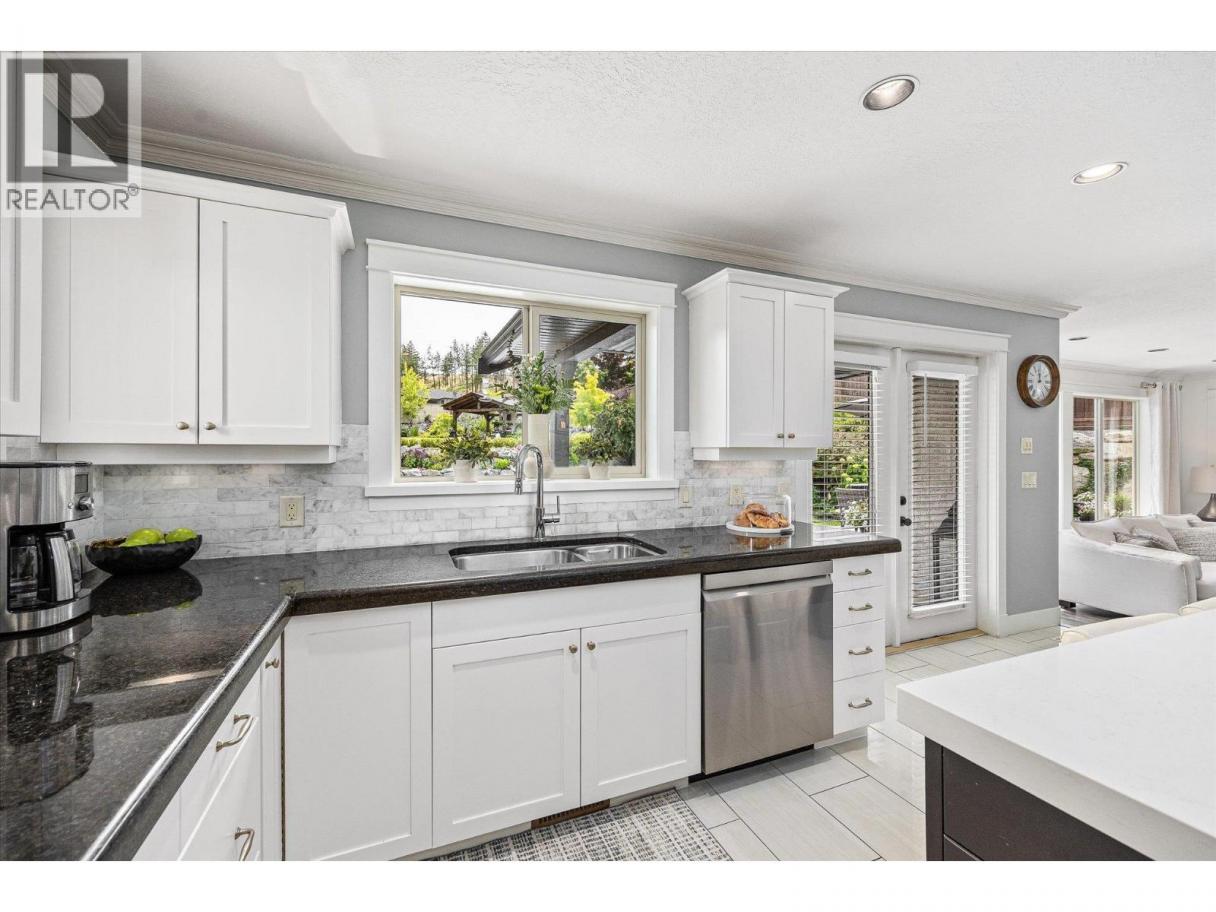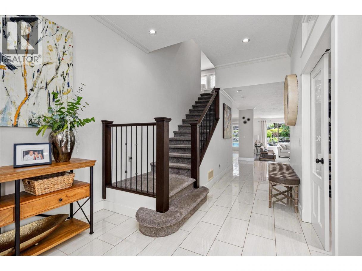 Welcome to your private oasis in coveted Crawford Estates. This stunning custom built executive home sits on a beautifully landscaped 0.49 acre lot and offers the ideal blend of luxury, privacy, and resort style living. Thoughtfully designed and tastefully updated, it features a bright, family-friendly layout with open yet intentional flow between the kitchen, dining, and living areas flooded with natural light and showcasing picturesque views of the glistening pool. The main floor boasts a luxurious primary retreat with travertine ensuite, steam shower, and direct hot tub access for a spa-like experience, plus a dedicated office ideal for remote work or quiet study. Two spacious bedrooms and a shared bath are upstairs, while the fully finished basement, with its own entrance, includes a fourth bedroom and entertainer’s dream: wet bar, wine room, massive family room, and a dedicated media room for movie nights and hosting. Step outside to an outdoor paradise with an oversized pool, hot tub, pergola with firepit and TV, gardens, shed, and multiple lounge areas. A 3 car garage, RV/boat parking, and backyard access from the driveway provide room for all your toys. Located near hiking trails, vineyards, orchards, golf, top-rated schools (Canyon Falls & OKM), and the new Ponds Shopping Plaza. Priced well below replacement cost, this luxurious, move-in-ready home is the one for unforgettable indoor-outdoor living and entertaining! (id:6769)