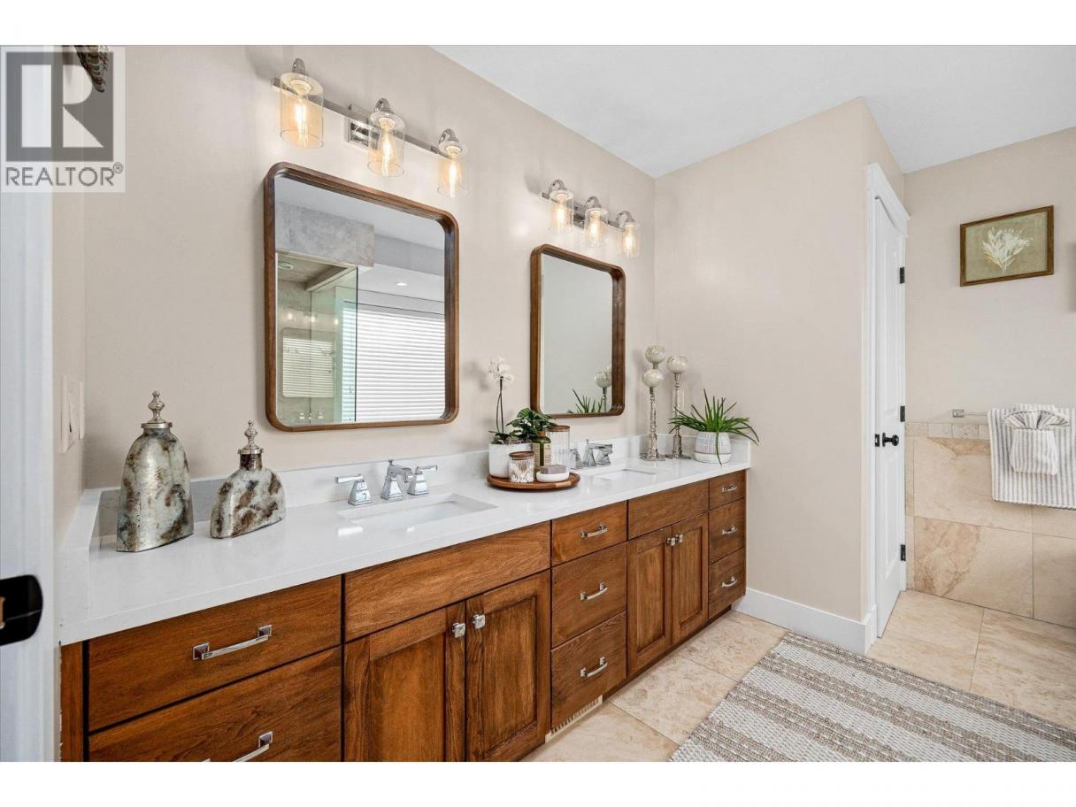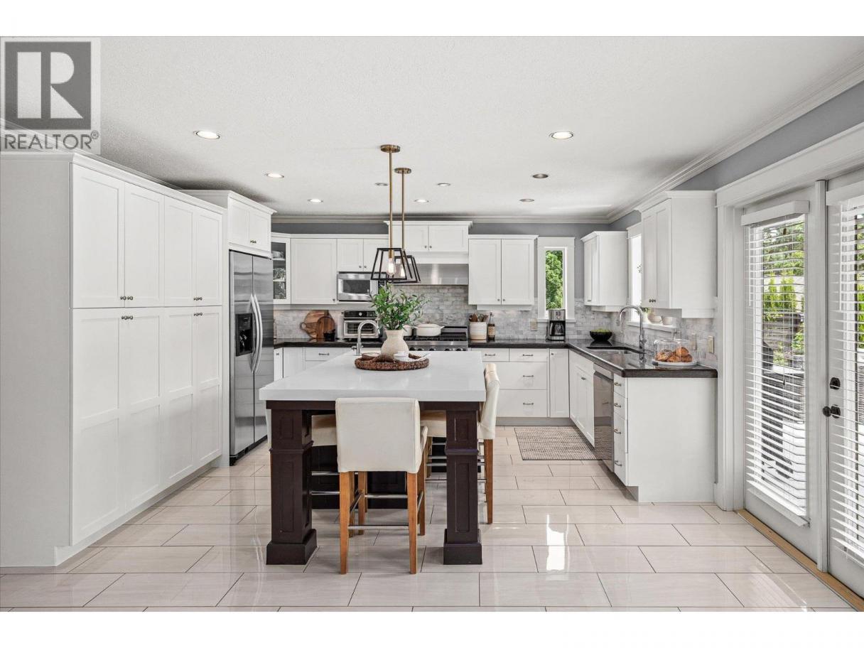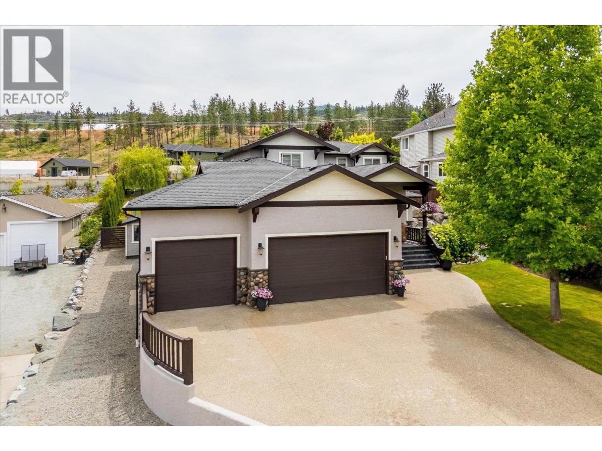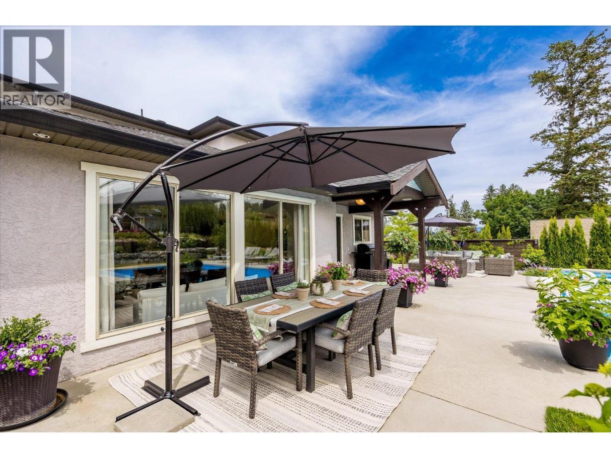 Welcome to your private oasis in coveted Crawford Estates. This stunning custom built executive home sits on a beautifully landscaped 0.49 acre lot and offers the ideal blend of luxury, privacy, and resort style living. Thoughtfully designed and tastefully updated, it features a bright, family-friendly layout with open yet intentional flow between the kitchen, dining, and living areas flooded with natural light and showcasing picturesque views of the glistening pool. The main floor boasts a luxurious primary retreat with travertine ensuite, steam shower, and direct hot tub access for a spa-like experience, plus a dedicated office ideal for remote work or quiet study. Two spacious bedrooms and a shared bath are upstairs, while the fully finished basement, with its own entrance, includes a fourth bedroom and entertainer’s dream: wet bar, wine room, massive family room, and a dedicated media room for movie nights and hosting. Step outside to an outdoor paradise with an oversized pool, hot tub, pergola with firepit and TV, gardens, shed, and multiple lounge areas. A 3 car garage, RV/boat parking, and backyard access from the driveway provide room for all your toys. Located near hiking trails, vineyards, orchards, golf, top-rated schools (Canyon Falls & OKM), and the new Ponds Shopping Plaza. Priced well below replacement cost, this luxurious, move-in-ready home is the one for unforgettable indoor-outdoor living and entertaining! (id:6769)