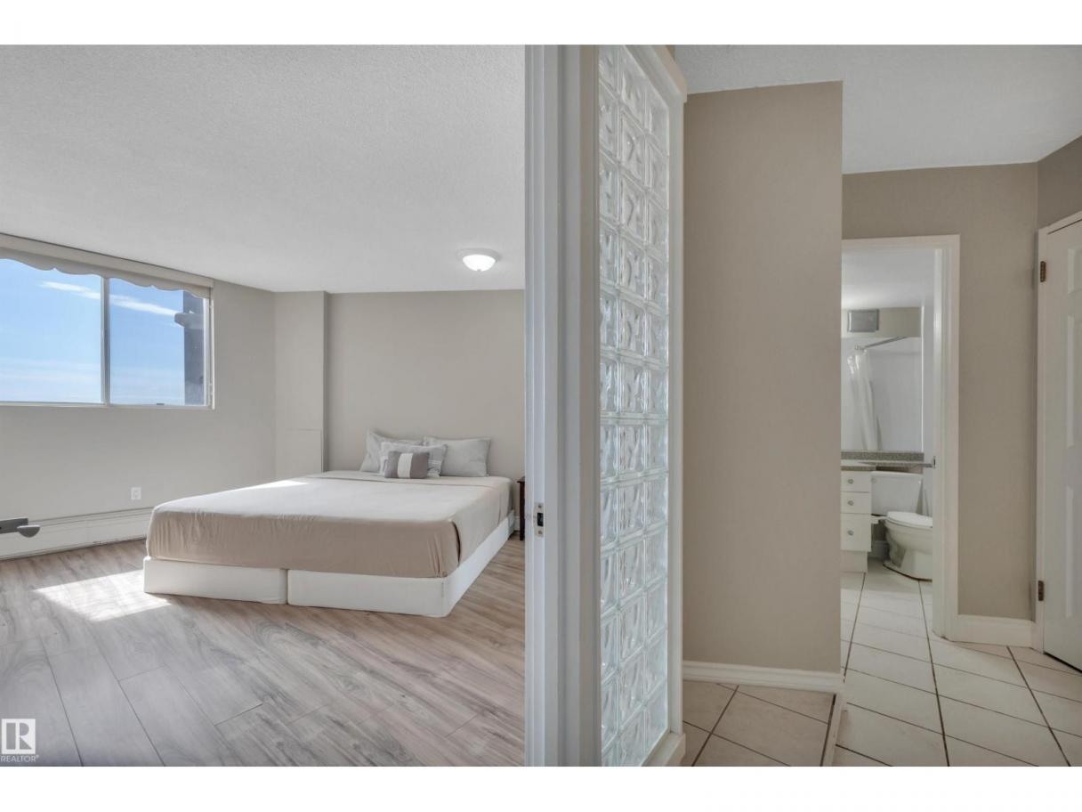 Stunning 14th-floor condo with breathtaking downtown skyline and river valley views from your south facing balcony. Located in soughtafter Glenora, just minutes to downtown and steps to The West Block’s shops, dining, and amenities. Future LRT only a 2-minute walk adds exceptional value. This lovely 1-bedroom features a spacious open-concept living and dining area, kitchen, and a large primary bedroom. Condo fees include electricity, heat, water, and access to a saltwater pool, fitness centre, and social room. Concrete construction ensures quiet living, with overnight security and on-site staff. Steps to Mackinnon Ravine and river valley trails. Pet-friendly. Heated underground parking available for a fee. (id:6769)