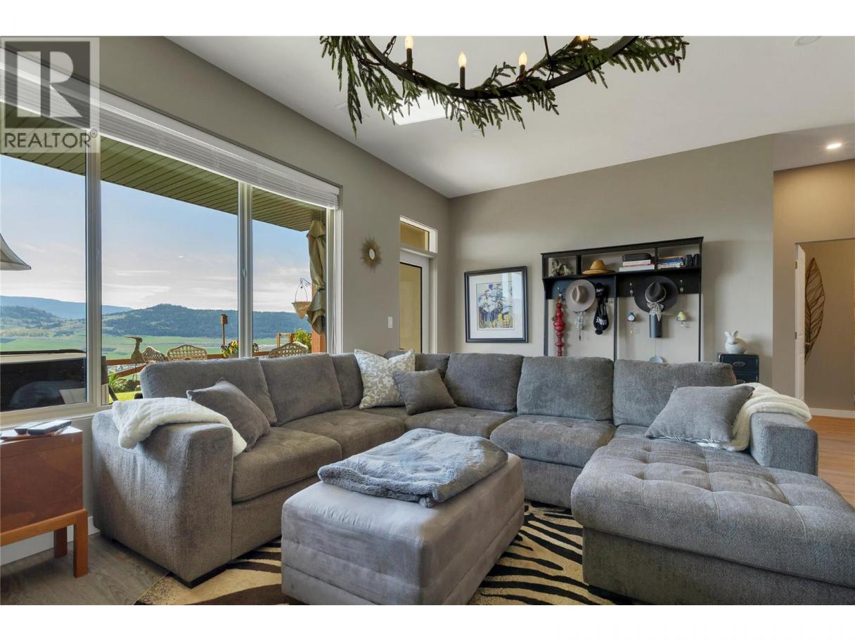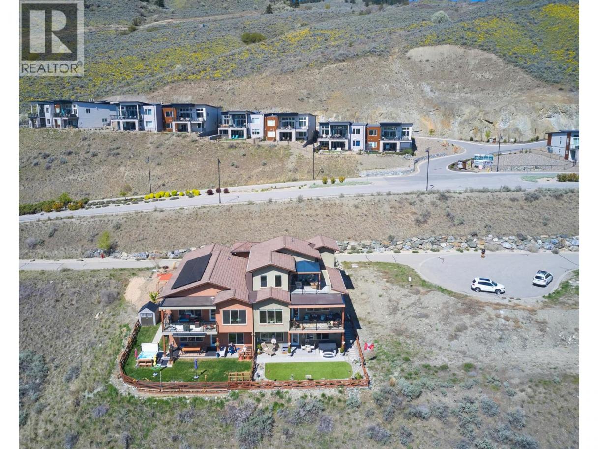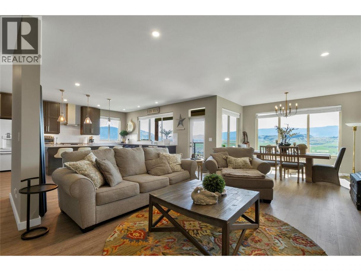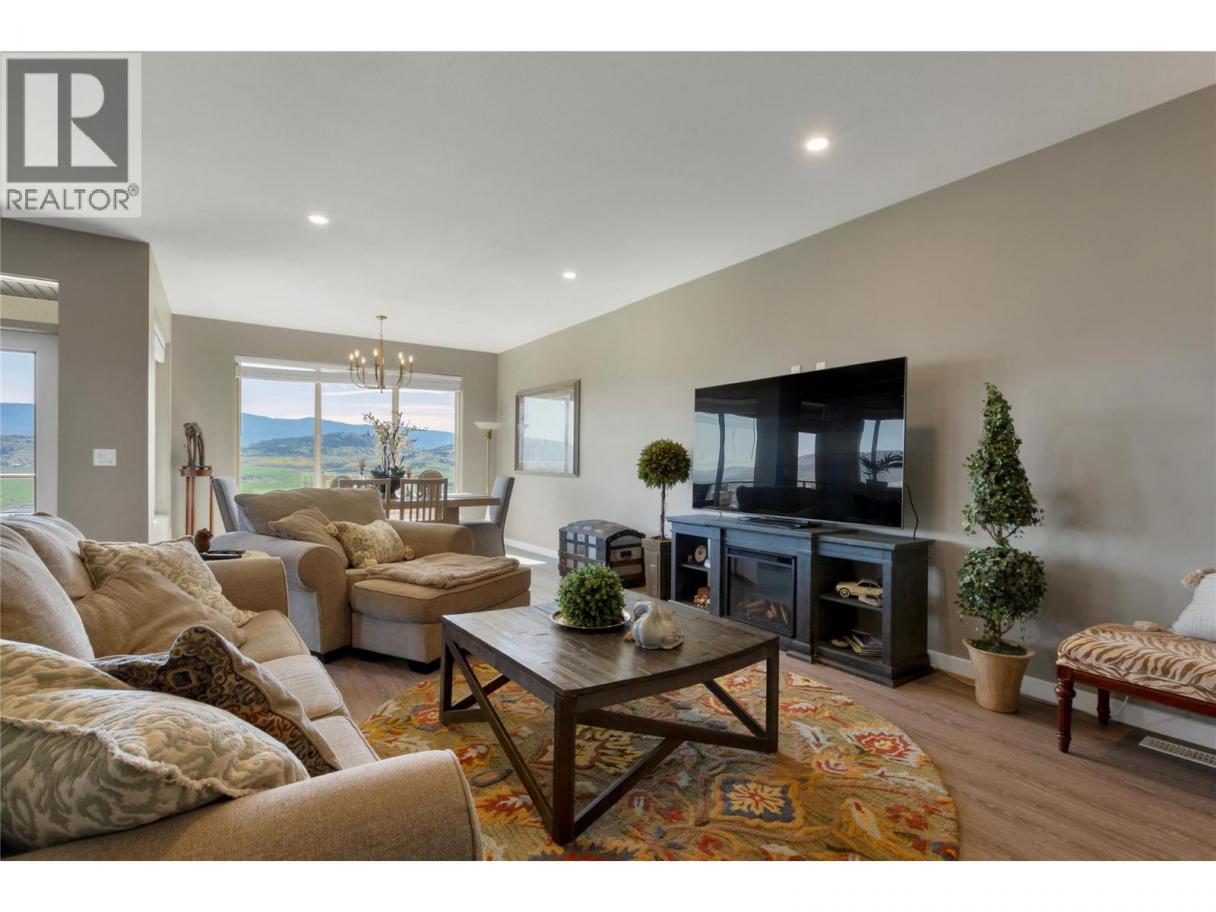 Welcome to your Okanagan dream home, perfectly positioned to capture breathtaking panoramic lake, valley, and city views. This beautifully finished 3-bedroom, 3-bath residence offers a seamless blend of luxury, comfort, and low-maintenance living in one of Vernon’s most desirable hillside communities. The bright, open-concept main level features a stunning kitchen with quartz counter tops, high-end matte white appliances, a large island for entertaining, and expansive windows framing the views. Step out to the deck—perfect for morning coffee or evening sunsets. You'll love the spacious living room and dining room for relaxing in after a full day of Okanagan activities. Upstairs, the primary retreat offers a private escape with a spa-like ensuite and its own patio. The lower level is built for entertaining, with a large family room, 2 bedrms and complete with a media room wired for Dolby surround sound and a wet bar with stainless appliances, including dishwasher. Walk out to your backyard oasis featuring a newer Jacuzzi hot tub and professionally landscaped, low-maintenance yard. Additional highlights include a 6’ linear gas fireplace, quartz counters throughout, luxury tile flooring on all levels, and a 12’ x 12’ sunshade on the primary patio. Located in a sought-after hillside community offering an 18-hole Fred Couples signature golf course, high-end dining, and year-round virtual golf—this is Okanagan living at its finest. (id:6769)