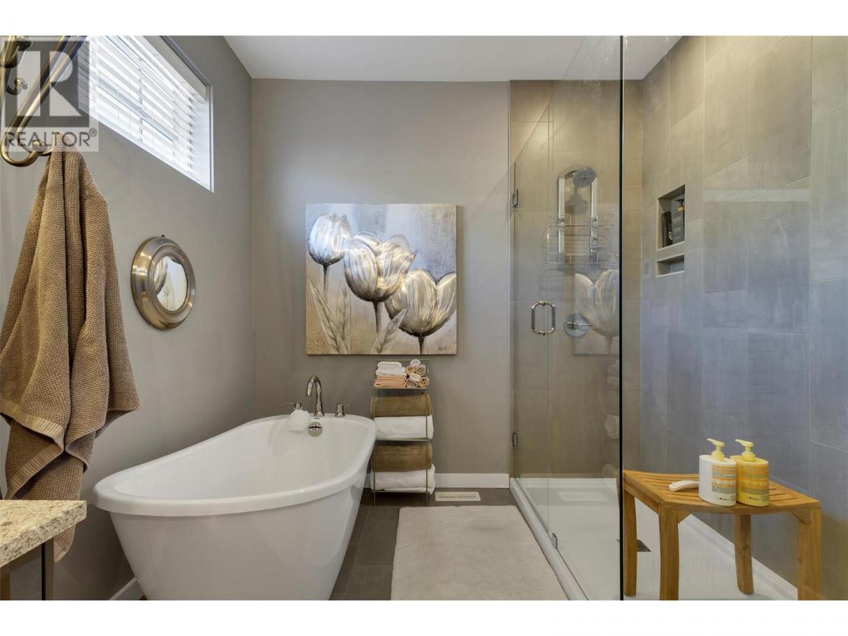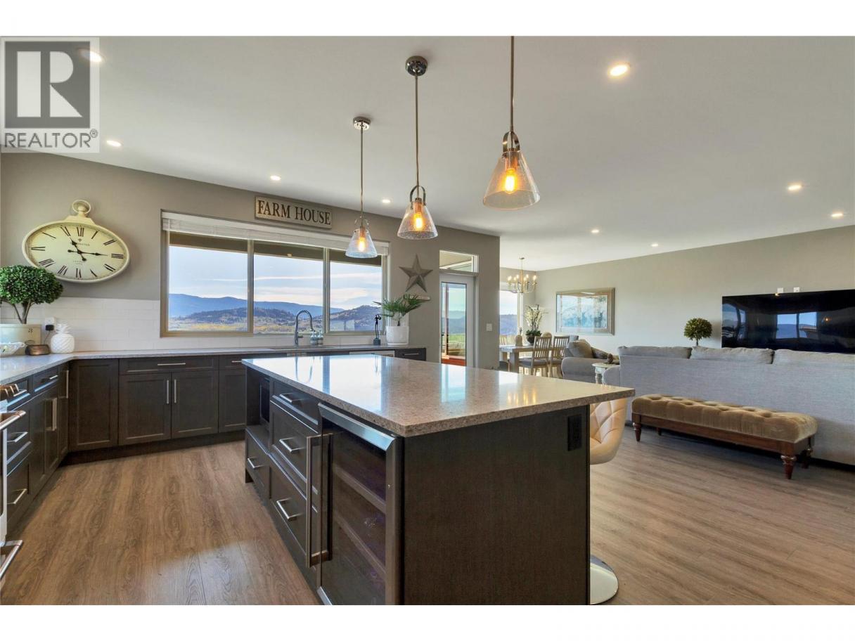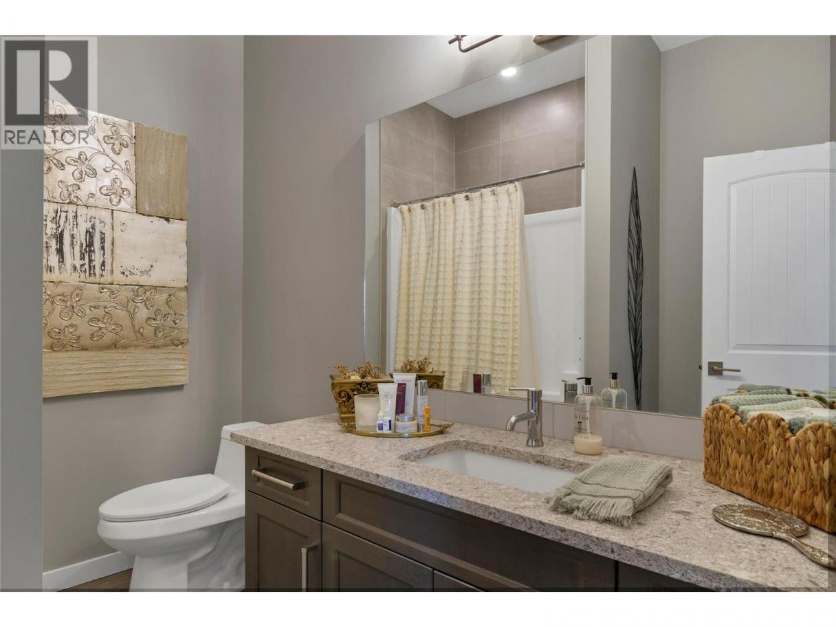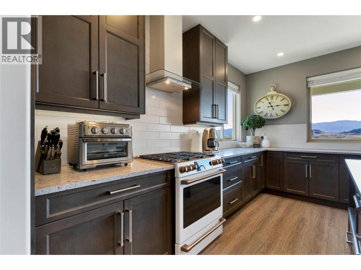 Welcome to your Okanagan dream home, perfectly positioned to capture breathtaking panoramic lake, valley, and city views. This beautifully finished 3-bedroom, 3-bath residence offers a seamless blend of luxury, comfort, and low-maintenance living in one of Vernon’s most desirable hillside communities. The bright, open-concept main level features a stunning kitchen with quartz counter tops, high-end matte white appliances, a large island for entertaining, and expansive windows framing the views. Step out to the deck—perfect for morning coffee or evening sunsets. You'll love the spacious living room and dining room for relaxing in after a full day of Okanagan activities. Upstairs, the primary retreat offers a private escape with a spa-like ensuite and its own patio. The lower level is built for entertaining, with a large family room, 2 bedrms and complete with a media room wired for Dolby surround sound and a wet bar with stainless appliances, including dishwasher. Walk out to your backyard oasis featuring a newer Jacuzzi hot tub and professionally landscaped, low-maintenance yard. Additional highlights include a 6’ linear gas fireplace, quartz counters throughout, luxury tile flooring on all levels, and a 12’ x 12’ sunshade on the primary patio. Located in a sought-after hillside community offering an 18-hole Fred Couples signature golf course, high-end dining, and year-round virtual golf—this is Okanagan living at its finest. (id:6769)