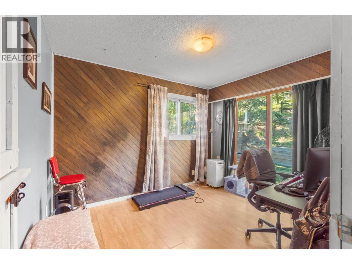 There is so much opportunity with this home! Enjoy views over the valley from the wall of windows in the living room, plus views out to the private back yard from the patio doors in the adjacent dining room. The kitchen has been opened up, offering plenty of cupboard space, a door to the back patio and the perfect corner for a breakfast nook or coffee station. This family home offers a large master bedroom with 2 closets & an extra storage cupboard for linen's or storage. The second bedroom is currently used as a home office and features sliding doors leading to the back yard making it lovely and bright. The main entrance landing has the the added bonus of a coat closet + opening transom style windows located above the door for maximum air flow. Downstairs you'll find a large family room with a 2nd wood burning fireplace, 2 generous bedrooms, 3 pce bath & central laundry room. Direct access from the carport leads into a well laid out practical storage area, making it an ideal second entrance. The private back yard is HUGE, completely fenced & brimming with possibilities! Enjoy as is from the deck & patio area, wind your way up the hill on the paths, and start making plans. There's plenty of space to make terraced garden beds for your vege's or flowers, to build an upper lawn or patio to enjoy the view & a separate fenced in area at the top of the lot. located on quiet Belair Drive, a short walk to RLC elementary & bus stops for both Highschool and the city bus. (id:6769)
