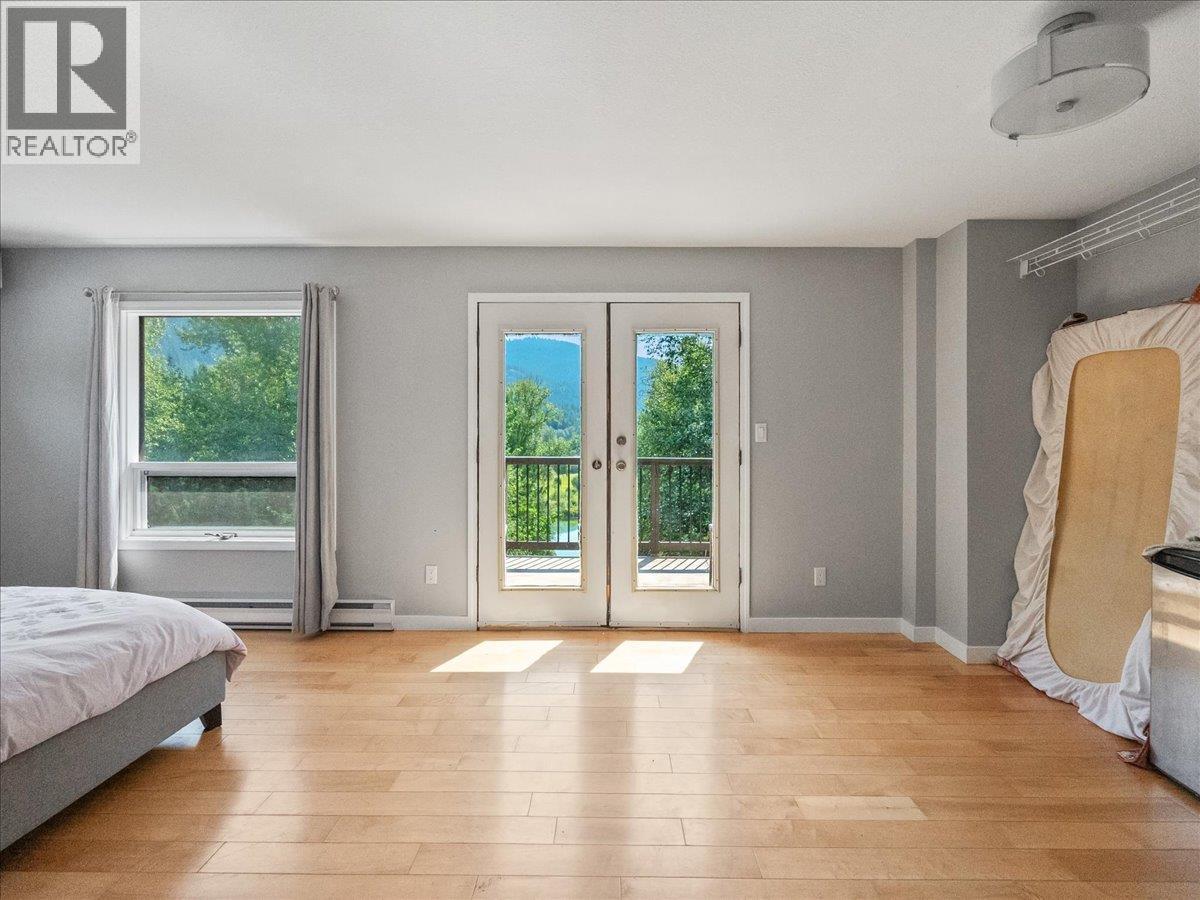 Experience the ultimate Kootenay lifestyle on over 5 picturesque acres with 300 feet of Slocan River frontage. This bright, open-concept home features 15' ceilings in the living/dining room and expansive floor-to-ceiling windows that flood the living space with natural light. The stunning master loft suite on the upper floor features an ensuite bathroom and a private balcony overlooking the water. Step outside to your private, partially wooded backyard where a gentle trail leads you directly to a private dock and the river's edge. The property is a hobbyist’s dream, featuring lush gardens, a chicken coop, and an attached garage with ample storage. Additionally, the walk-out in-law suite provides a perfect self-contained space for guests or rental income. This rare package perfectly blends mountain views, forest privacy, and waterfront living. (id:6769)