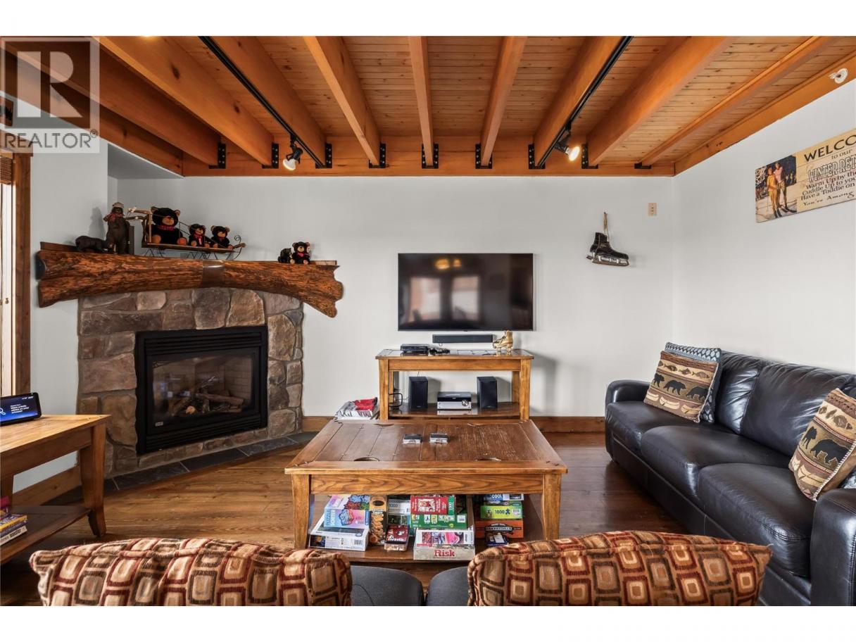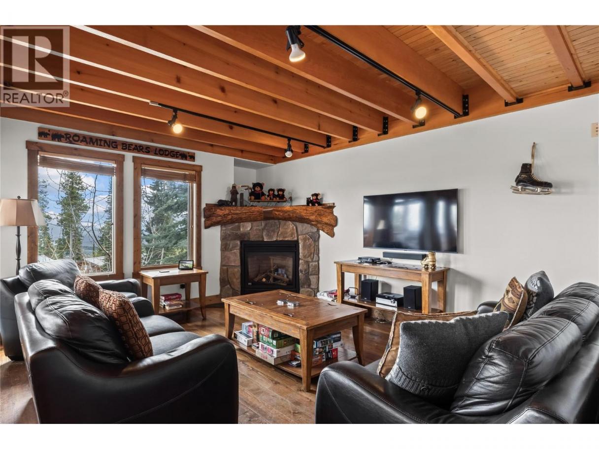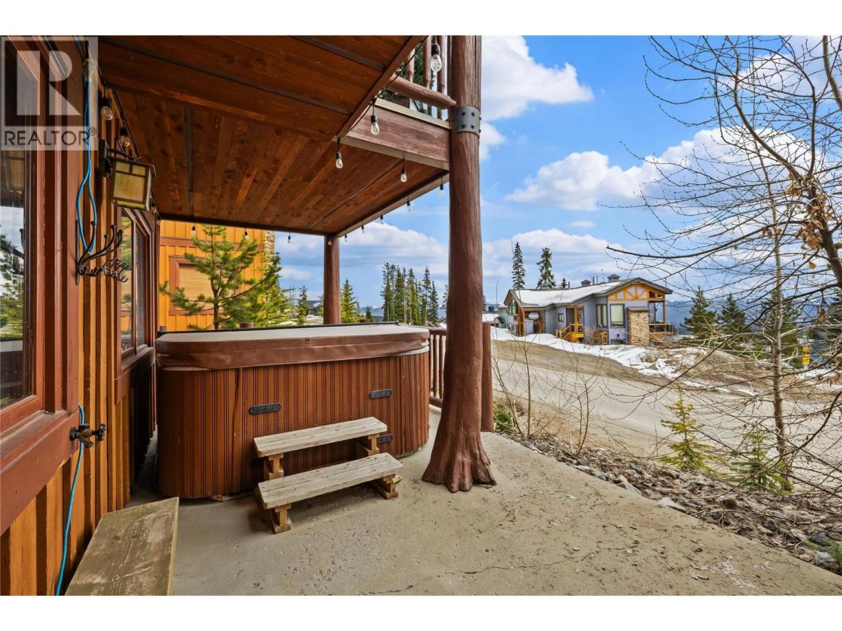 Experience true ski chalet living in this beautifully designed, fully turn-key three bedroom plus den with pull out couch and additional living space, three and a half bathroom ski chalet—where comfort, style, and effortless ski access come together to create magical rustic chic home. Private garage great for vehicles, toys, and mountain bike storage. Unmatched design for the entrance boot room with heated tile flooring, properly allocated for all your gear, plus a powder room. The main level opens into a stunning, light-filled living space where the kitchen, dining, and great room flow together perfectly, framed by breathtaking views and anchored by a grand fireplace. The wood and beam work throughout will take your breath away. Deck off main level perfect for spring break and summer BBQ. Upstairs, the primary suite is complete with a full ensuite, plus a spacious second bedroom designed for hosting, a versatile loft area, and an additional full bathroom. The lower level offers even more space to unwind, featuring a third bedroom, full bath, convenient laundry, generous storage, and a comfortable den ideal for guests or movie nights, all leading out to a private patio with a large hot tub—your own personal oasis after a day on the slopes. With seamless ski-in, ski-out access to the Plaza Chair, Ridge Rocket, and Snow Ghost, this property not only delivers the ultimate Big White lifestyle but also presents exceptional income potential, making it a smart and compelling investment in mountain living. (id:6769)
