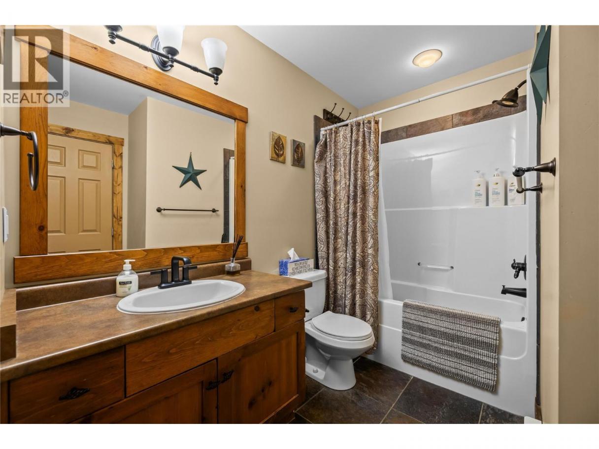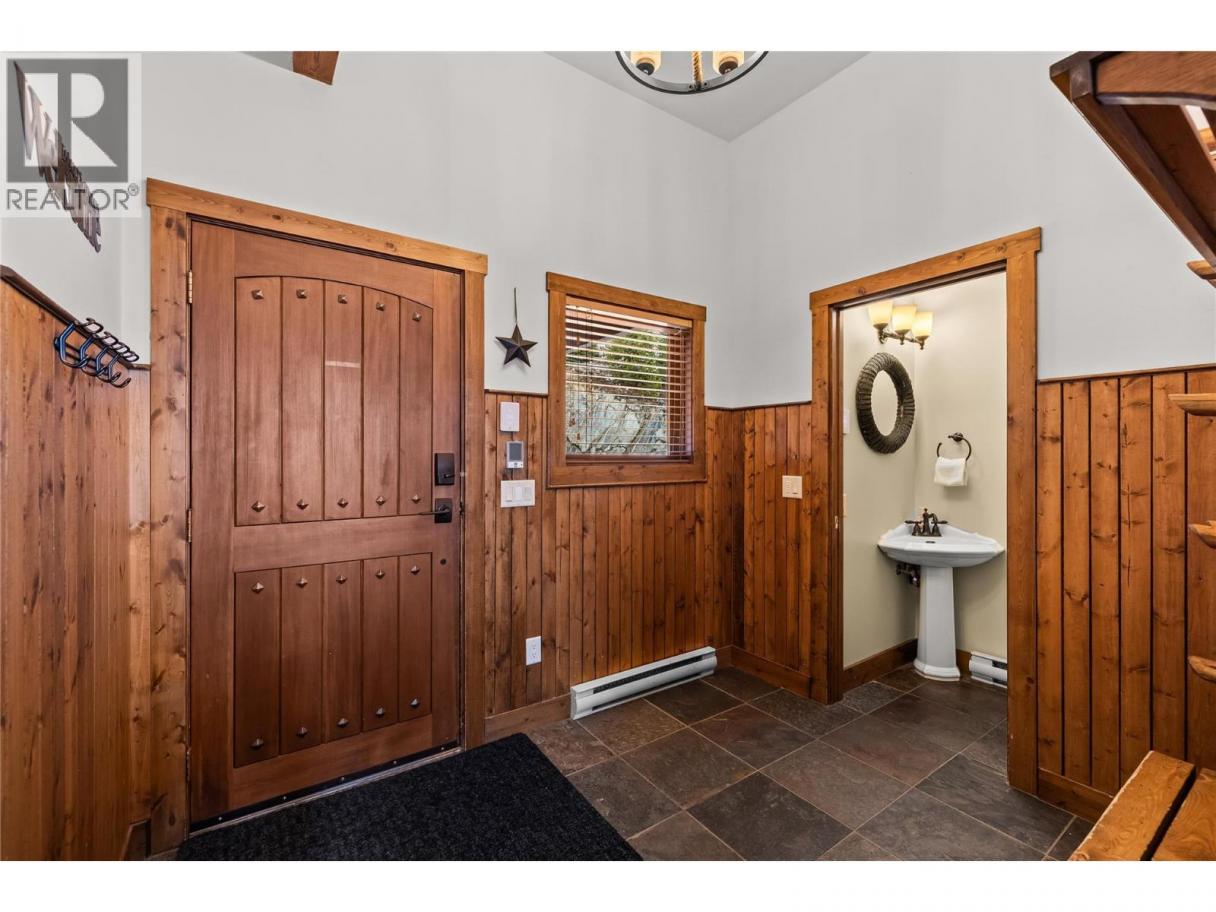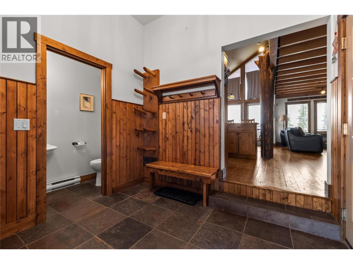 Experience true ski chalet living in this beautifully designed, fully turn-key three bedroom plus den with pull out couch and additional living space, three and a half bathroom ski chalet—where comfort, style, and effortless ski access come together to create magical rustic chic home. Private garage great for vehicles, toys, and mountain bike storage. Unmatched design for the entrance boot room with heated tile flooring, properly allocated for all your gear, plus a powder room. The main level opens into a stunning, light-filled living space where the kitchen, dining, and great room flow together perfectly, framed by breathtaking views and anchored by a grand fireplace. The wood and beam work throughout will take your breath away. Deck off main level perfect for spring break and summer BBQ. Upstairs, the primary suite is complete with a full ensuite, plus a spacious second bedroom designed for hosting, a versatile loft area, and an additional full bathroom. The lower level offers even more space to unwind, featuring a third bedroom, full bath, convenient laundry, generous storage, and a comfortable den ideal for guests or movie nights, all leading out to a private patio with a large hot tub—your own personal oasis after a day on the slopes. With seamless ski-in, ski-out access to the Plaza Chair, Ridge Rocket, and Snow Ghost, this property not only delivers the ultimate Big White lifestyle but also presents exceptional income potential, making it a smart and compelling investment in mountain living. (id:6769)