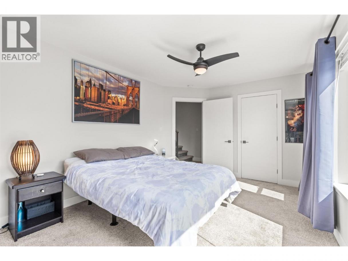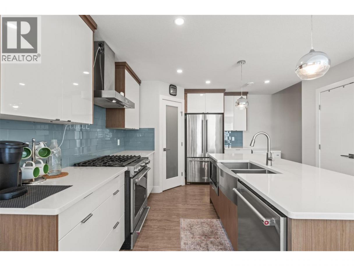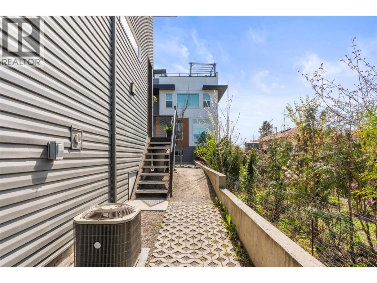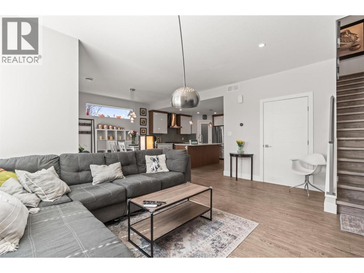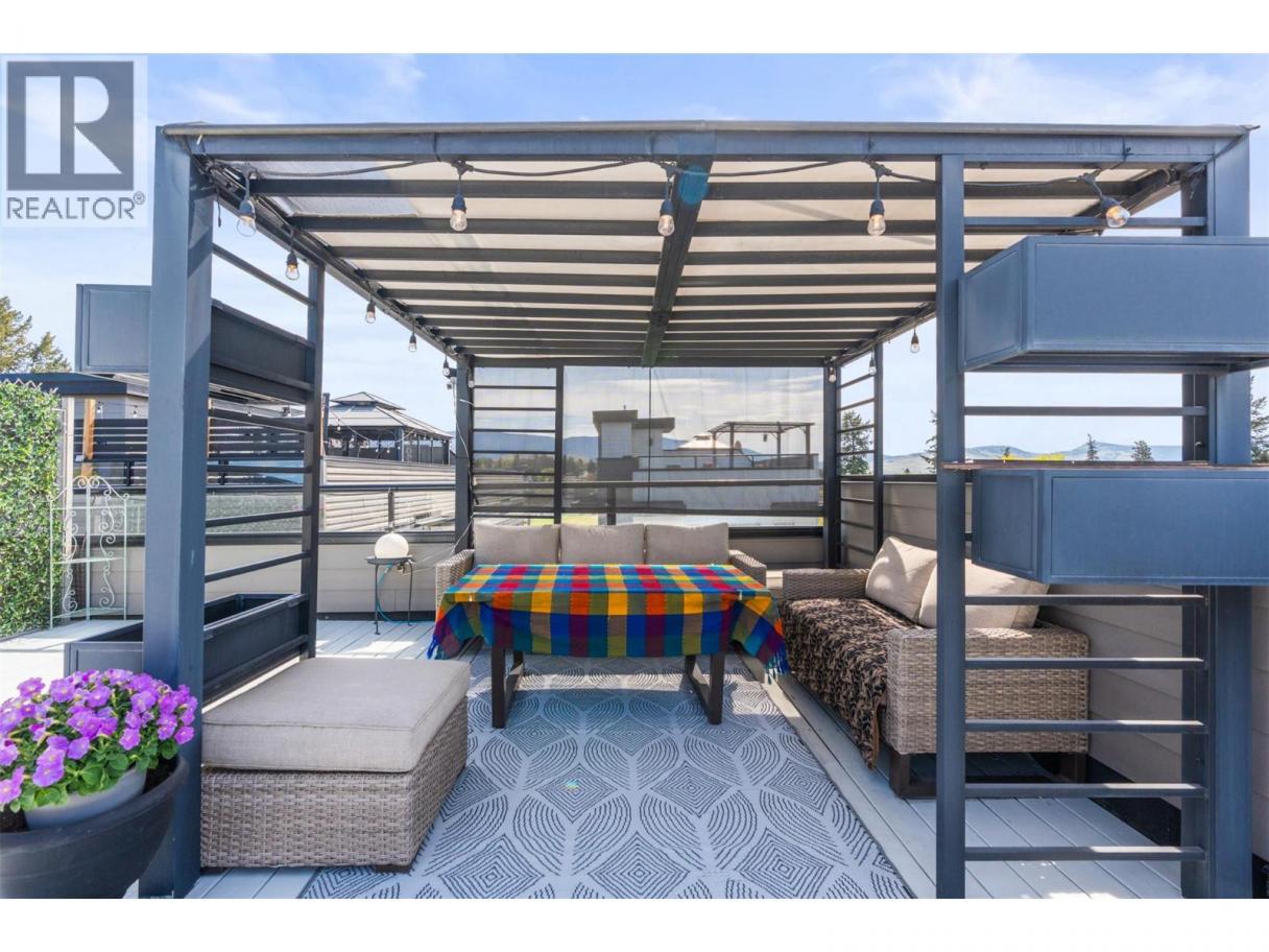 Start at the top—because that’s where this home really separates itself. An impressive 650 sq ft private rooftop patio takes in south and west-facing views across Turtle Mountain and the city. Morning coffee, evening drinks, summer nights… this is where you’ll spend more time than you think. Below, the home unfolds across four well-designed levels. The main living space is bright, open, and built to bring people together—featuring a stunning kitchen with a large island, quartz countertops, stainless steel KitchenAid appliances, and a walk-in pantry that keeps everything organized and out of sight. Upstairs, three bedrooms create a quiet retreat, including a generous primary with walk-in closet and a full ensuite with double vanities and a tiled walk-in shower. Downstairs adds flexibility with a bonus family room—perfect for a media space, home gym, or guest area—plus access to the tandem garage with room for vehicles, storage, and everything else that comes with Okanagan living. End unit. Central location. Four levels that live better than expected (id:6769)