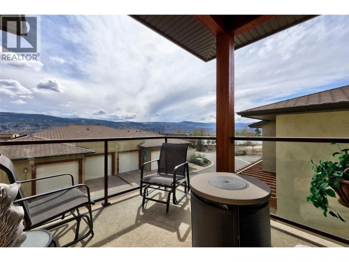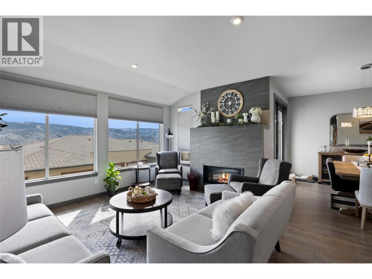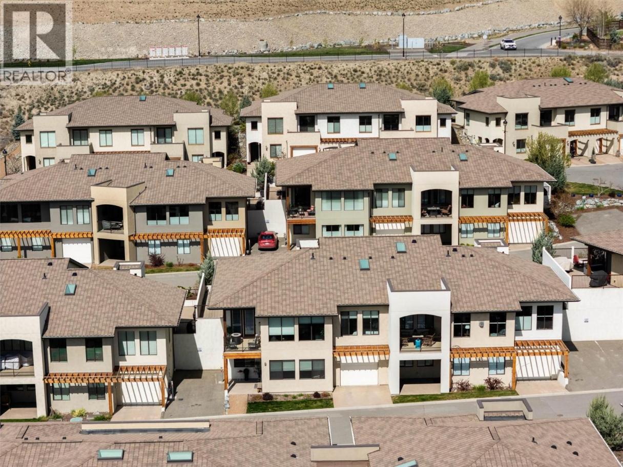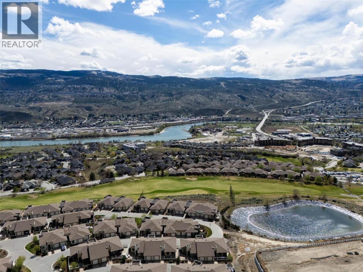 Experience Tuscan-Inspired Luxury at Belmonte Gardens Discover effortless living in this stunning level-entry townhouse, perfectly positioned to capture southern sun and sweeping mountain views. The heart of the home is an expansive open-concept great room, where a chef’s kitchen—complete with quartz countertops, custom lit cabinetry, and a gas range—flows seamlessly into the dining and living spaces. The primary retreat is a masterclass in comfort, featuring a skylit ensuite with heated floors and a walk-in closet with integrated laundry for ultimate convenience. Whether you need a quiet home office or a creative den, the main floor provides the perfect versatile workspace. Notable Features: Unique Dual Garages: Two separate garages offer rare flexibility for a workshop, golf cart, or ""his and hers"" parking. Outdoor Living: Choose between the panoramic vistas of the covered deck or the intimate privacy of the gated front courtyard. Finished Lower Level: A spacious rec room, guest bedroom, and a third patio make hosting a breeze. Efficiency: Geothermal heating and cooling ensure year-round comfort. Minutes from championship golf and downtown Kamloops, this is the refined lifestyle you’ve been looking for. (id:6769)