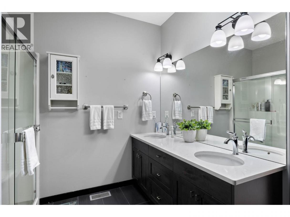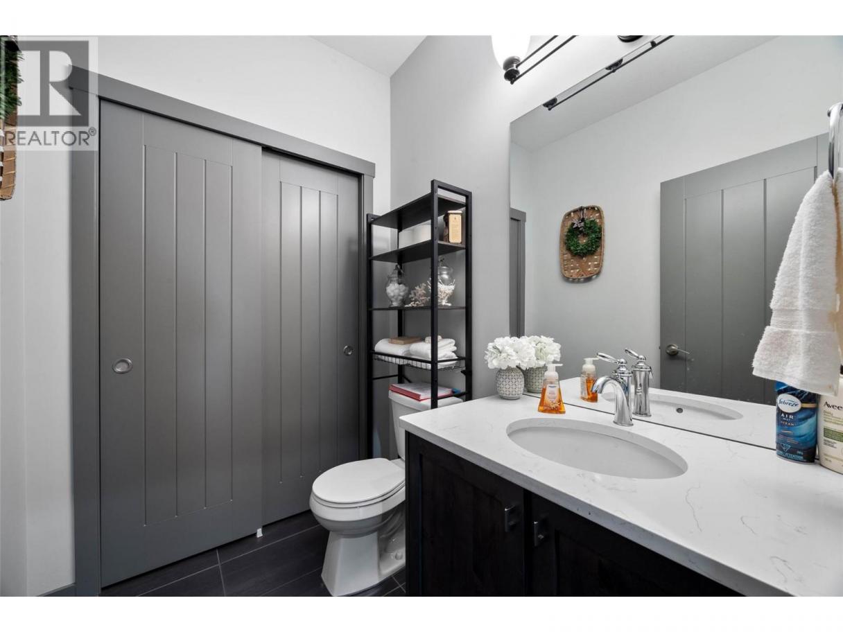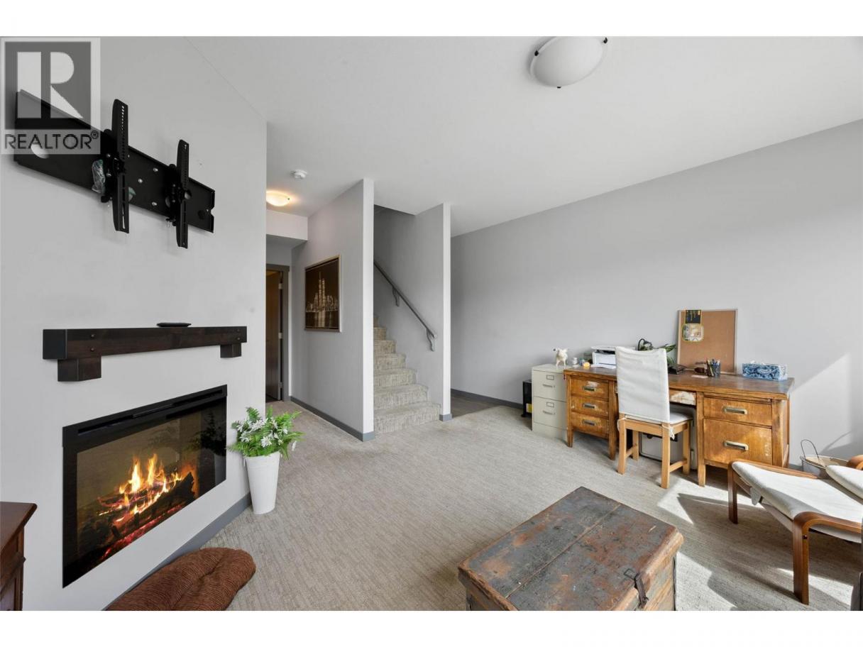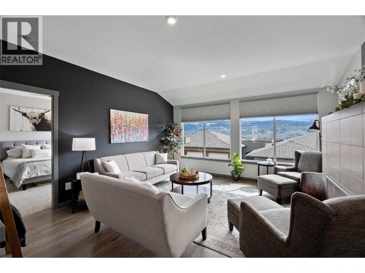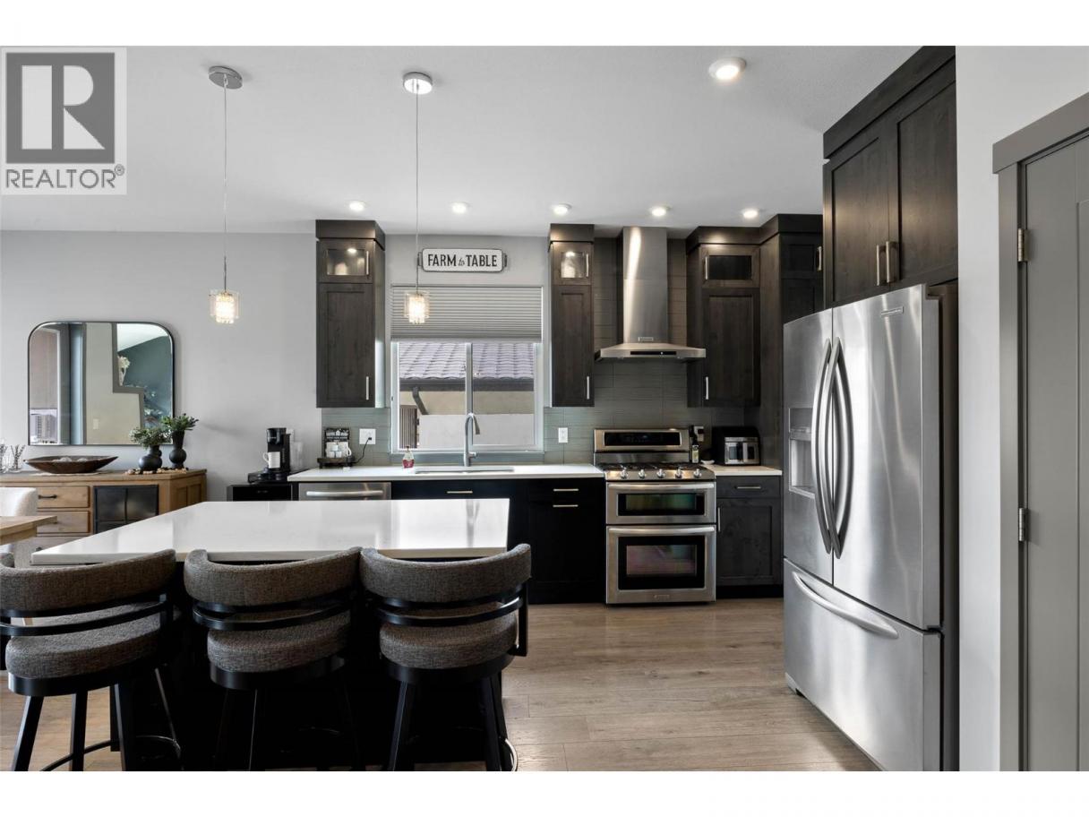 Experience Tuscan-Inspired Luxury at Belmonte Gardens Discover effortless living in this stunning level-entry townhouse, perfectly positioned to capture southern sun and sweeping mountain views. The heart of the home is an expansive open-concept great room, where a chef’s kitchen—complete with quartz countertops, custom lit cabinetry, and a gas range—flows seamlessly into the dining and living spaces. The primary retreat is a masterclass in comfort, featuring a skylit ensuite with heated floors and a walk-in closet with integrated laundry for ultimate convenience. Whether you need a quiet home office or a creative den, the main floor provides the perfect versatile workspace. Notable Features: Unique Dual Garages: Two separate garages offer rare flexibility for a workshop, golf cart, or ""his and hers"" parking. Outdoor Living: Choose between the panoramic vistas of the covered deck or the intimate privacy of the gated front courtyard. Finished Lower Level: A spacious rec room, guest bedroom, and a third patio make hosting a breeze. Efficiency: Geothermal heating and cooling ensure year-round comfort. Minutes from championship golf and downtown Kamloops, this is the refined lifestyle you’ve been looking for. (id:6769)