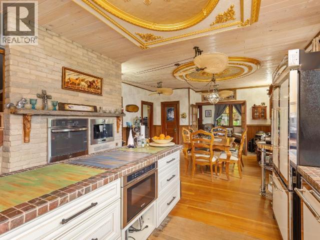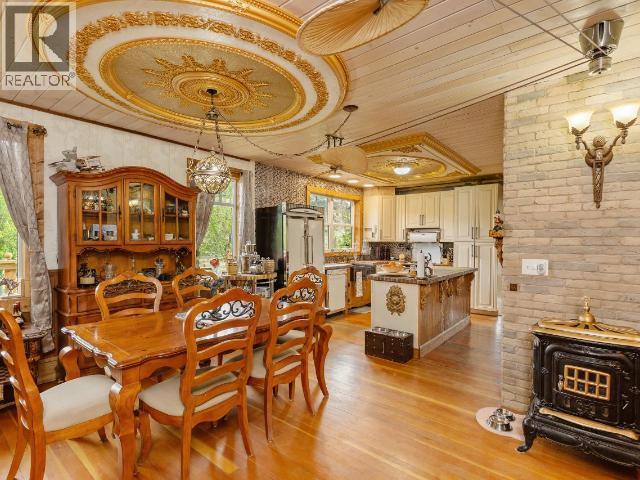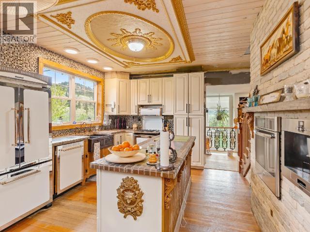 This one ticks all the boxes. 10.59-acres with privacy and incredible lake and country views from every angle. This one of a kind home features 5 bedrooms and 4 bathrooms, with thoughtful design and craftsmanship throughout. The kitchen is a standout, complete with Heartland appliances, a built-in Bosch microwave drawer, and espresso machine, perfect for everyday living and entertaining. Intricate woodwork and custom stained glass add warmth and character throughout the home. All big ticket items are taken care of! Updated appliances, newer roof, siding, furnace, central heat pump/AC, and on-demand hot water. A reverse osmosis system and water softener are in place, and the home is serviced by 200-amp power. The property is set across three large, flat, usable tiers. The main level features the home, two fenced pastures, 2-stall horse shelter with tack room, carport and she shed. The second level offers a 20x30 shop with 10ft automatic garage door and its own 100-amp service and separate well. The third level showcases a creek running through the property with domestic and irrigation rights. A rare opportunity to own a private, fully usable acreage with incredible views and a truly distinctive home. (id:6769)