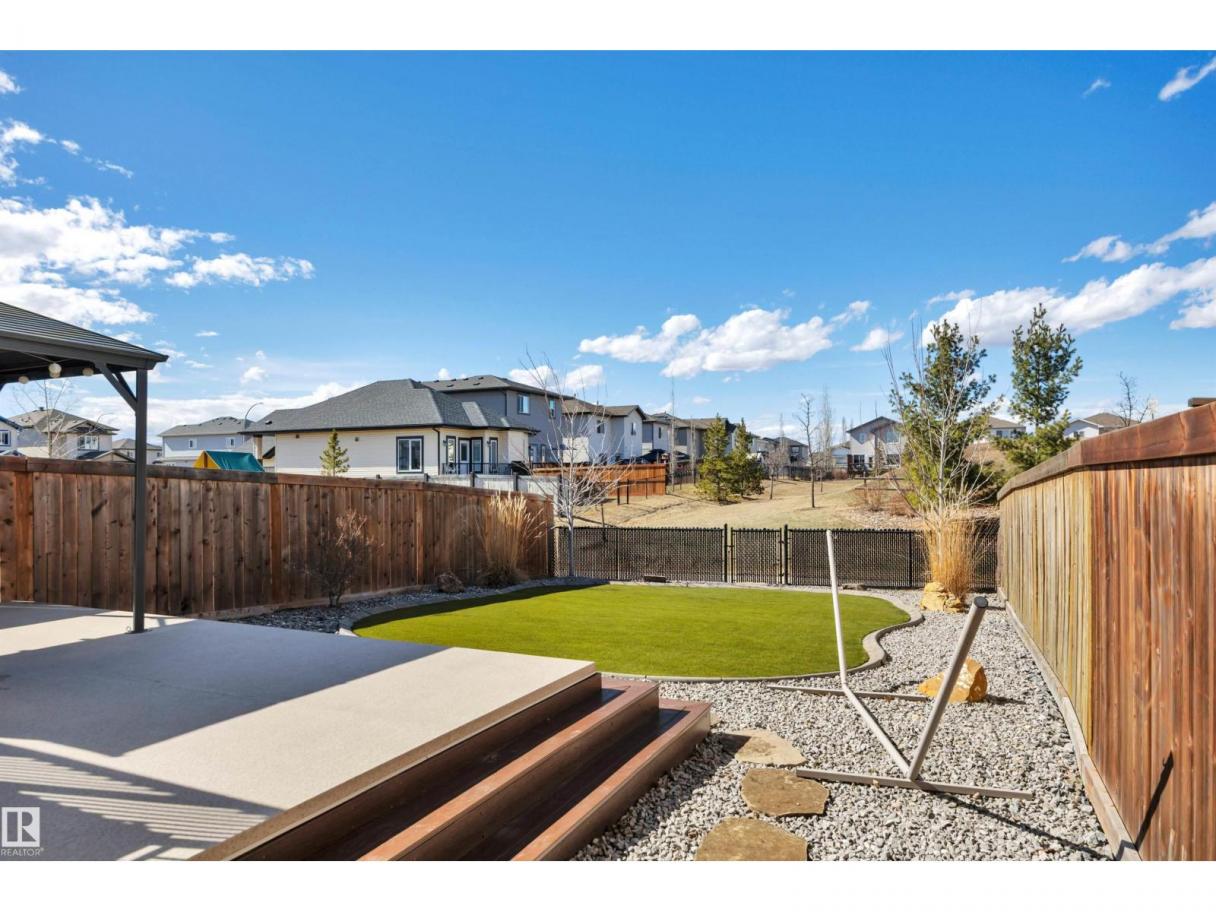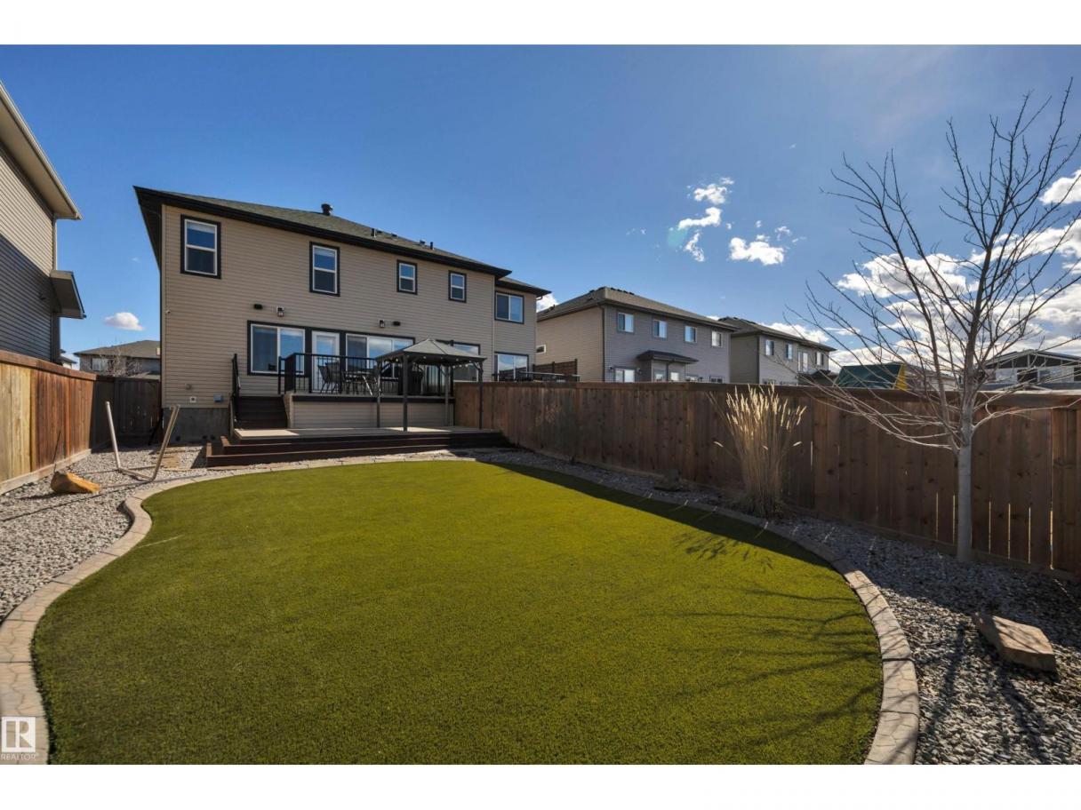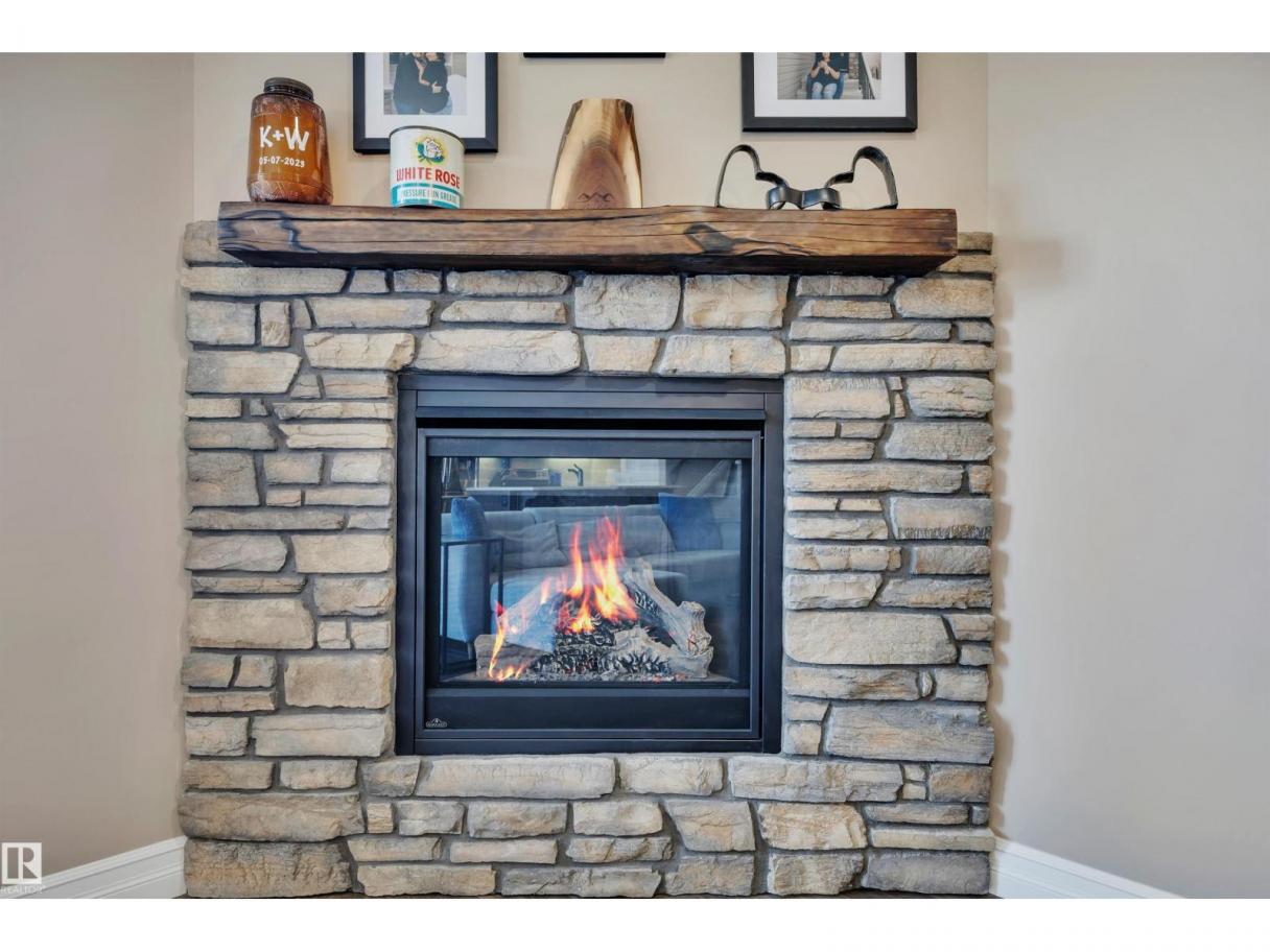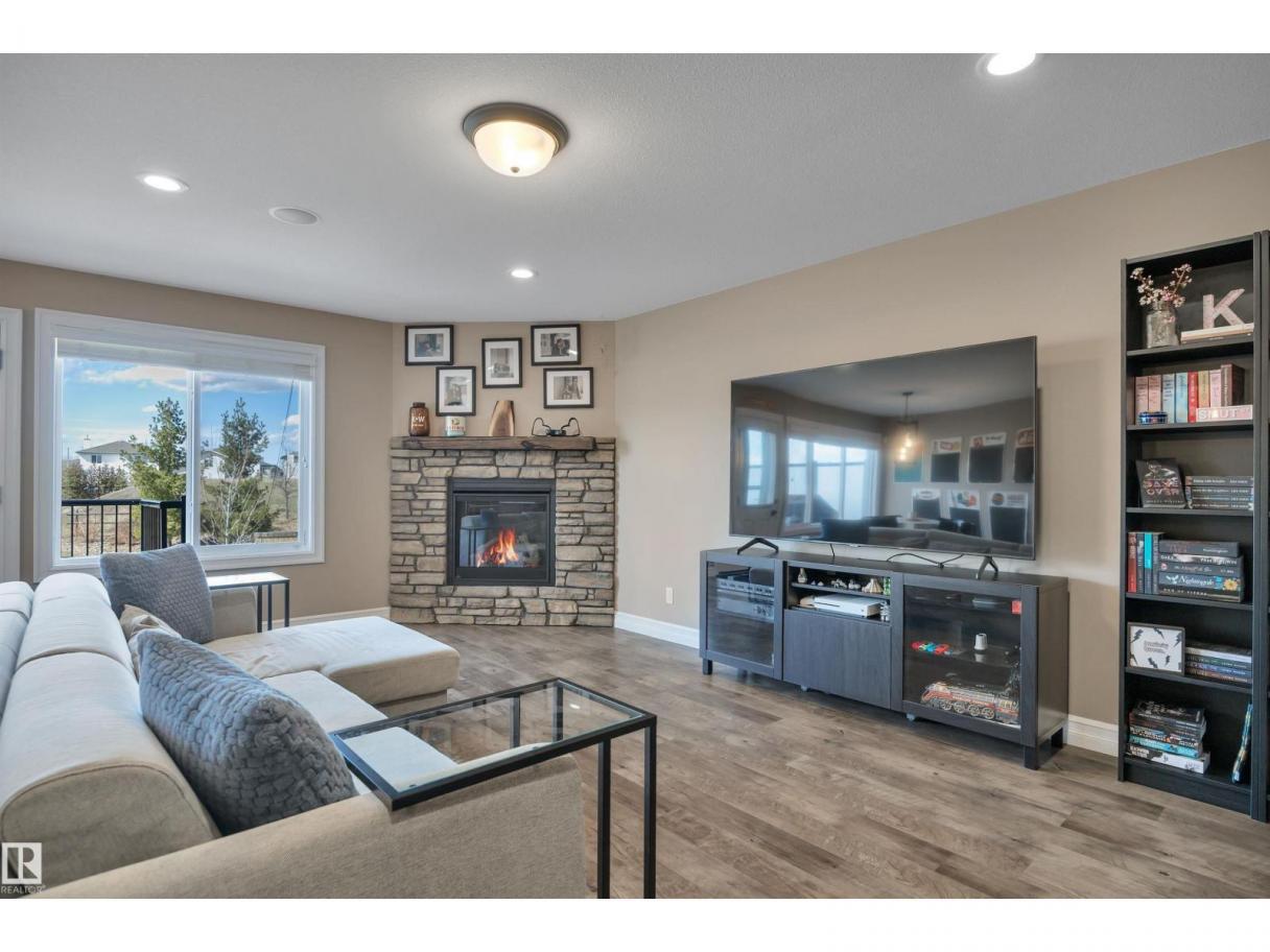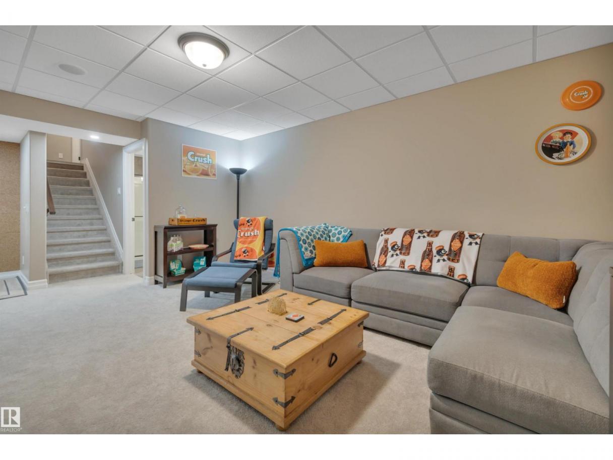 MAINTENANCE FREE YARD! BACKING GREENSPACE! 24' DEEP HEATED GARAGE! Is this a show home...its better! This 1844 sq ft 4 bed, 3.5 bath TURNKEY Santos Construction duplex shows a 10 & is loaded with value! Feat: AC, heated garage w/ floor drain, surround sound speaker system, gas fireplace, newer washer & dryer, 2 tier duradeck & composite boards, artificial turf & rock, & more! Open concept main floor w/ spacious kitchen w/ granite countertops, S/S appliances, & corner pantry. Window of walls provides tons of natural lighting to views behind. Upstairs brings 3 beds inc the primary bed w/ stunning 4 pce ensuite & custom shower & walk-in closet, laundry, & 4 pce bath. The professionally finished basement is well designed, w/ large rec room for movies, 4th bedroom, 3 pce bath, & storage. Your backyard is incredible! Summer oasis for your natural gas BBQ, entertaining & relaxing with no grass back there! Located in a quiet cul de sac, walking distance to the Dino Park & trails. Amazing package for the price! (id:6769)