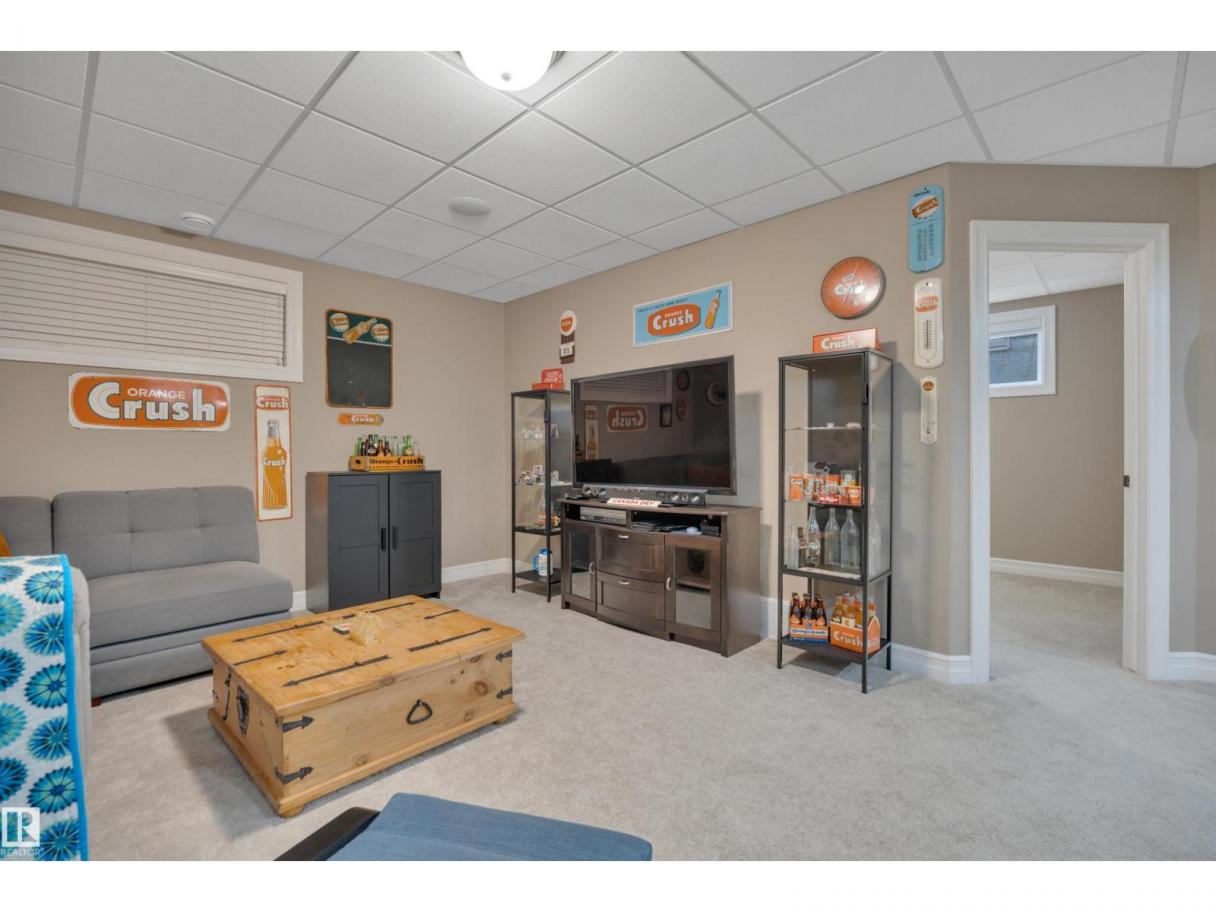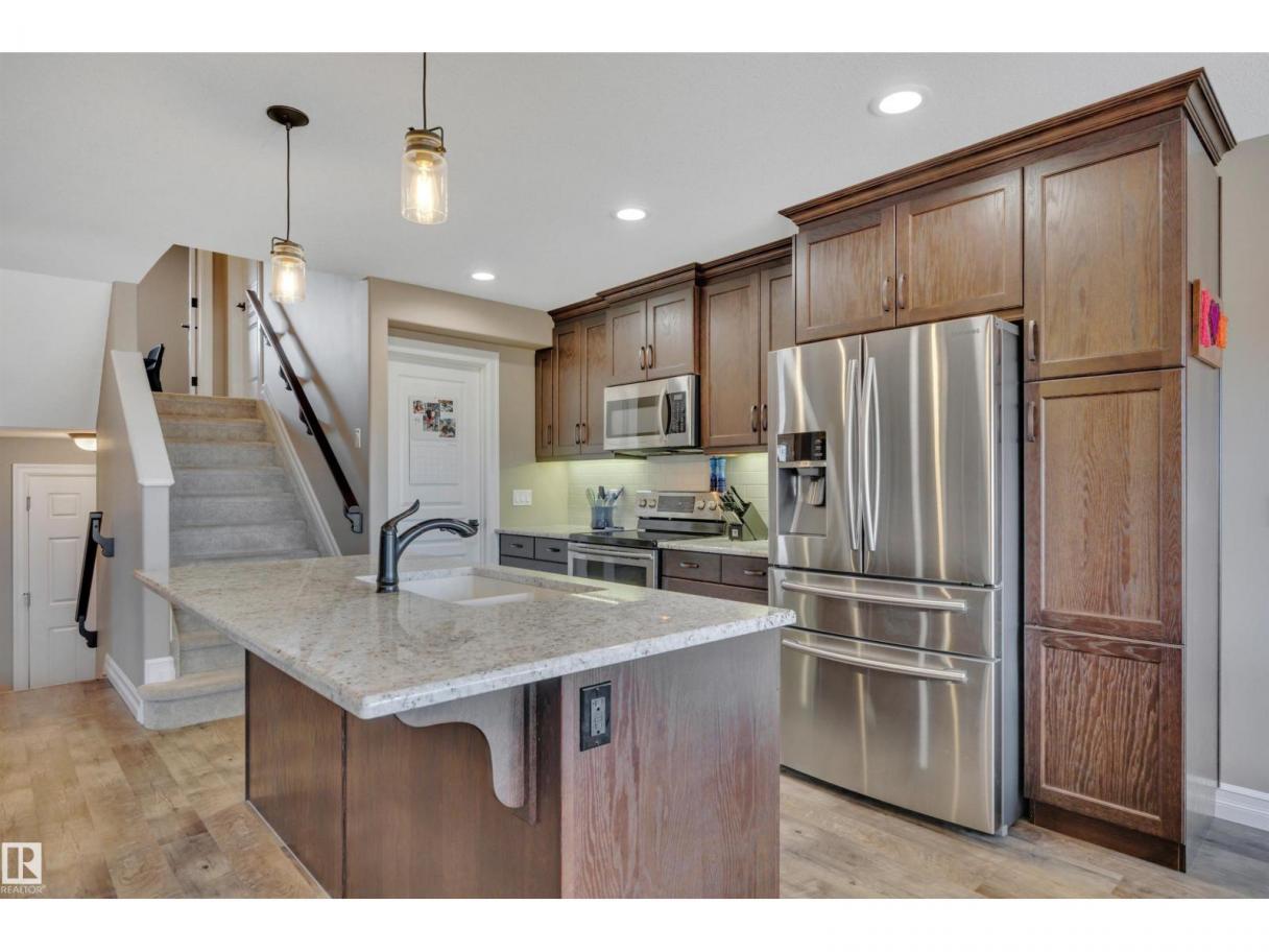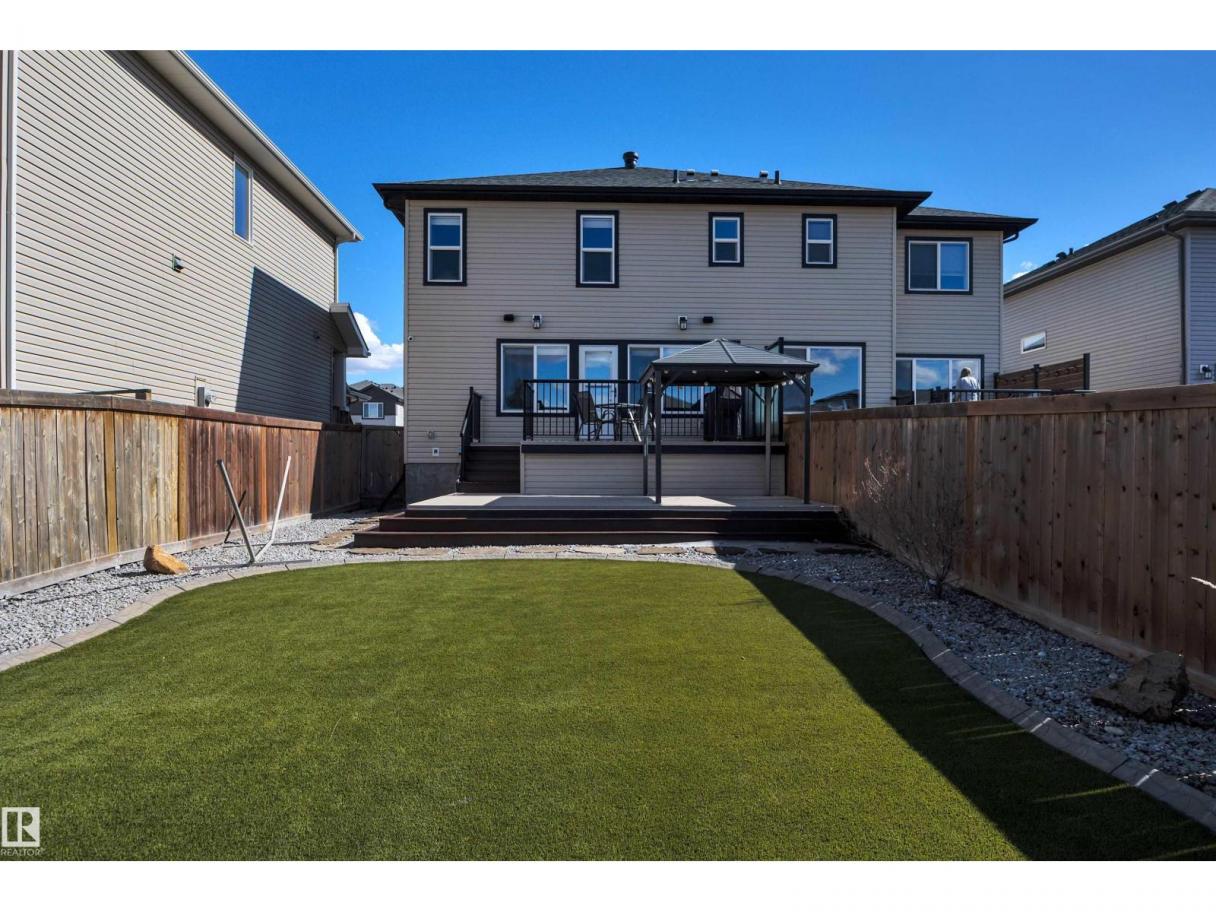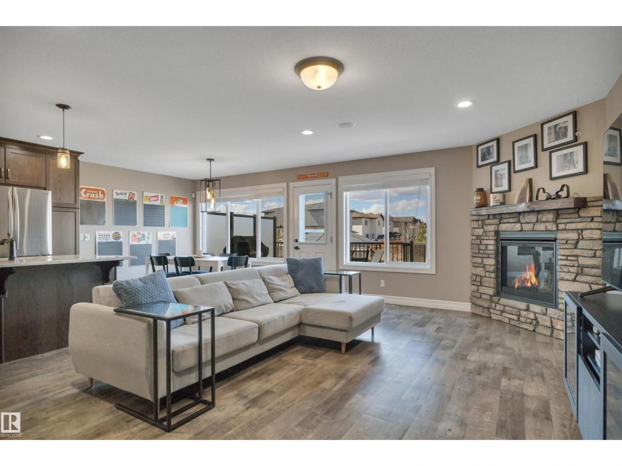 MAINTENANCE FREE YARD! BACKING GREENSPACE! 24' DEEP HEATED GARAGE! Is this a show home...its better! This 1844 sq ft 4 bed, 3.5 bath TURNKEY Santos Construction duplex shows a 10 & is loaded with value! Feat: AC, heated garage w/ floor drain, surround sound speaker system, gas fireplace, newer washer & dryer, 2 tier duradeck & composite boards, artificial turf & rock, & more! Open concept main floor w/ spacious kitchen w/ granite countertops, S/S appliances, & corner pantry. Window of walls provides tons of natural lighting to views behind. Upstairs brings 3 beds inc the primary bed w/ stunning 4 pce ensuite & custom shower & walk-in closet, laundry, & 4 pce bath. The professionally finished basement is well designed, w/ large rec room for movies, 4th bedroom, 3 pce bath, & storage. Your backyard is incredible! Summer oasis for your natural gas BBQ, entertaining & relaxing with no grass back there! Located in a quiet cul de sac, walking distance to the Dino Park & trails. Amazing package for the price! (id:6769)