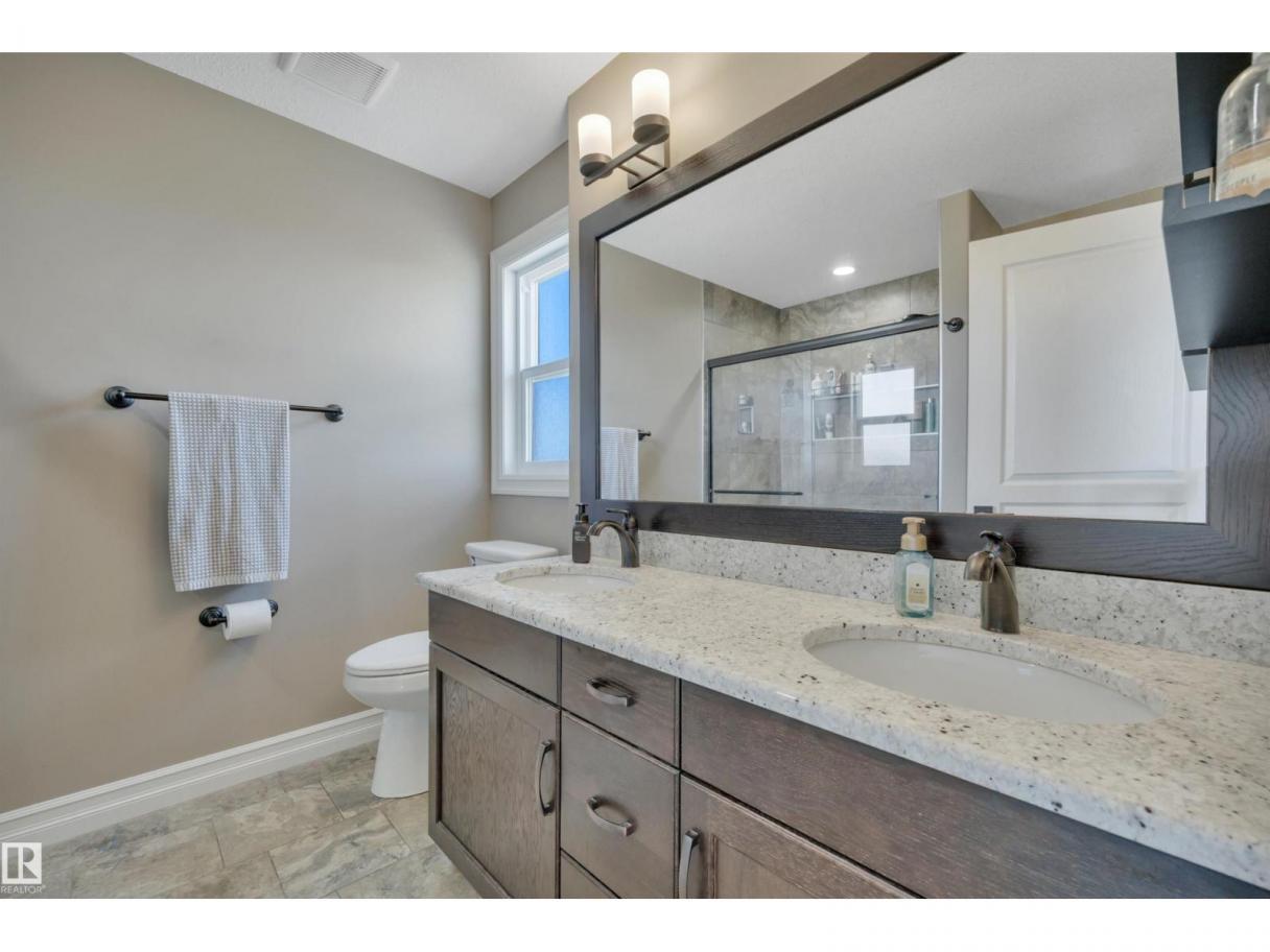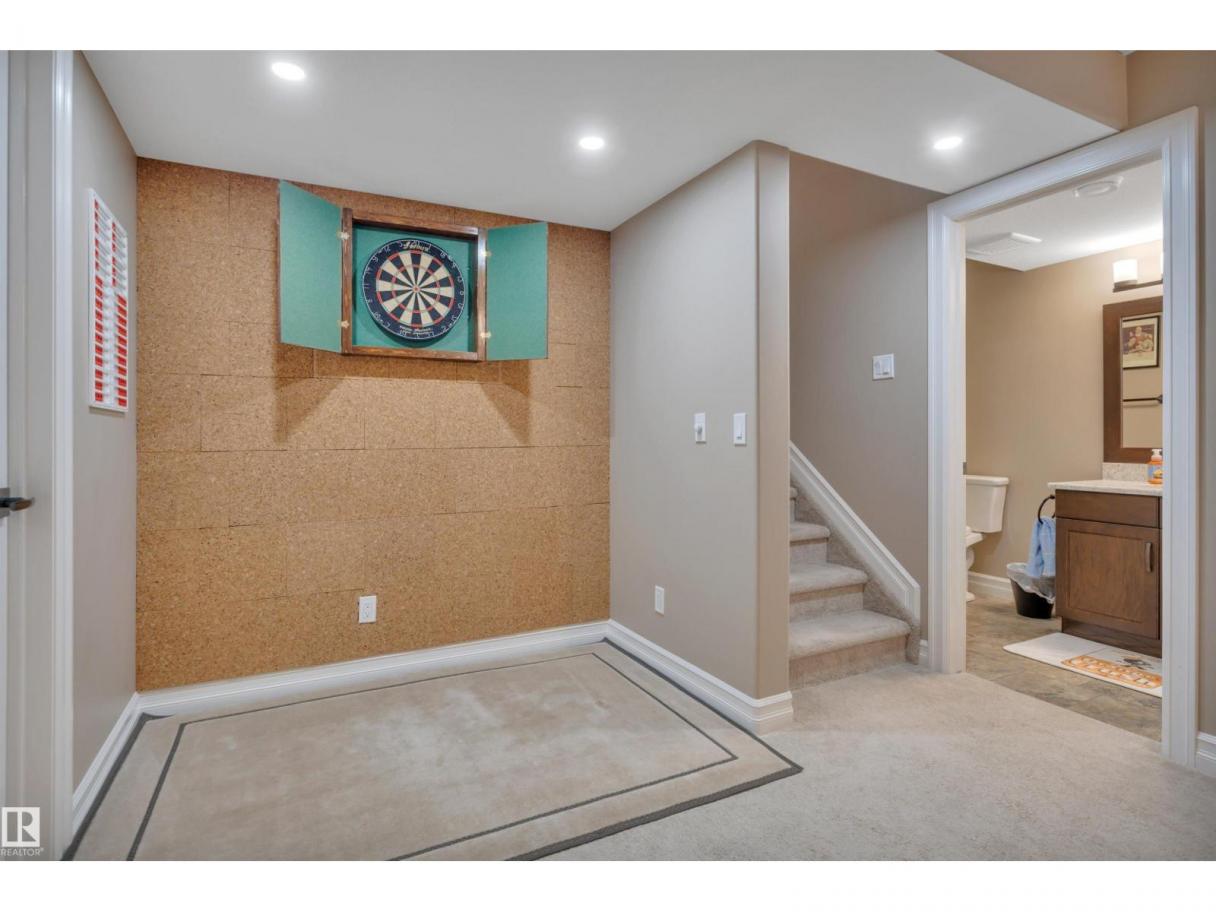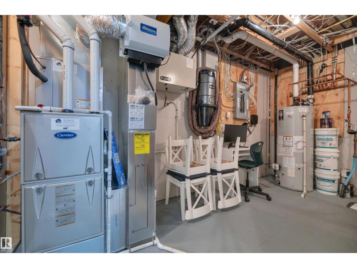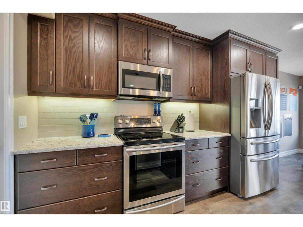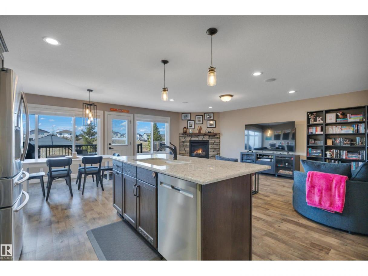 MAINTENANCE FREE YARD! BACKING GREENSPACE! 24' DEEP HEATED GARAGE! Is this a show home...its better! This 1844 sq ft 4 bed, 3.5 bath TURNKEY Santos Construction duplex shows a 10 & is loaded with value! Feat: AC, heated garage w/ floor drain, surround sound speaker system, gas fireplace, newer washer & dryer, 2 tier duradeck & composite boards, artificial turf & rock, & more! Open concept main floor w/ spacious kitchen w/ granite countertops, S/S appliances, & corner pantry. Window of walls provides tons of natural lighting to views behind. Upstairs brings 3 beds inc the primary bed w/ stunning 4 pce ensuite & custom shower & walk-in closet, laundry, & 4 pce bath. The professionally finished basement is well designed, w/ large rec room for movies, 4th bedroom, 3 pce bath, & storage. Your backyard is incredible! Summer oasis for your natural gas BBQ, entertaining & relaxing with no grass back there! Located in a quiet cul de sac, walking distance to the Dino Park & trails. Amazing package for the price! (id:6769)