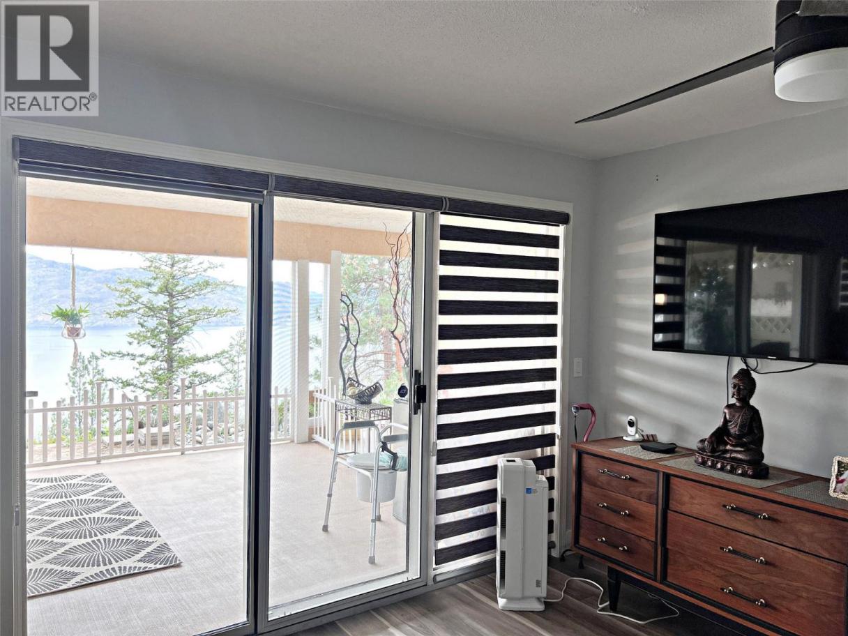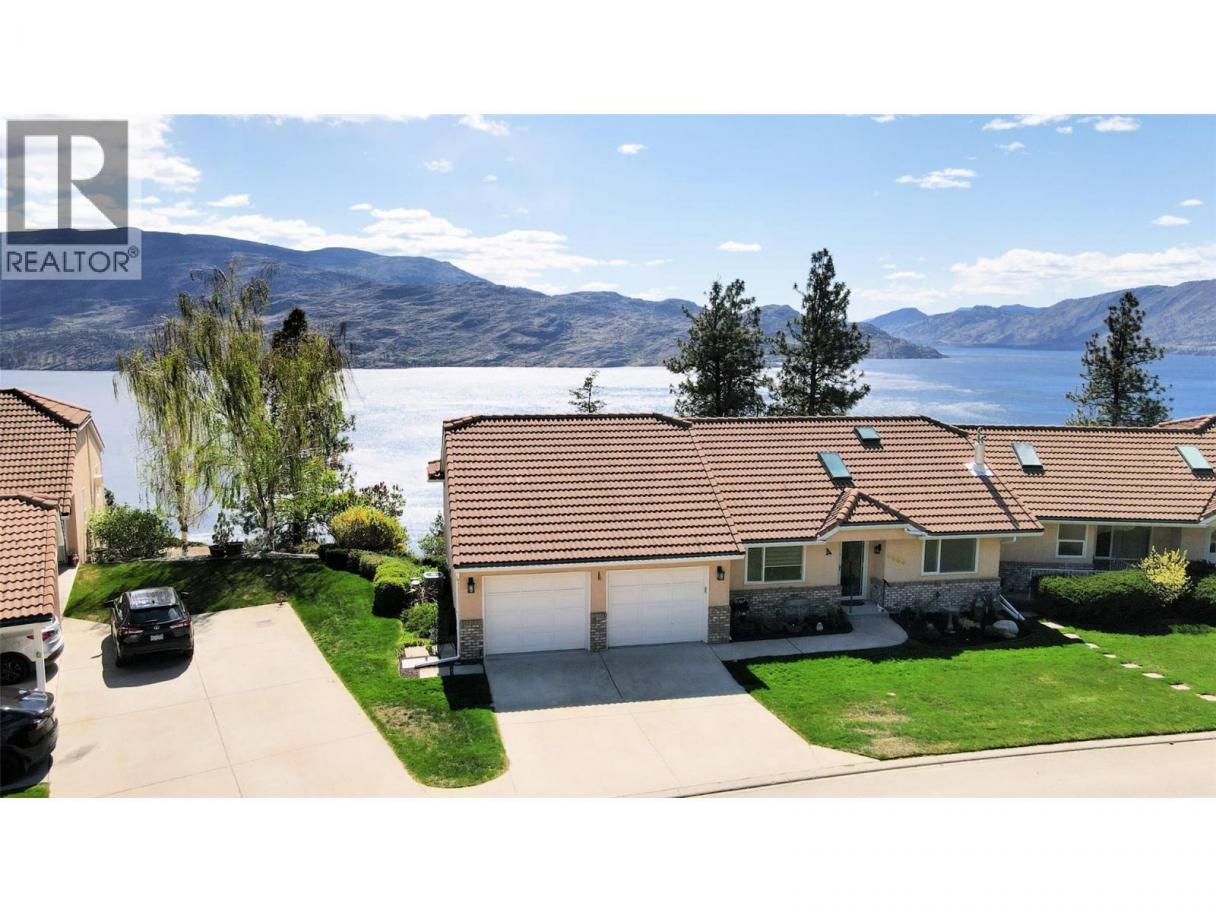 This exceptional walk-out rancher townhome in Peachland, has breathtaking 180-degree views of Okanagan Lake set the stage for a truly remarkable lifestyle. Offering close to 3,200 square feet of beautifully designed living space across two levels, this 3-bedroom, 3-bathroom home seamlessly blends luxury, comfort, and effortless living. The main floor features a bright, open-concept layout ideal for both everyday living and entertaining. A stunning chef-inspired kitchen with granite countertops, modern appliances, and an expansive dining area overlooks the lake, creating an unforgettable backdrop. Two inviting living rooms, each with a cozy gas fireplace, provide flexibility and warmth. The primary suite on the main level is a private retreat, complete with a spa-like ensuite and a spacious walk-in closet. Thoughtfully designed with upscale finishes throughout, this home showcases hardwood flooring, skylights, designer blinds, and quality craftsmanship at every turn. The lower level is equally impressive, featuring a spacious family room with summer kitchen, two bedrooms —perfect for guests or extended family. The strata fee covers an extensive list including in-floor hot water heating, gas for the stove, fireplace, and BBQ, water, landscaping, and major exterior components—ensuring true lock-and-leave living. Enjoy a low-maintenance lifestyle without compromising on space, style, or scenery. Experience the best of Peachland living—where every day feels like a getaway. (id:6769)
