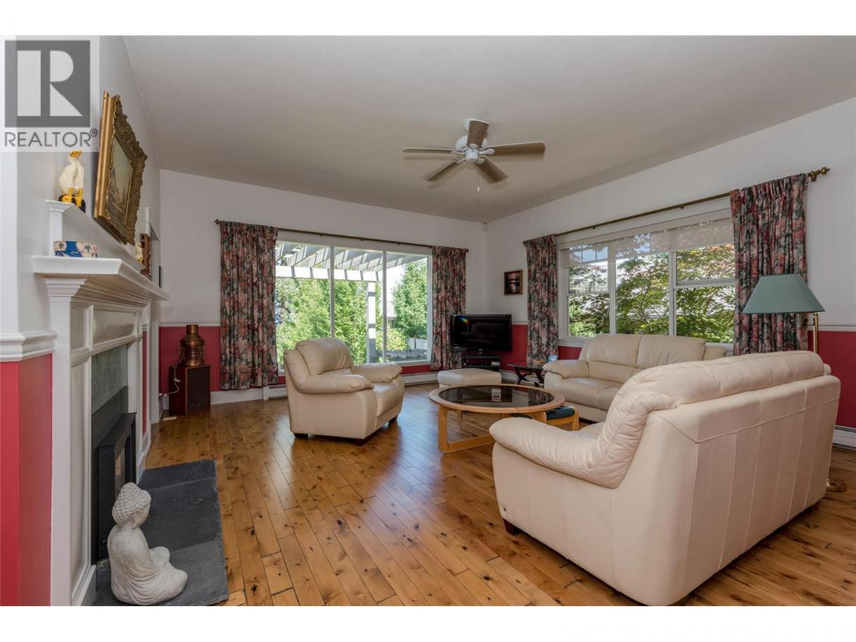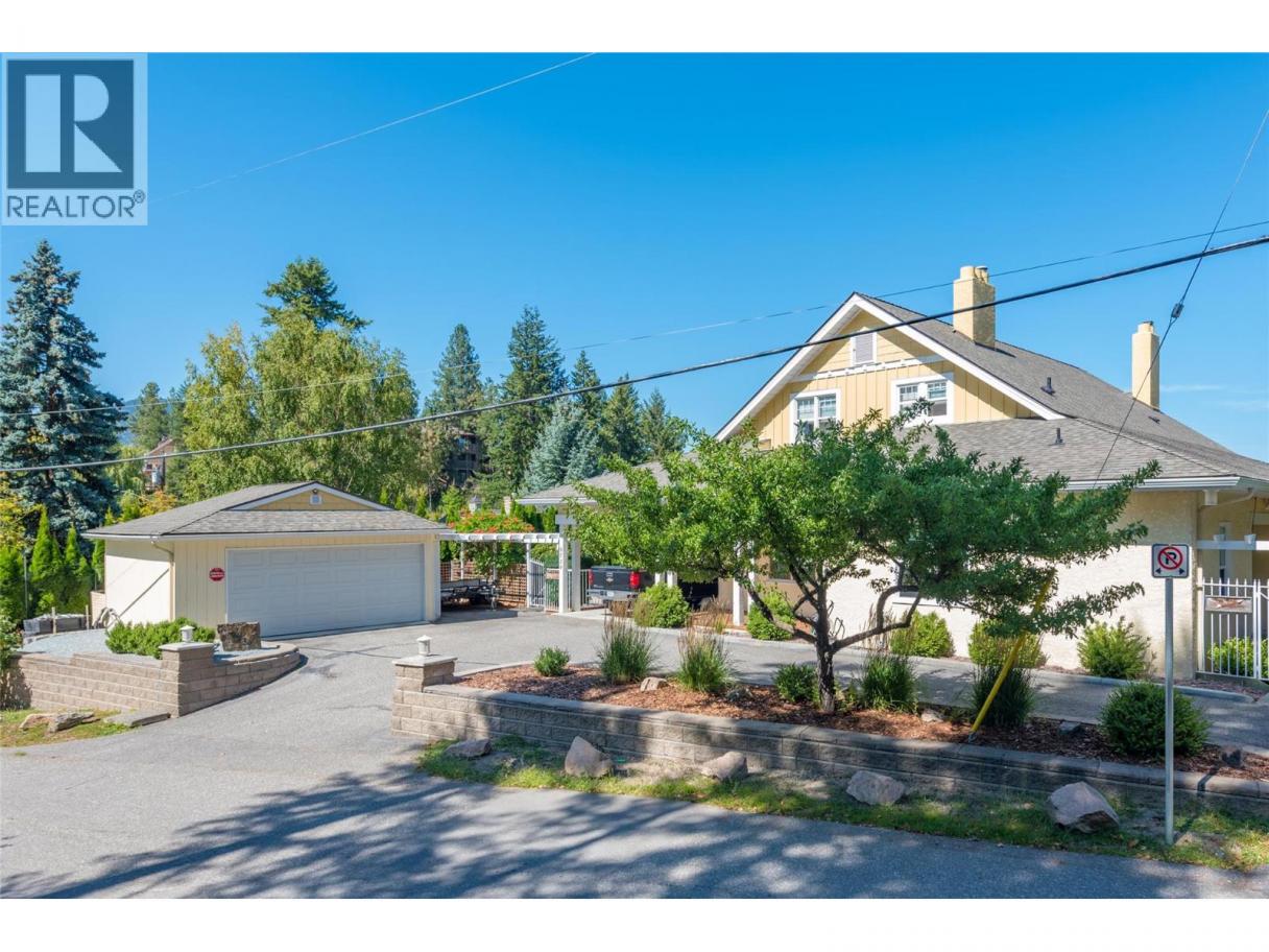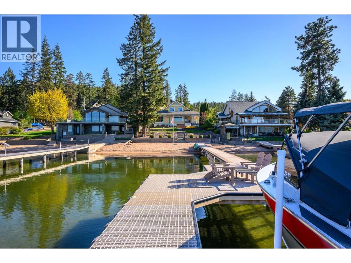 Historic Waterfront Estate with Royal Ties – Once host to Queen Elizabeth herself, this 1908 treasure offers rare privacy, timeless elegance, and an unmatched Okanagan Lake setting. A classic, welcoming porch wraps around the home to the lake front deck. Nestled between two bayswith63 ft of sandy beachfront, enjoy panoramic lake views all the way to Crystal Waters Bay from a quiet no-thru road. The brand-new registered dock features power, water, a leisure lift, wireless remote, and space for two Sea-Doo lifts. Beautifully landscaped grounds slope gently to the water for easy swimming. Inside, over 5,400 sq ft blends heritage character with comfort—gabled ceilings, exposed beams, crown moldings, six bedrooms, 3.5 baths, grand living areas, a breakfast-nook kitchen, and an 18’ x 28’ games room. Added perks: hot water heat, A/C, security, irrigation, central vac, beach shower, and water license. Carport plus detached double garage. A one-of-a-kind lakefront legacy, ready for its next chapter. (id:6769)