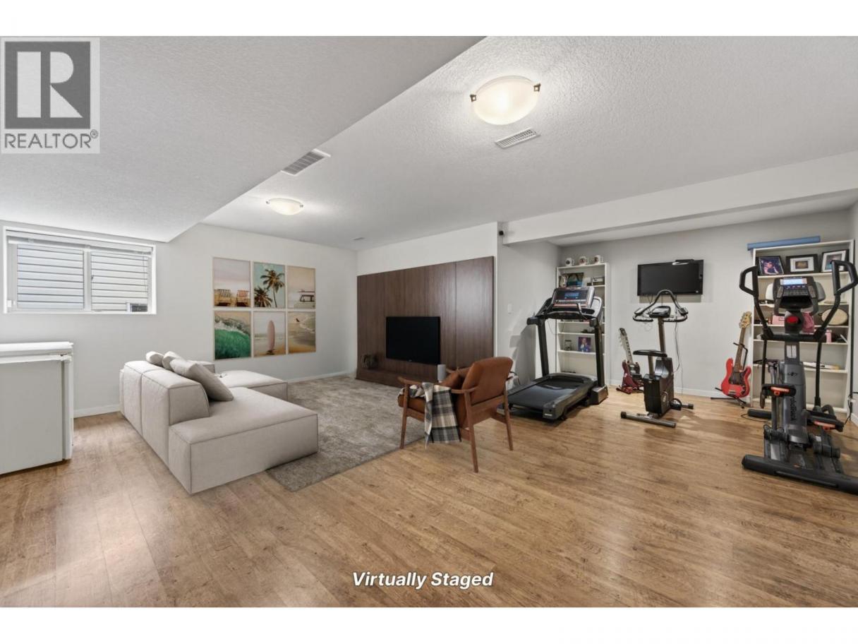 Welcome to your future family headquarters in the highly desirable Aberdeen neighborhood! This spacious, move-in-ready home is located on a quiet street backing onto open space. This 5 bedroom, 3 bathroom home offers over 2,600 sq ft of bright, functional living. Main floor features an open-concept design with hardwood and tile flooring, generous spaces, large windows and an abundance of natural light. Spacious living room with cozy gas fireplace. The updated kitchen shines with quartz countertops, a modern subway tile backsplash, upgraded sink and some newer appliances. The large eating area easily accommodates a large table and opens onto a partially covered deck—perfect for everyday living and entertaining. You'll love the bonus flex space, ideal for a separate formal dining area, playroom, home office or gym. The primary bedroom includes a walk-in closet and private ensuite, with two additional bedrooms and a full bathroom completing the main level. Downstairs offers a bright entryway, a massive rec/games room with a stylish barn door, two more bedrooms and another full bath. Fresh paint, brand new sod in the private fully fenced back yard, double garage + extra parking. Conveniently located near schools, parks, transit, and hiking trails—this home offers comfort, space and a fantastic location. Quick poss possible. Some photos have been digitally staged. (id:6769)