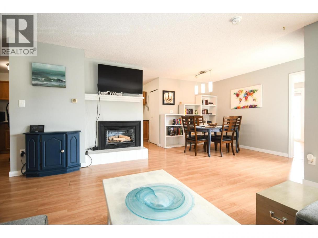 Welcome to Centaur Villa! This bright 2 bed, 2 bath second-floor unit offers a functional open-concept layout with a cozy fireplace in the living room and a galley kitchen that flows into the dining area. Enjoy east-facing exposure for beautiful morning light, plus two private balconies for added outdoor space. The primary bedroom includes a full ensuite, with a second bedroom ideal for guests, office, or hobbies. Covered parking and a well-maintained building add to the appeal. Perfect for first-time buyers, downsizers, or investors, conveniently located close to shopping, transit, and everyday amenities. (id:6769)