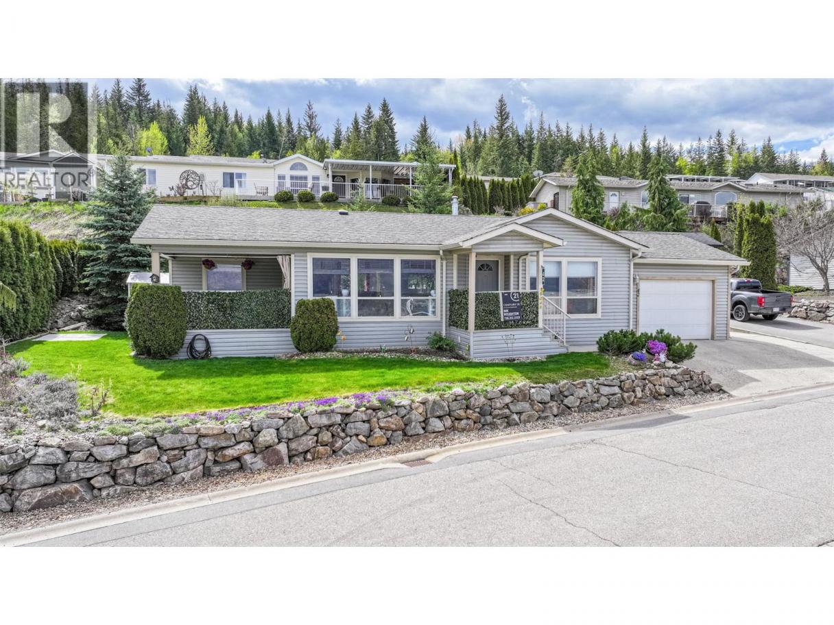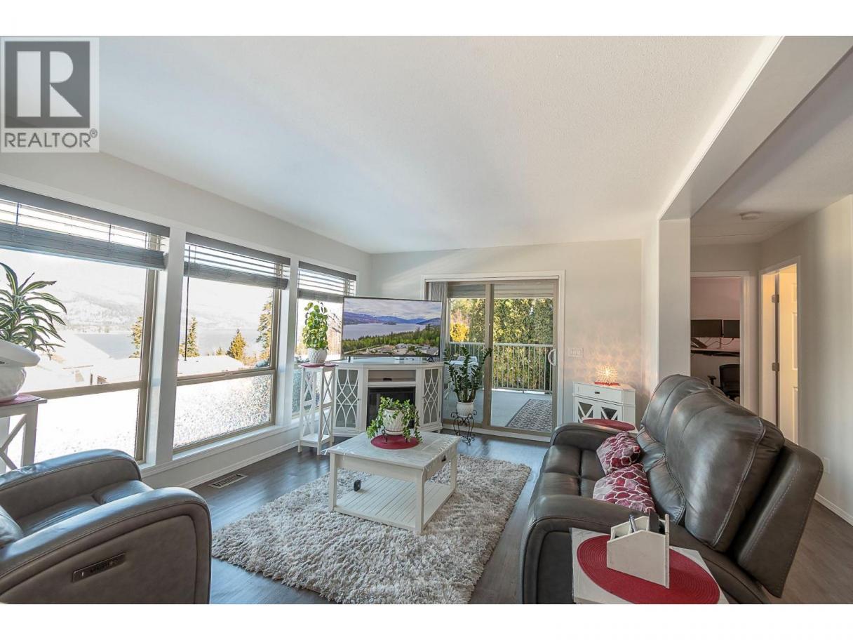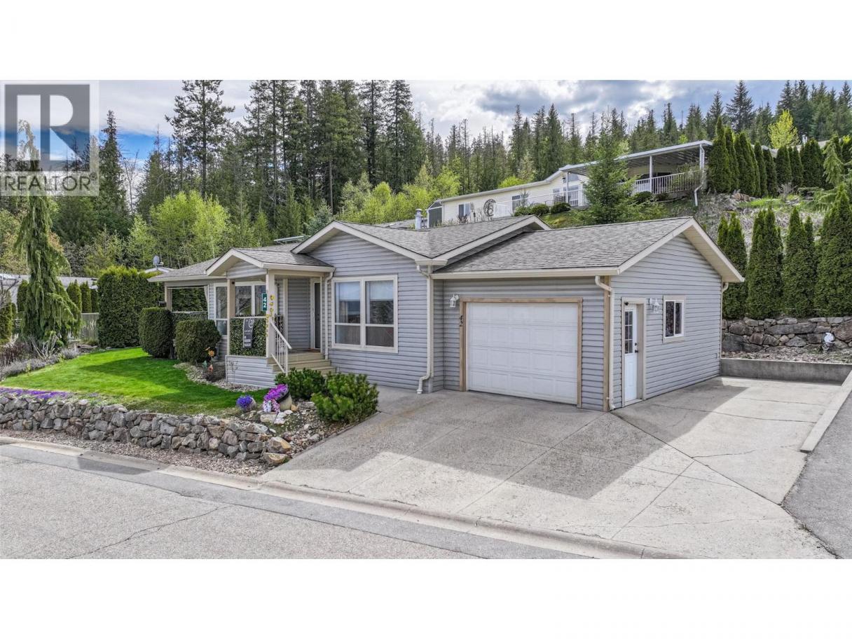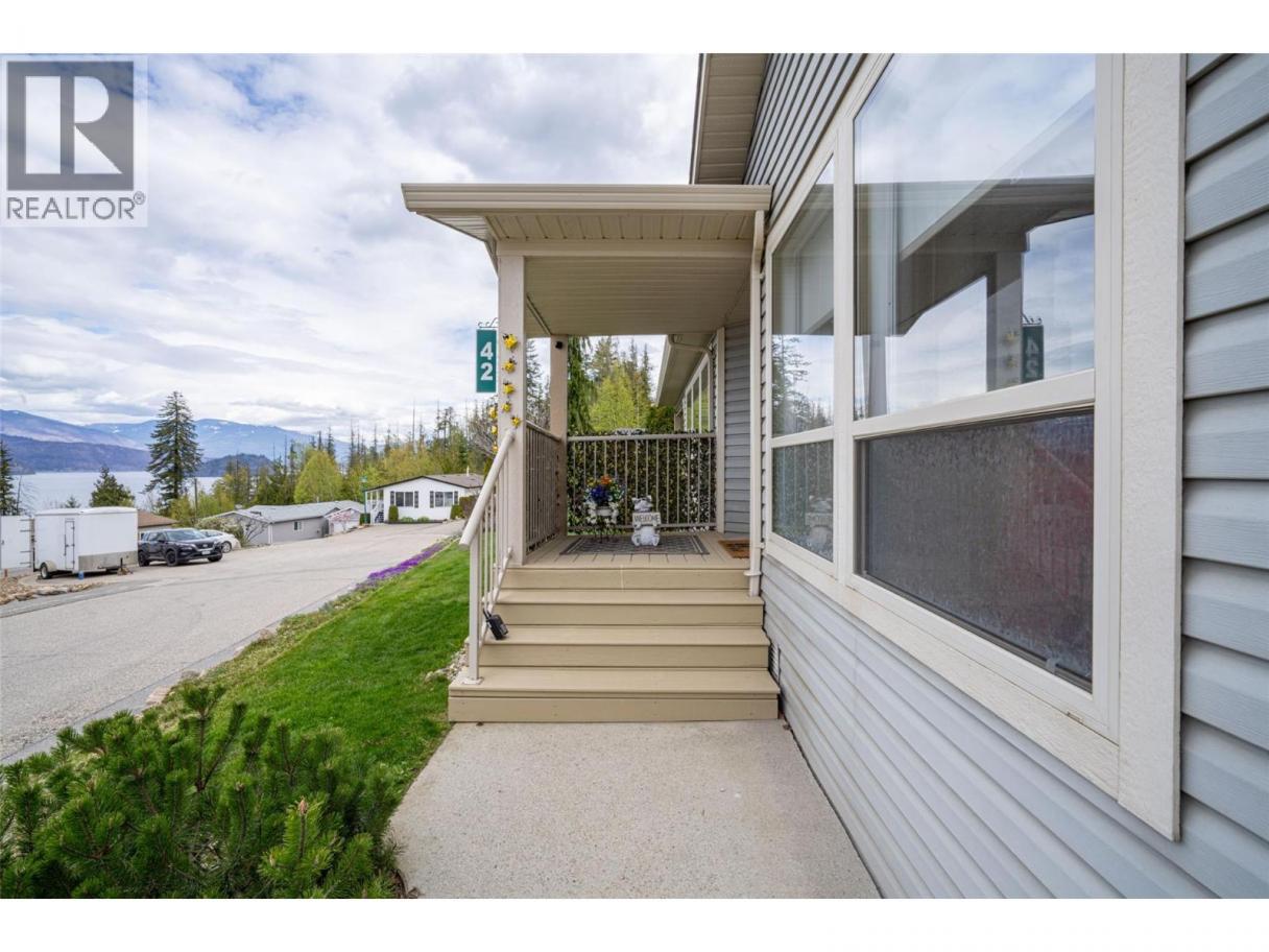 Experience Shuswap living in this beautifully updated 2 bed, 2 bath double-wide modular home, nestled in the peaceful Deer Ridge Estates Mobile Home Park in Sorrento. Located at the end of a quiet cul-de-sac, this home offers beautiful views of Shuswap Lake and the surrounding mountains, just minutes from endless recreational opportunities. Step inside to an inviting living area and a spacious, bright kitchen featuring a fridge, dishwasher, new stove, upgraded lighting, sink, and faucet. The primary suite includes an ensuite, while the second bedroom is thoughtfully positioned at the opposite end for added privacy. Both bedrooms offer built-in storage organizers, noise-reduction window inserts, and scenic views. Both bathrooms have been tastefully updated with modern toilets, sinks, skylights, and laminate flooring. Enjoy year-round comfort with a new furnace and air conditioning system. Outdoor living is a highlight with a covered deck, perfect for dining and relaxing while overlooking a manicured yard with an English garden, vibrant flowers, and a fragrant lilac tree that blooms beautifully in spring and summer. A garden shed and space in the back of the house for a raised garden bed add to the appeal. The attached garage accommodates one vehicle plus storage, with additional parking beside the home and visitor parking on the cul-de-sac. Deer Ridge Estates is a welcoming 55+ community where pets are allowed (dogs up to 10 kg). Contact today to book your showing! (id:6769)