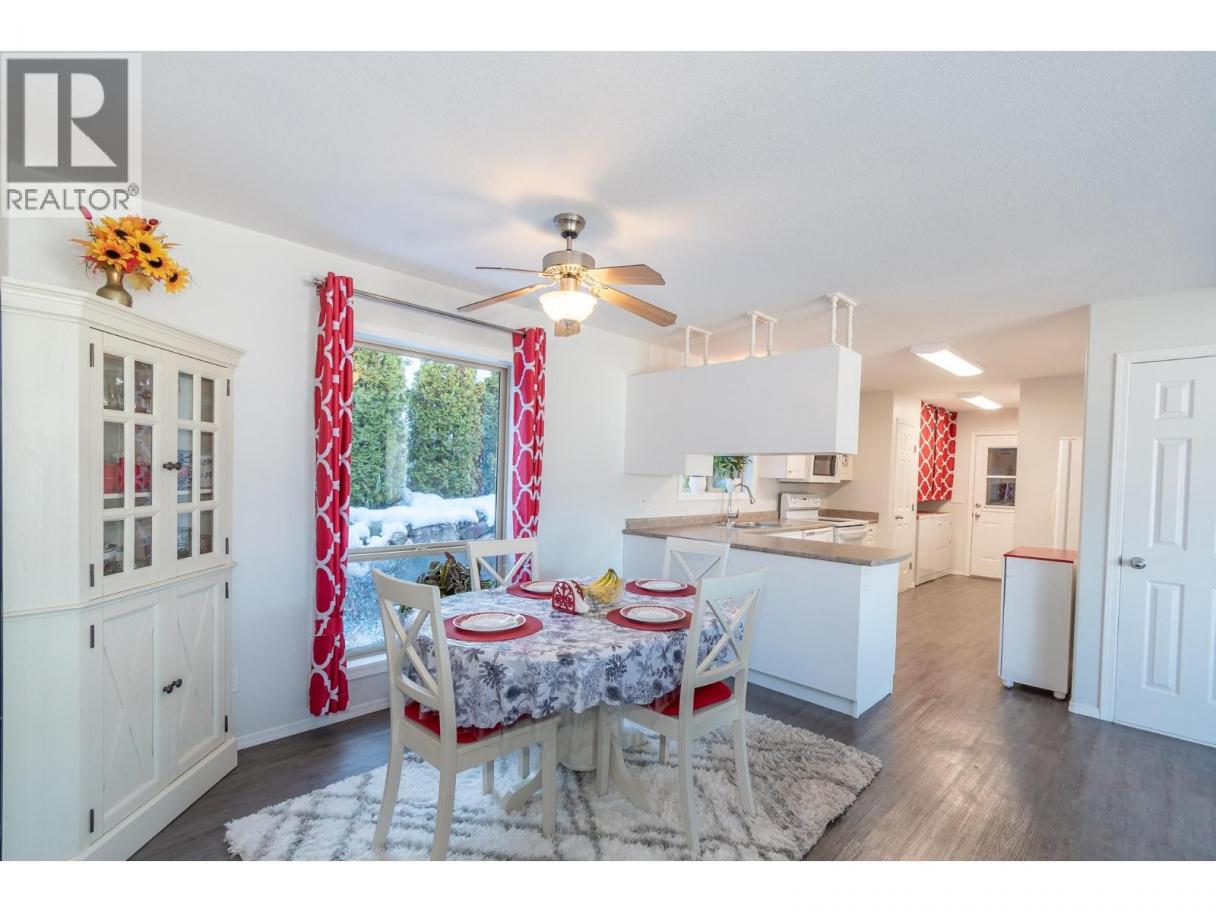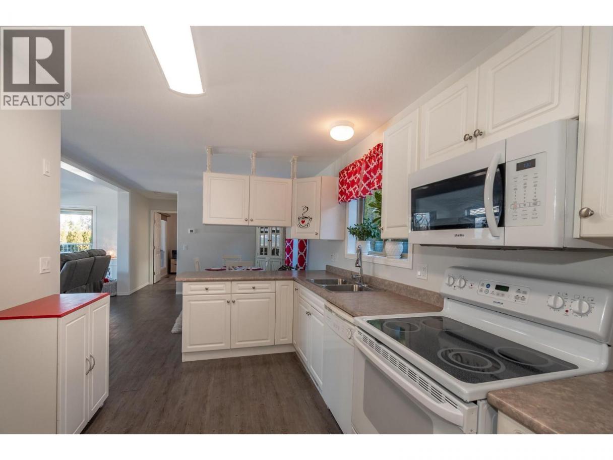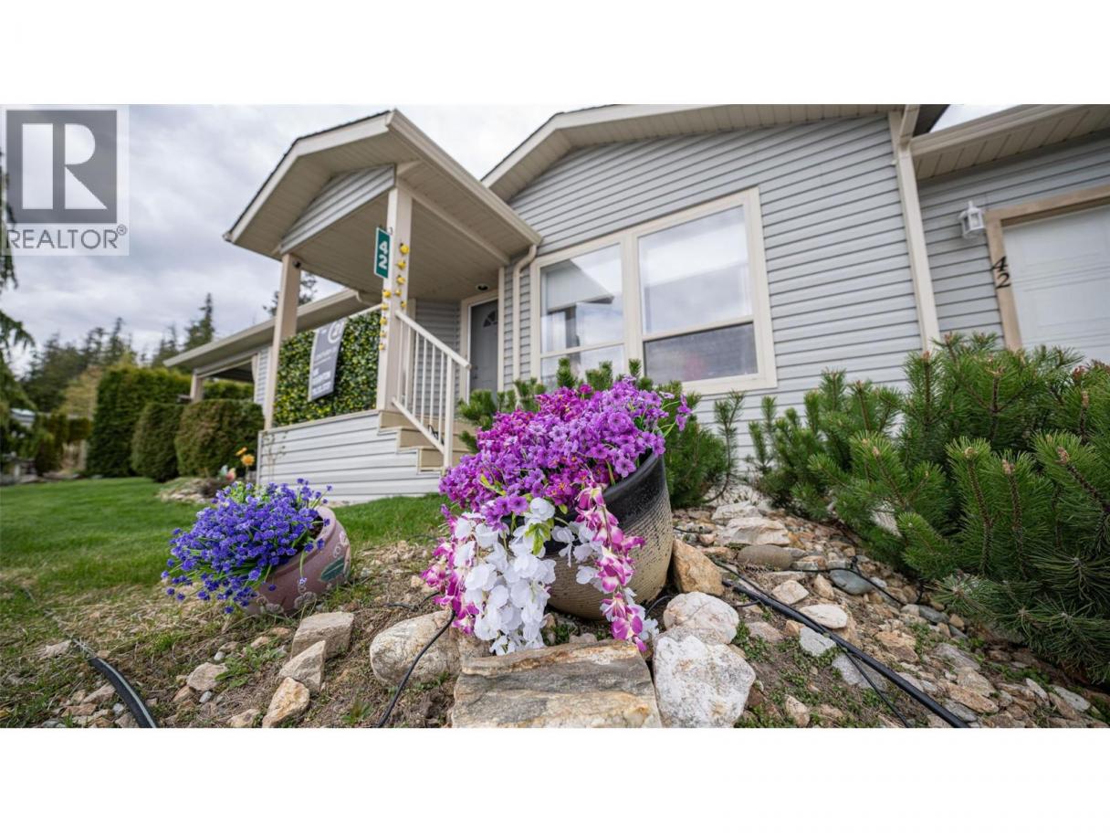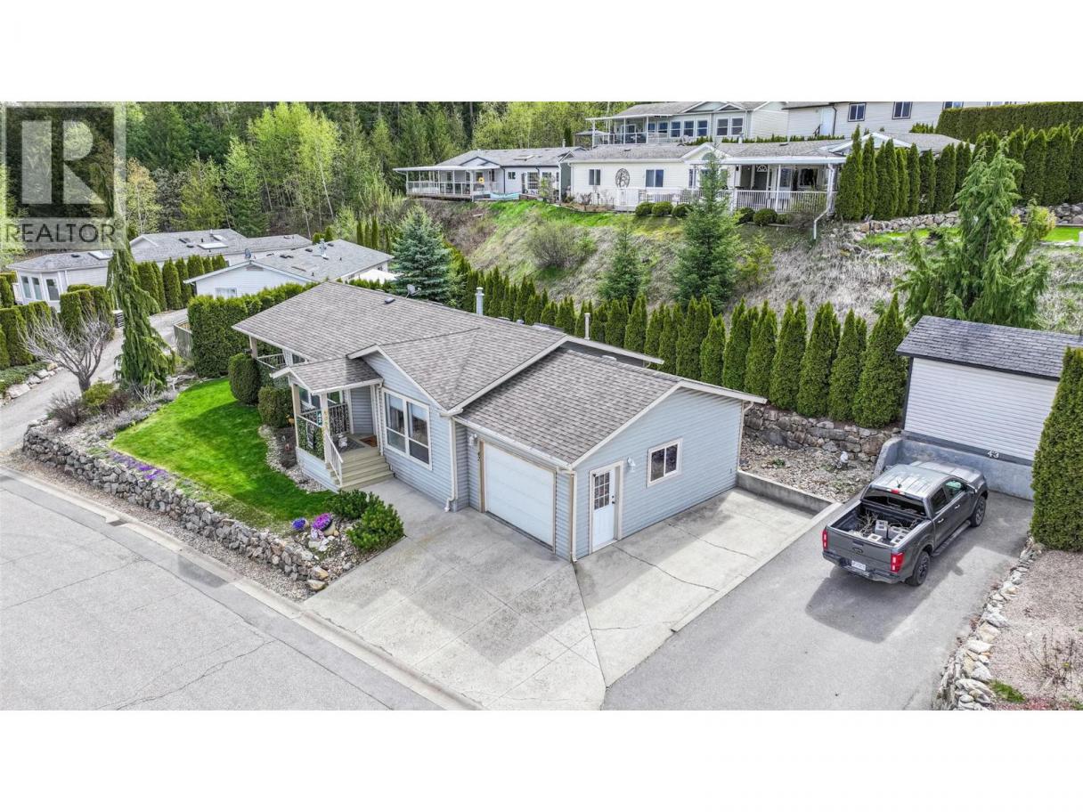 Experience Shuswap living in this beautifully updated 2 bed, 2 bath double-wide modular home, nestled in the peaceful Deer Ridge Estates Mobile Home Park in Sorrento. Located at the end of a quiet cul-de-sac, this home offers beautiful views of Shuswap Lake and the surrounding mountains, just minutes from endless recreational opportunities. Step inside to an inviting living area and a spacious, bright kitchen featuring a fridge, dishwasher, new stove, upgraded lighting, sink, and faucet. The primary suite includes an ensuite, while the second bedroom is thoughtfully positioned at the opposite end for added privacy. Both bedrooms offer built-in storage organizers, noise-reduction window inserts, and scenic views. Both bathrooms have been tastefully updated with modern toilets, sinks, skylights, and laminate flooring. Enjoy year-round comfort with a new furnace and air conditioning system. Outdoor living is a highlight with a covered deck, perfect for dining and relaxing while overlooking a manicured yard with an English garden, vibrant flowers, and a fragrant lilac tree that blooms beautifully in spring and summer. A garden shed and space in the back of the house for a raised garden bed add to the appeal. The attached garage accommodates one vehicle plus storage, with additional parking beside the home and visitor parking on the cul-de-sac. Deer Ridge Estates is a welcoming 55+ community where pets are allowed (dogs up to 10 kg). Contact today to book your showing! (id:6769)