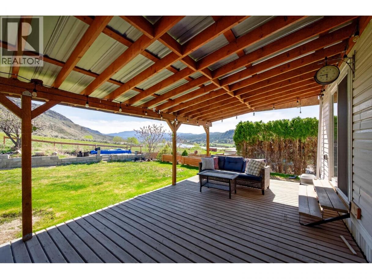 Fully Renovated | View Home | Countryview Estates Turnkey, modern 54’ x 26’ home just 15 minutes east of Kamloops with unobstructed river & mountain views. Bright, open-concept layout with skylights and oversized windows—clean, updated, and move-in ready. 3 bedrooms | 2 bathrooms. Spacious primary with walk-in closet, jetted tub, and direct access to the backyard. Major upgrades already done: roof & HWT (2021), flooring (2022 + recent), granite counters (2022), full kitchen appliance package (2023), water softener (2023), new front windows & patio door (2024), blinds (2024), central A/C (2025). Updated walk-in glass shower, modern fixtures, and finished shed with tile flooring. Outdoor living dialed in: large covered deck, underground sprinklers, storage shed, and 2 paved parking stalls. RV storage available (additional cost, subject to availability). Pad fee $523/month includes water, sewer, garbage, and road maintenance. No rentals. Pets allowed with park approval. (id:6769)