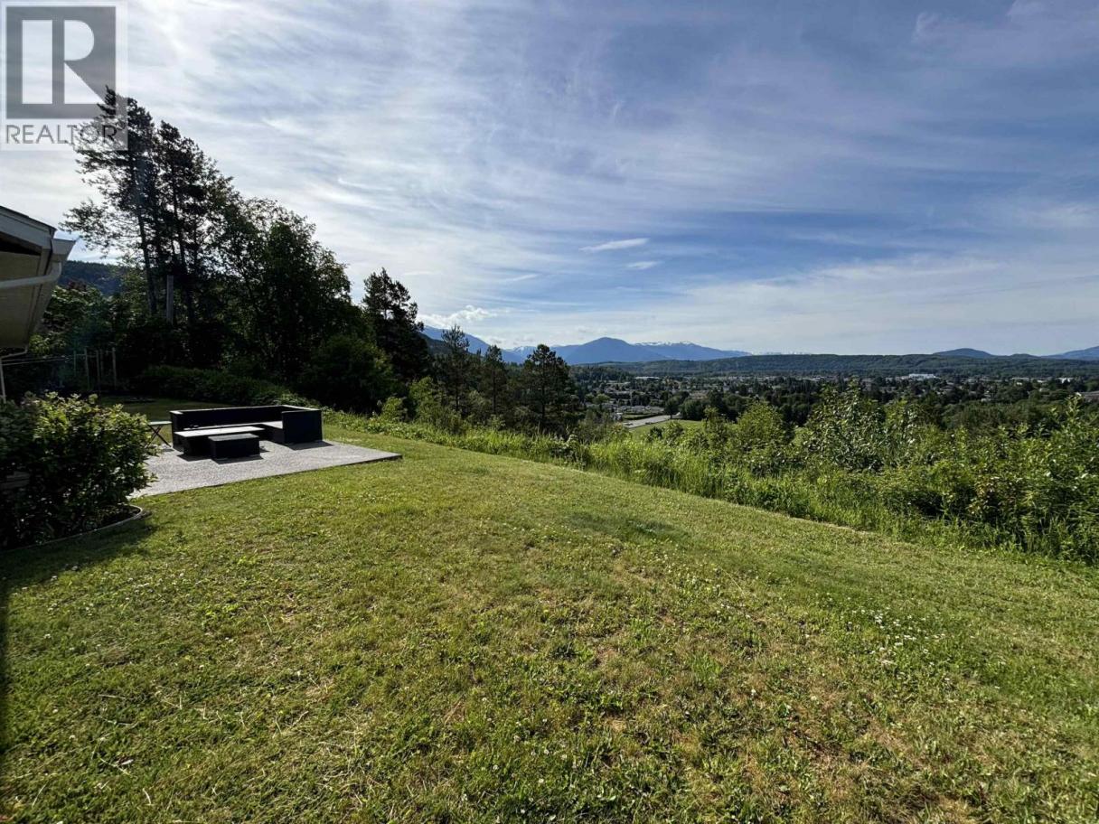 This home is like no other! A spacious, sprawling rancher situation perfectly on one of the very best views in Terrace. An immaculate 3 bedroom, 3 bathroom (plus den) home offering just under 2400 sqft of single floor living space. The breathtaking open concept living space makes way to floor to ceiling windows allowing for the most amazing space. With so many thoughtful high end features; stunning built-ins, wood doors & trim, heated floors and more, the house is sure to impress. The primary bedroom not only has a wonderful walk in closet and a next to perfect ensuite, it boasts panoramic views beyond the private covered deck and hot tub. The yard is peaceful and private with plenty of extra room to take advantage of all that it has to offer. This property is an absolute dream. (id:6769)